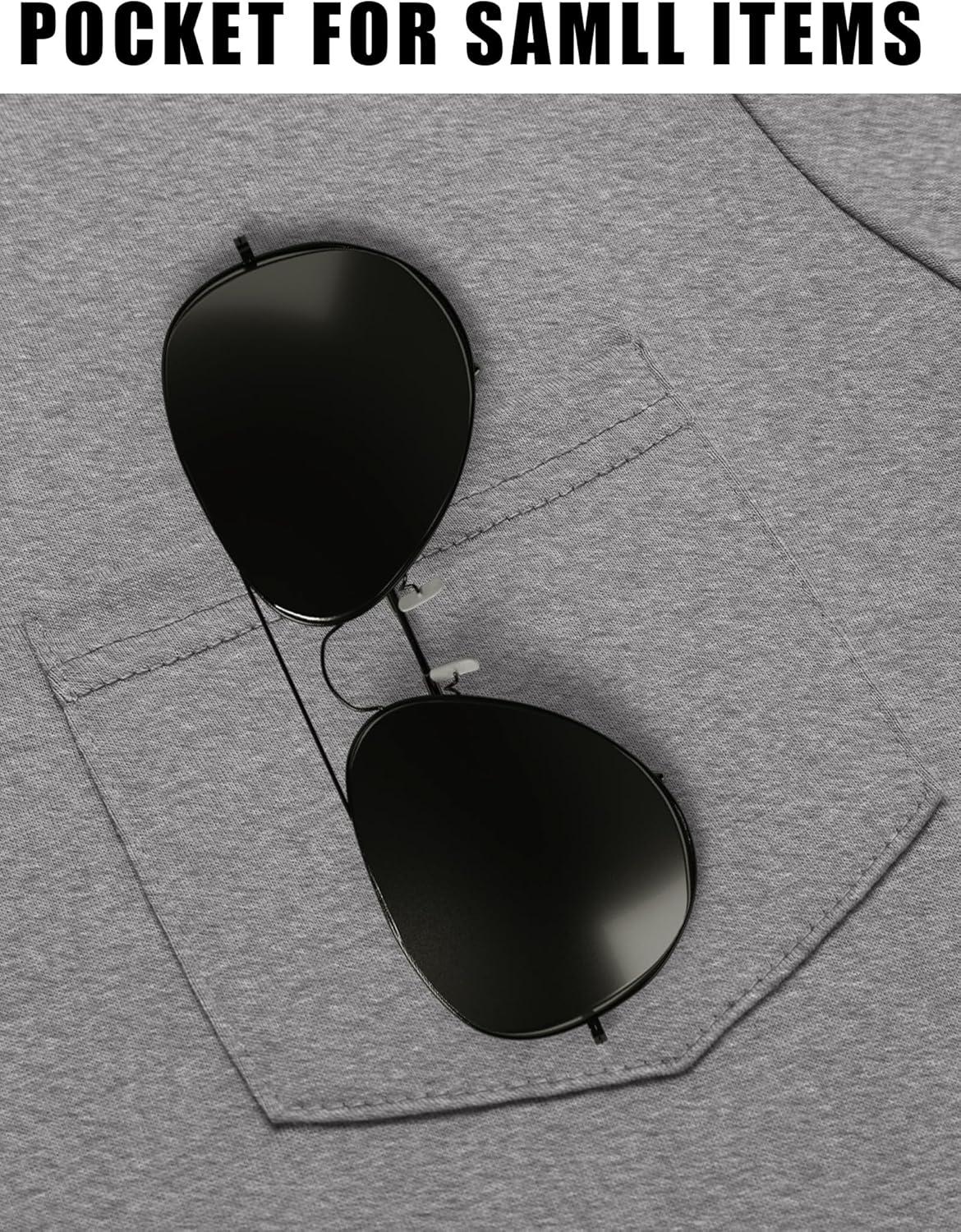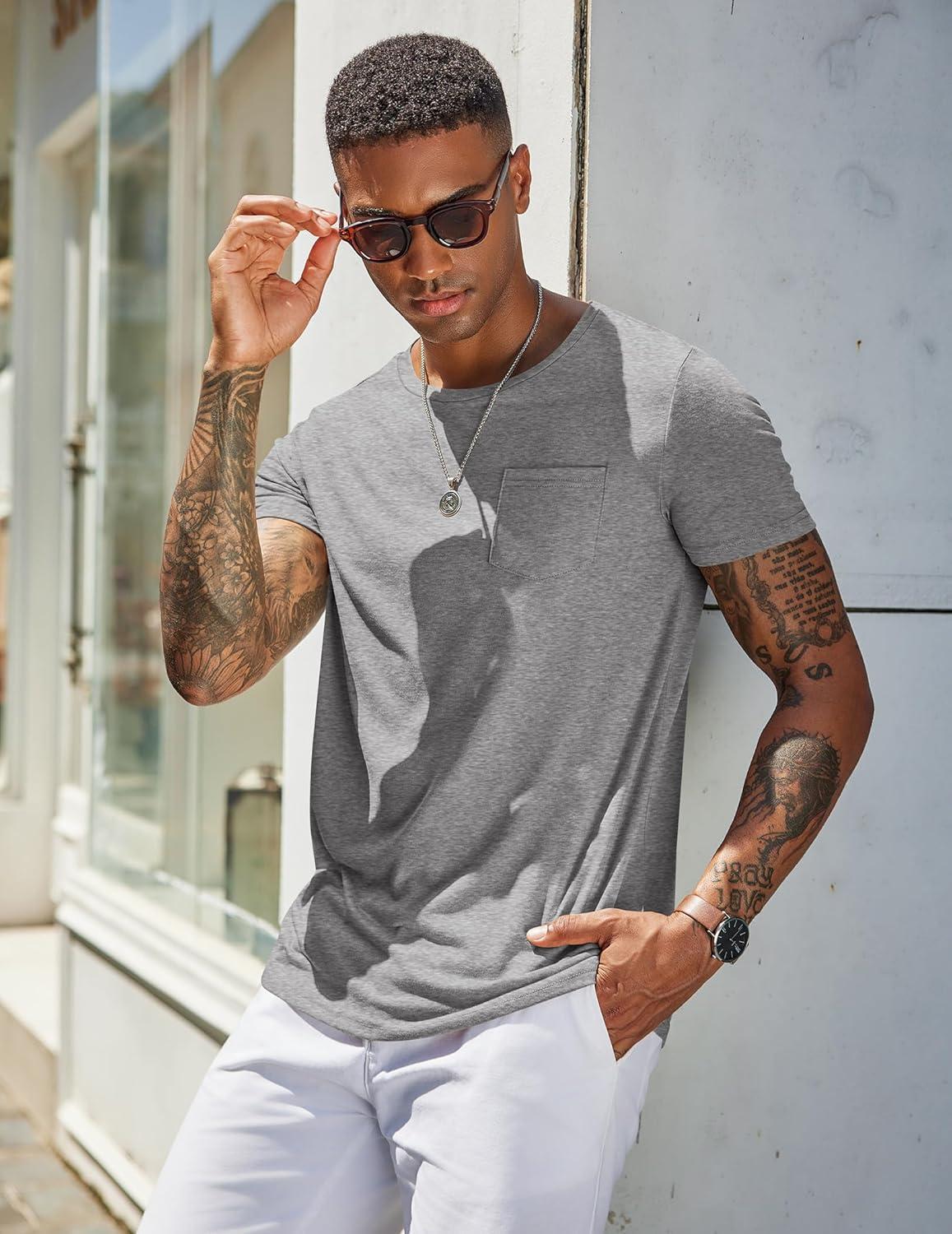 COOFANDY Men’s Cotton Pocket Tee Shirts Soft Crew Neck Stretch T Shirt Plain Casual Short Sleeve Summer Basic Tops(1 Pack- Light Grey)