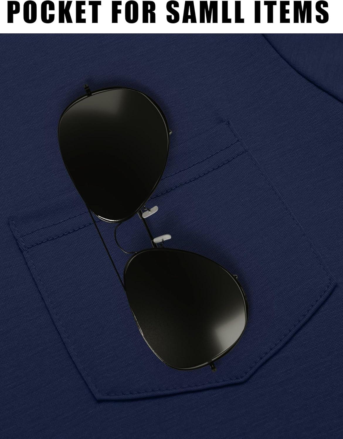 COOFANDY Men’s Cotton Pocket Tee Shirts Soft Crew Neck Stretch T Shirt Plain Casual Short Sleeve Summer Basic Tops(1 Pack- Navy Blue)