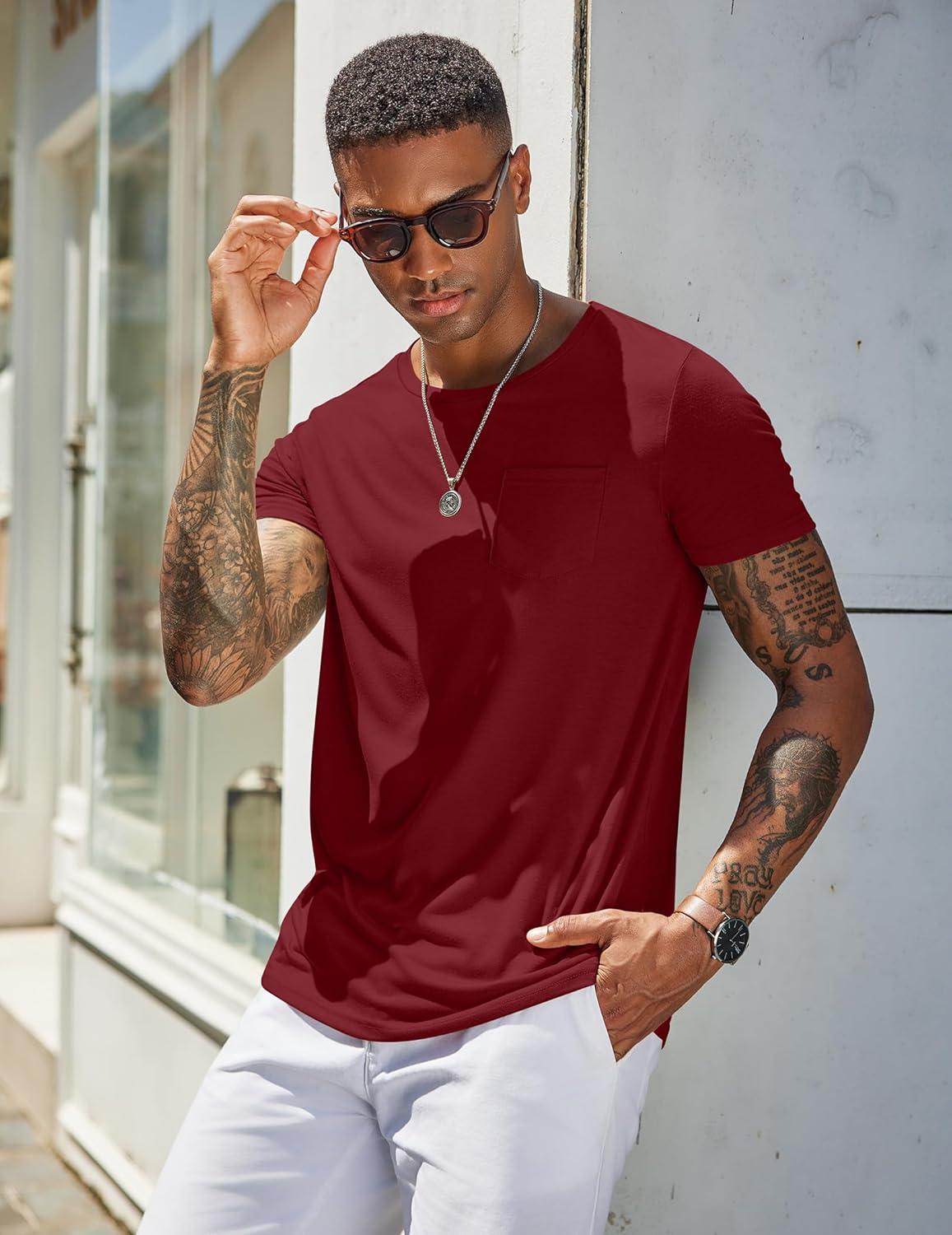 COOFANDY Men’s Cotton Pocket Tee Shirts Soft Crew Neck Stretch T Shirt Plain Casual Short Sleeve Summer Basic Tops(1 Pack- Wine Red)