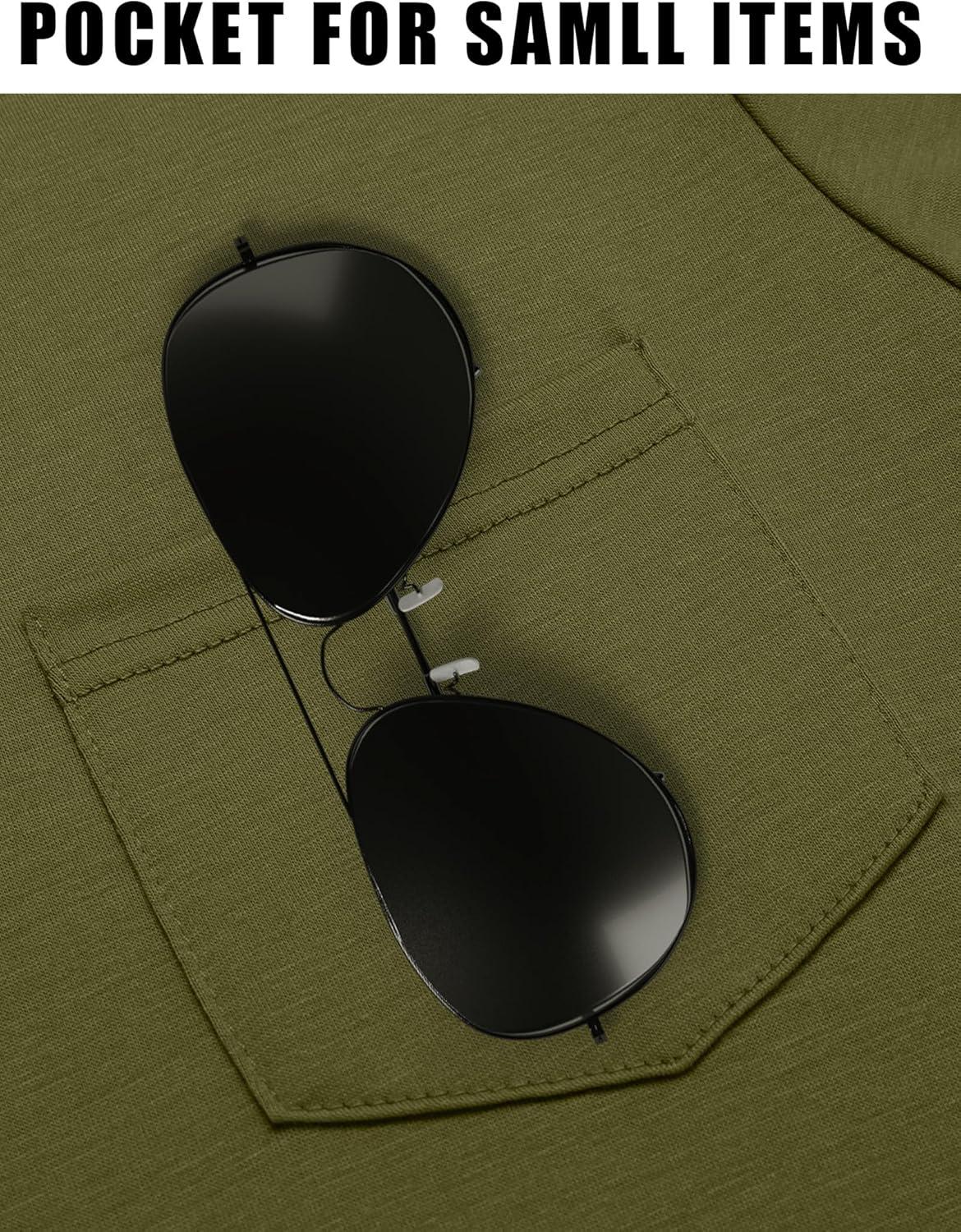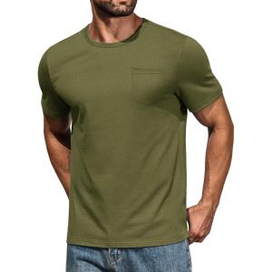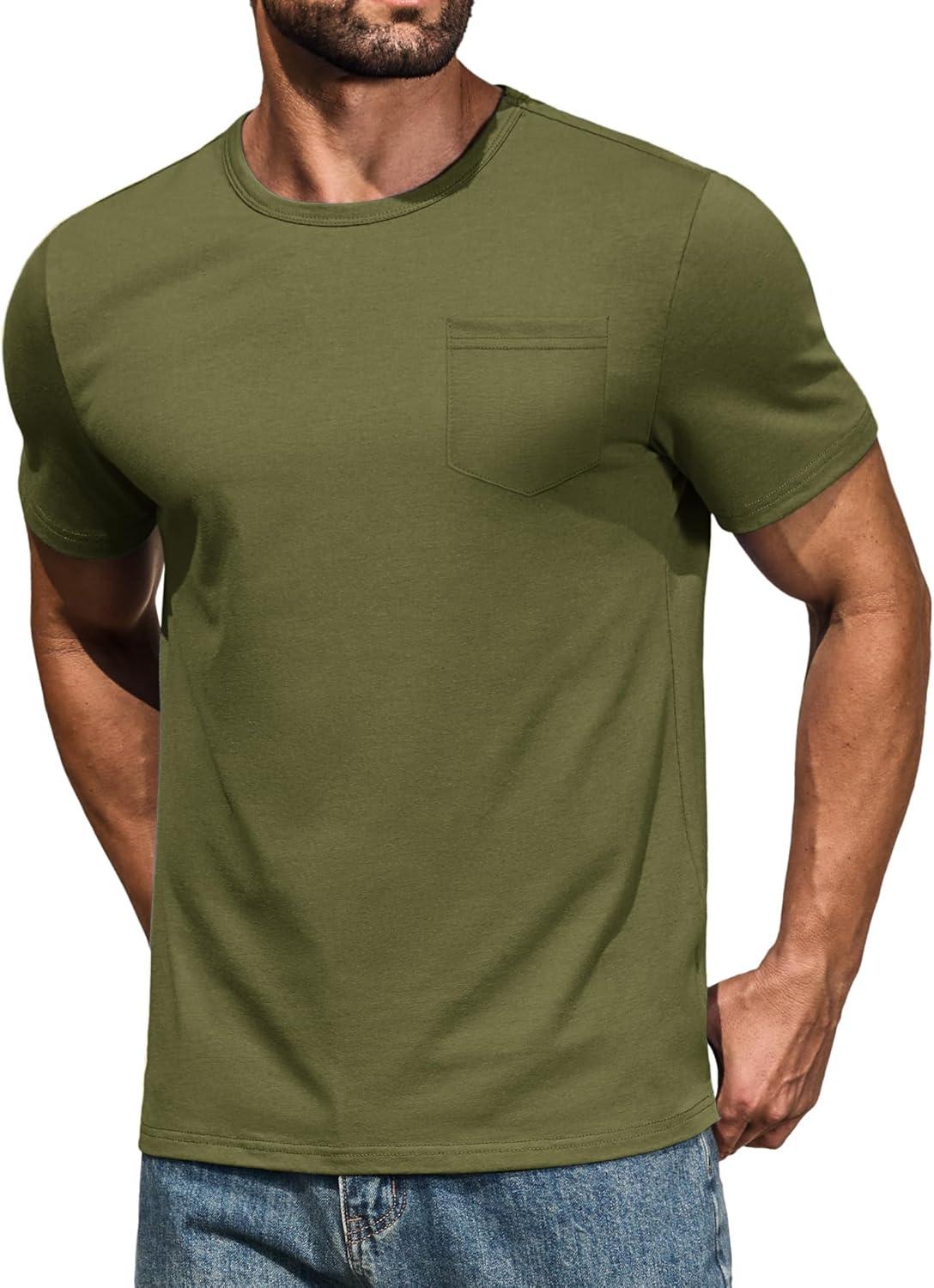COOFANDY Men’s Cotton Pocket Tee Shirts Soft Crew Neck Stretch T Shirt Plain Casual Short Sleeve Summer Basic Tops(1 Pack- Army Green)