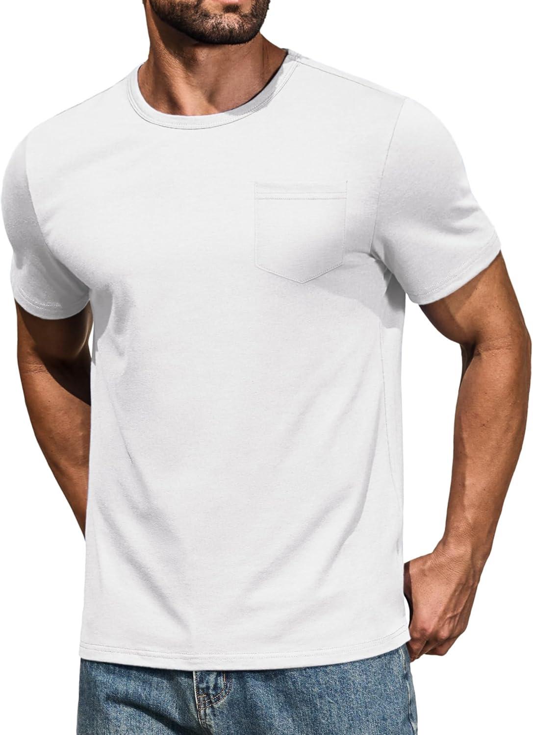 COOFANDY Men’s Cotton Pocket Tee Shirts Soft Crew Neck Stretch T Shirt Plain Casual Short Sleeve Summer Basic Tops(1 Pack- All White)
