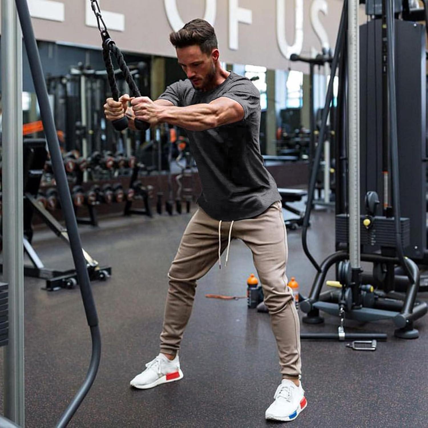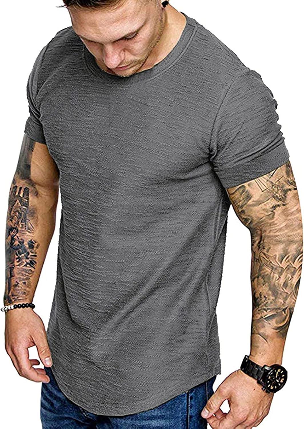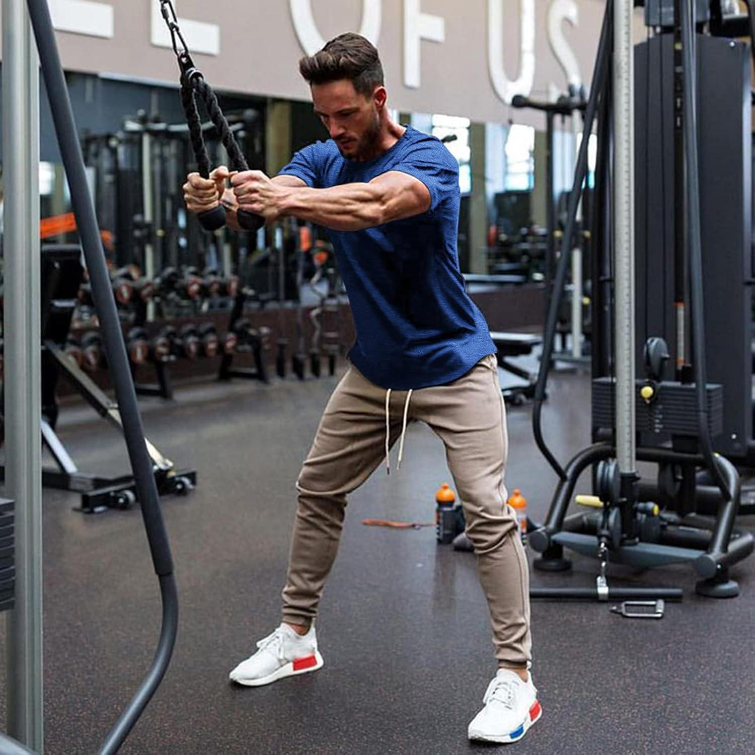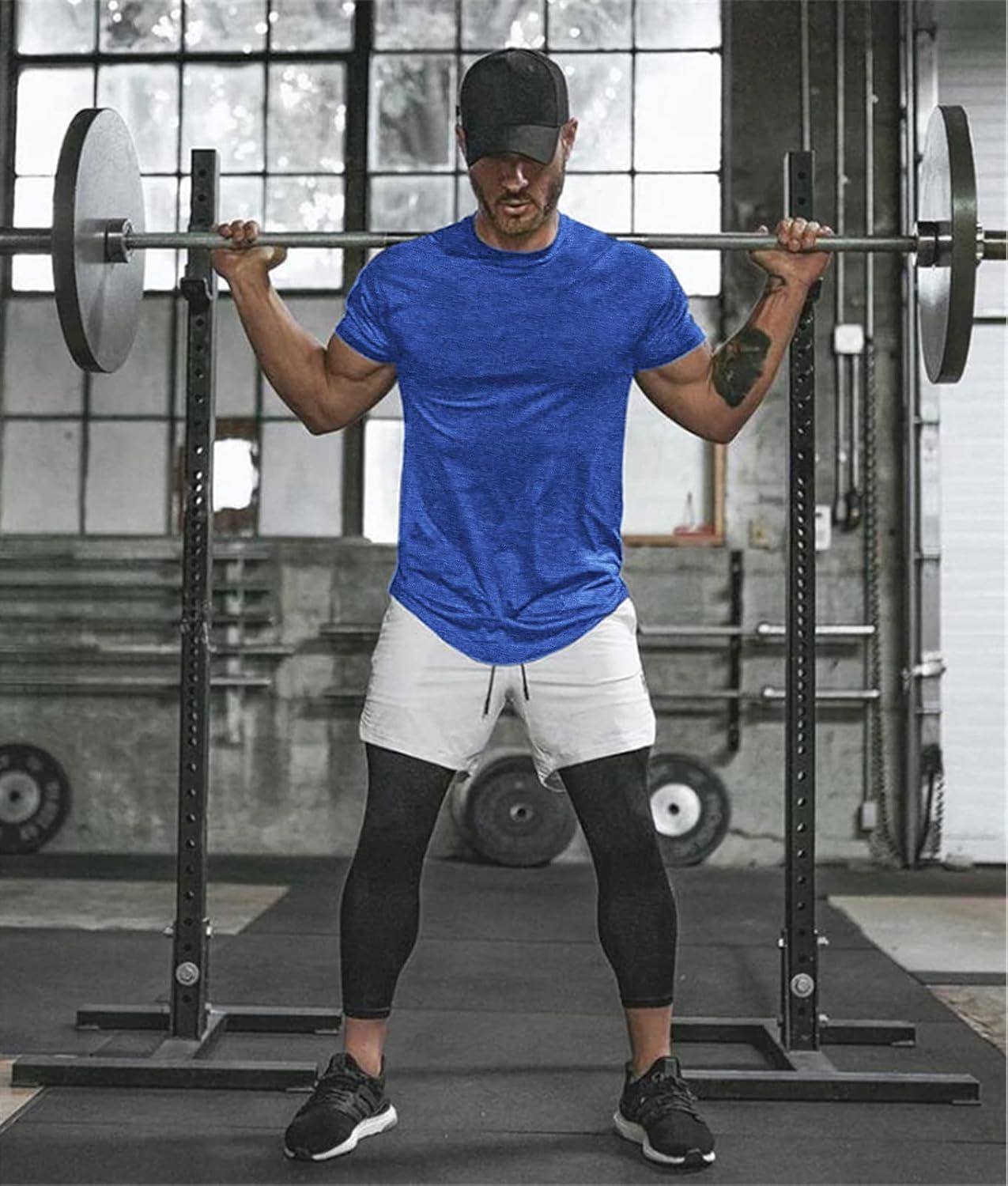 COOFANDY Men Muscle Workout T Shirt Gym Bodybuilding Active Short Sleeve Tee Top Black(Two Pack- Grey/Blue)