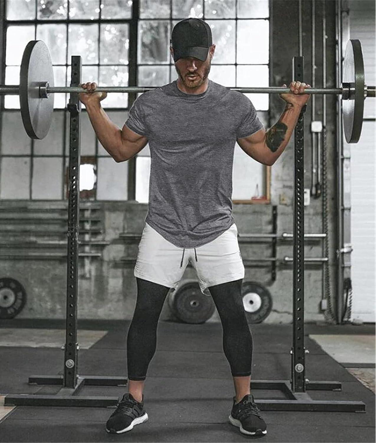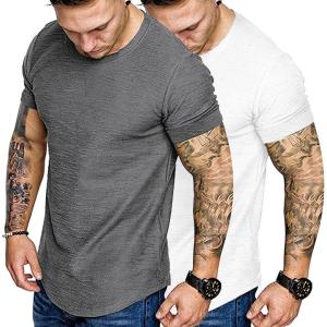 COOFANDY Men Muscle Workout T Shirt Gym Bodybuilding Active Short Sleeve Tee Top Black(Two Pack- White/Grey)
