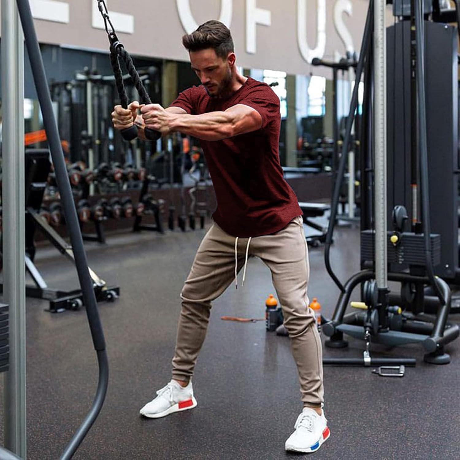 COOFANDY Men Muscle Workout T Shirt Gym Bodybuilding Active Short Sleeve Tee Top Black(Two Pack- Wine Red/Blue)