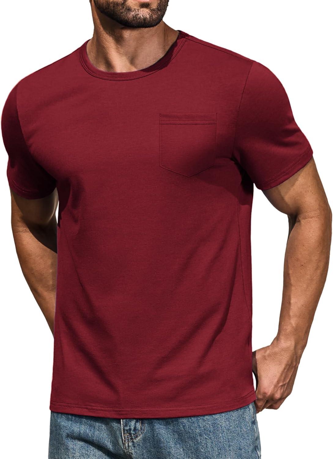 COOFANDY Men’s Cotton Pocket Tee Shirts Soft Crew Neck Stretch T Shirt Plain Casual Short Sleeve Summer Basic Tops(2 Pack(wine Red+navy Blue))