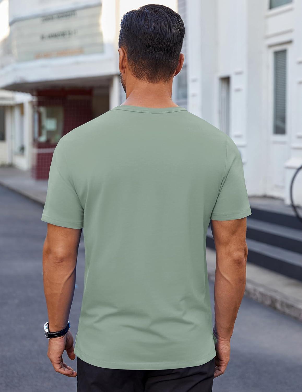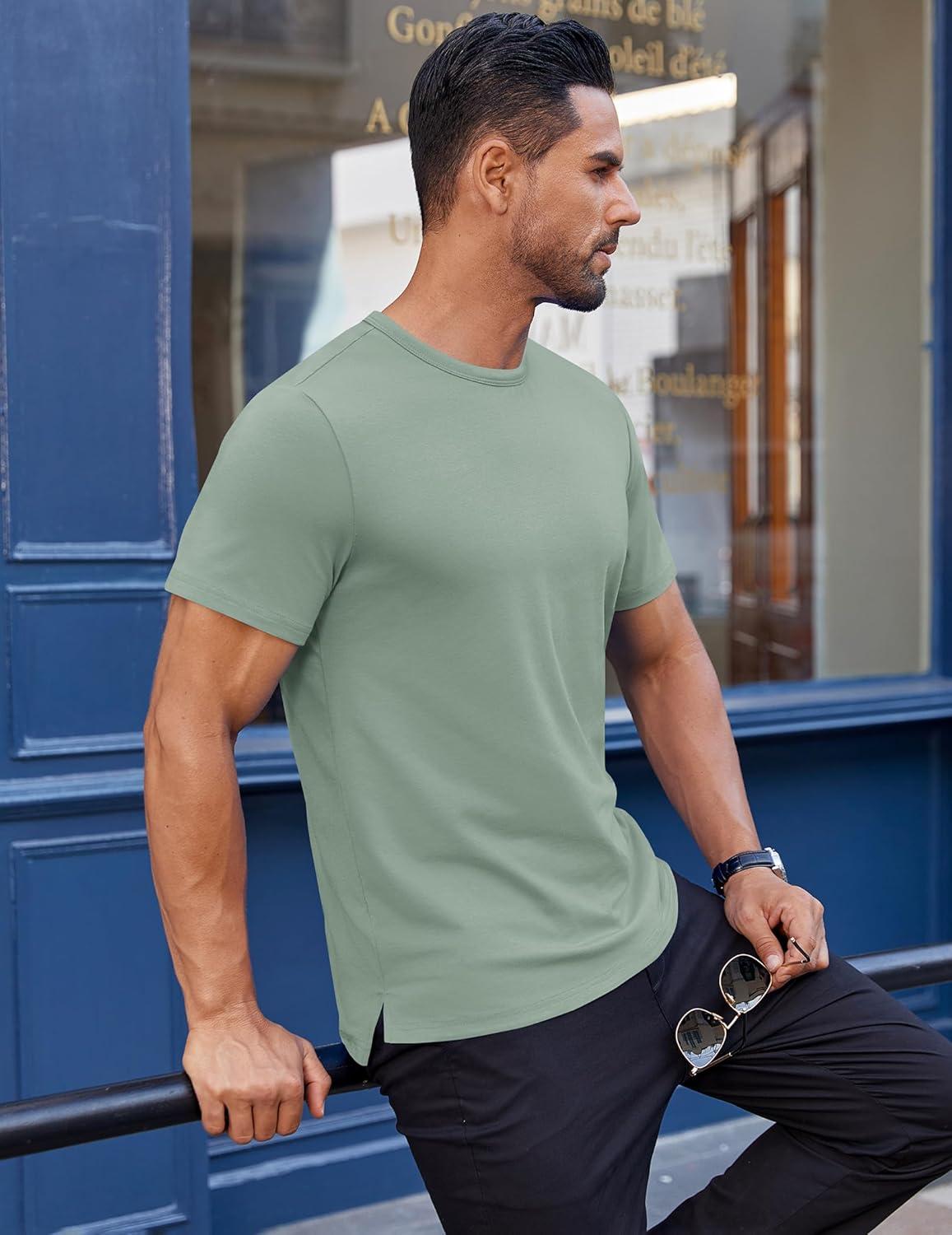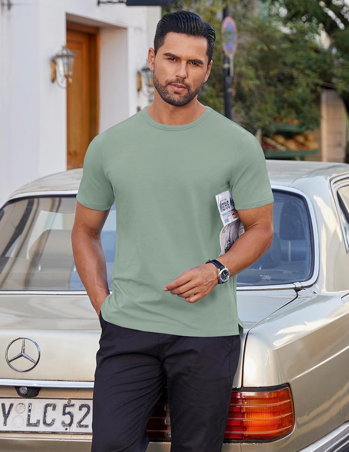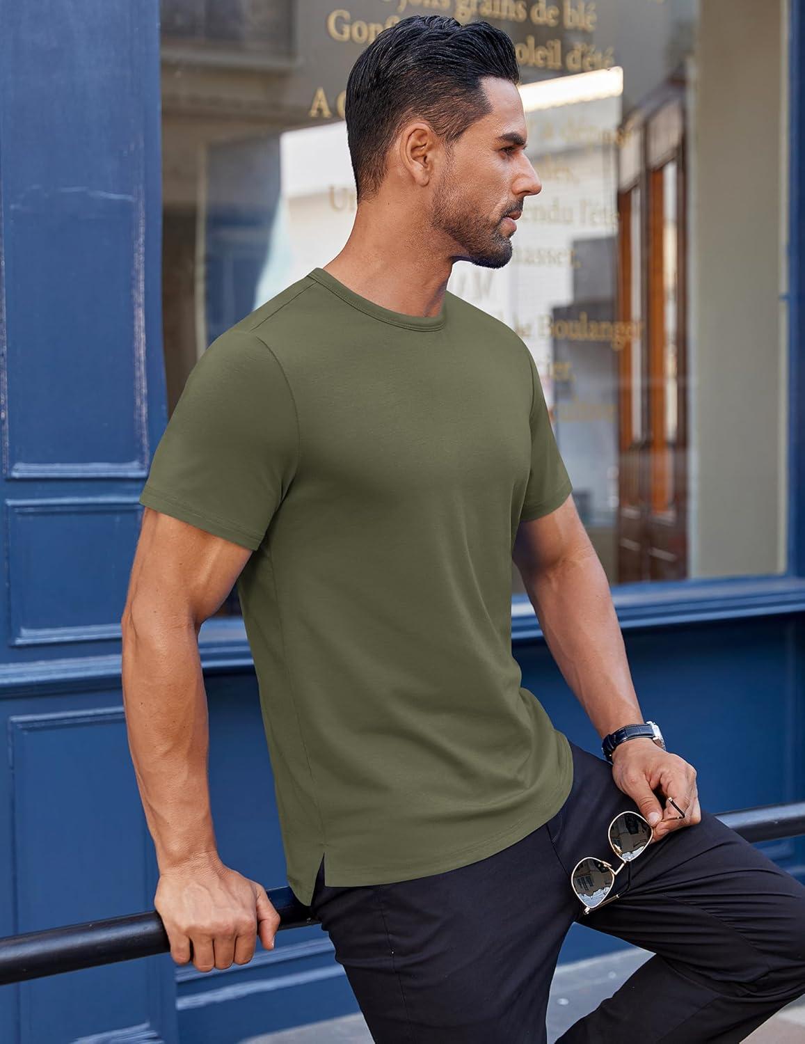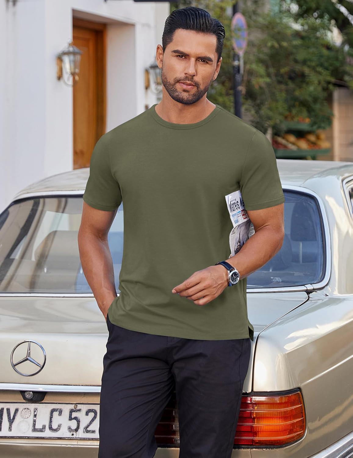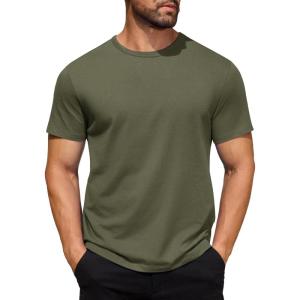 COOFANDY Men’s Cotton T-Shirt Short Sleeve Crew Neck Tee Shirts Casual Solid Basic Tops(Army Green)