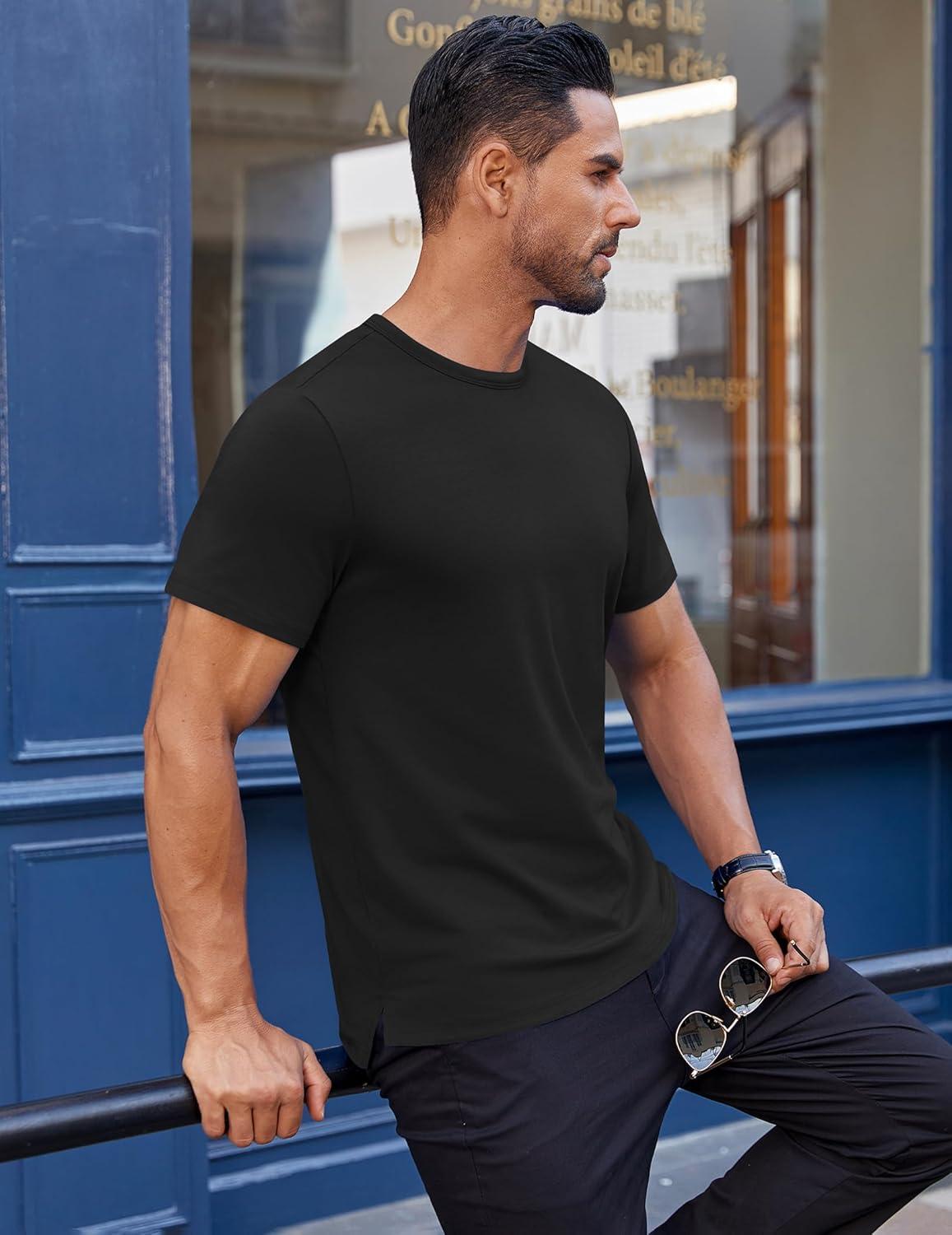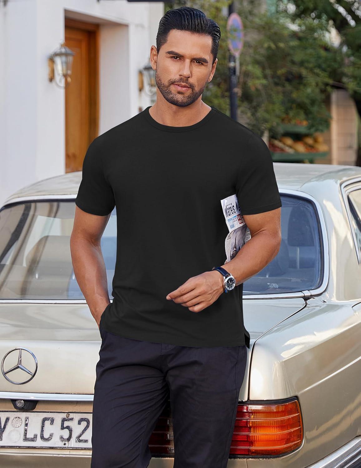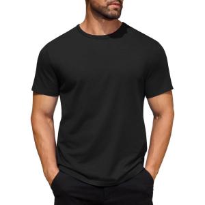 COOFANDY Men’s Cotton T-Shirt Short Sleeve Crew Neck Tee Shirts Casual Solid Basic Tops(Black)