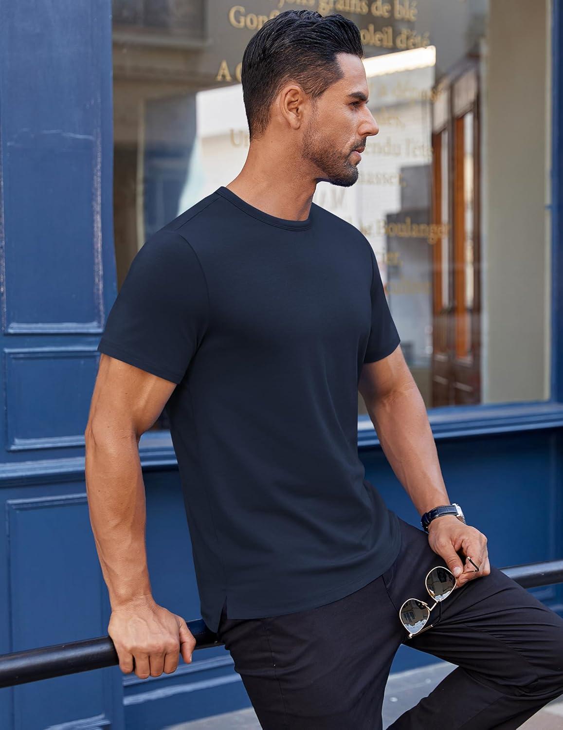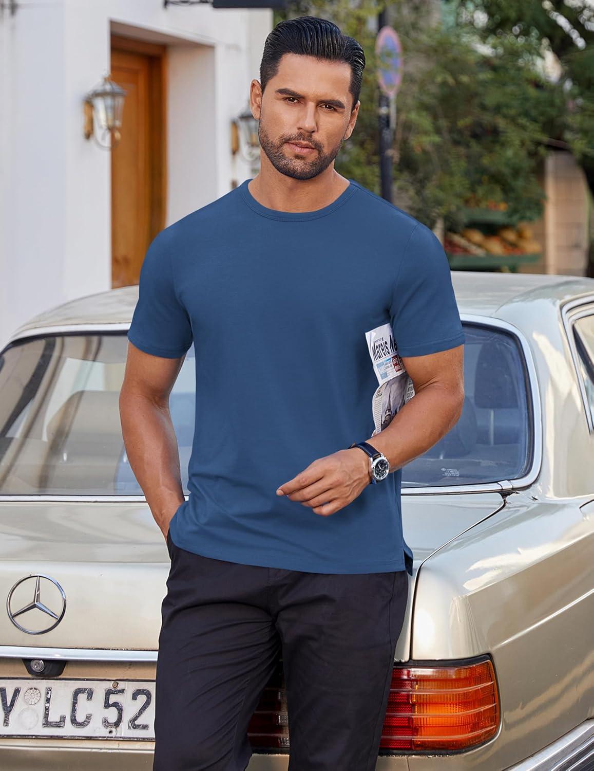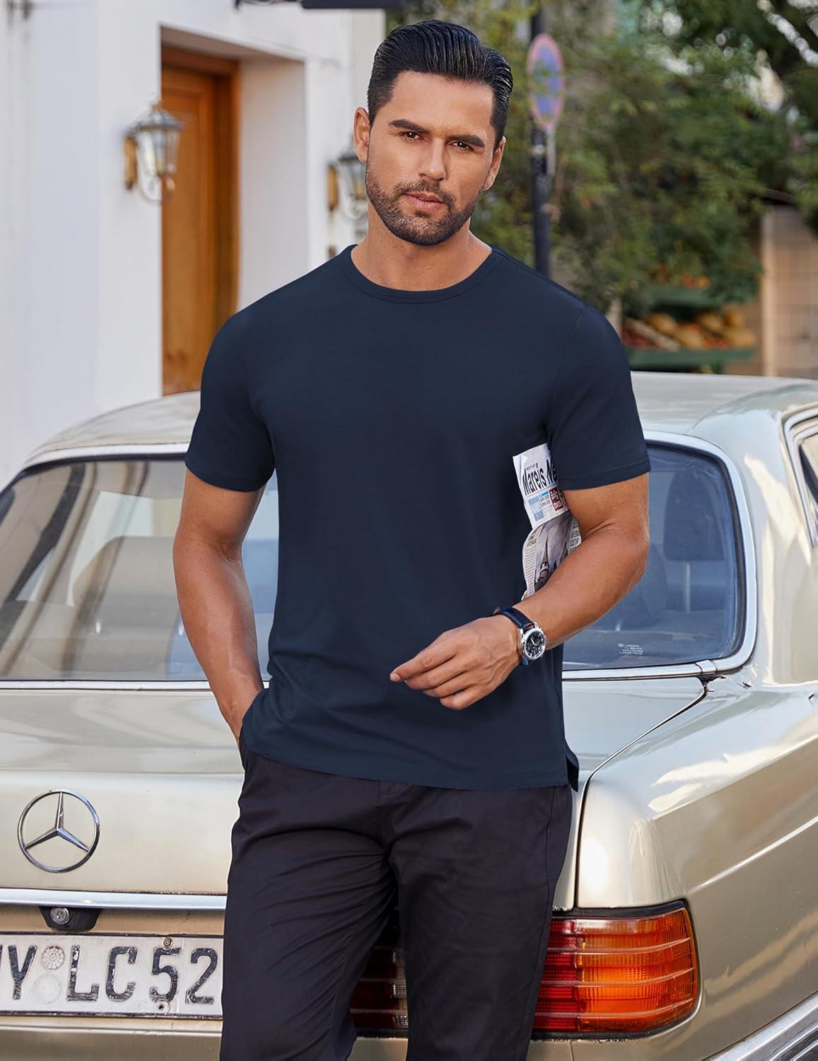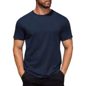 COOFANDY Men’s Cotton T-Shirt Short Sleeve Crew Neck Tee Shirts Casual Solid Basic Tops(Dark Blue)