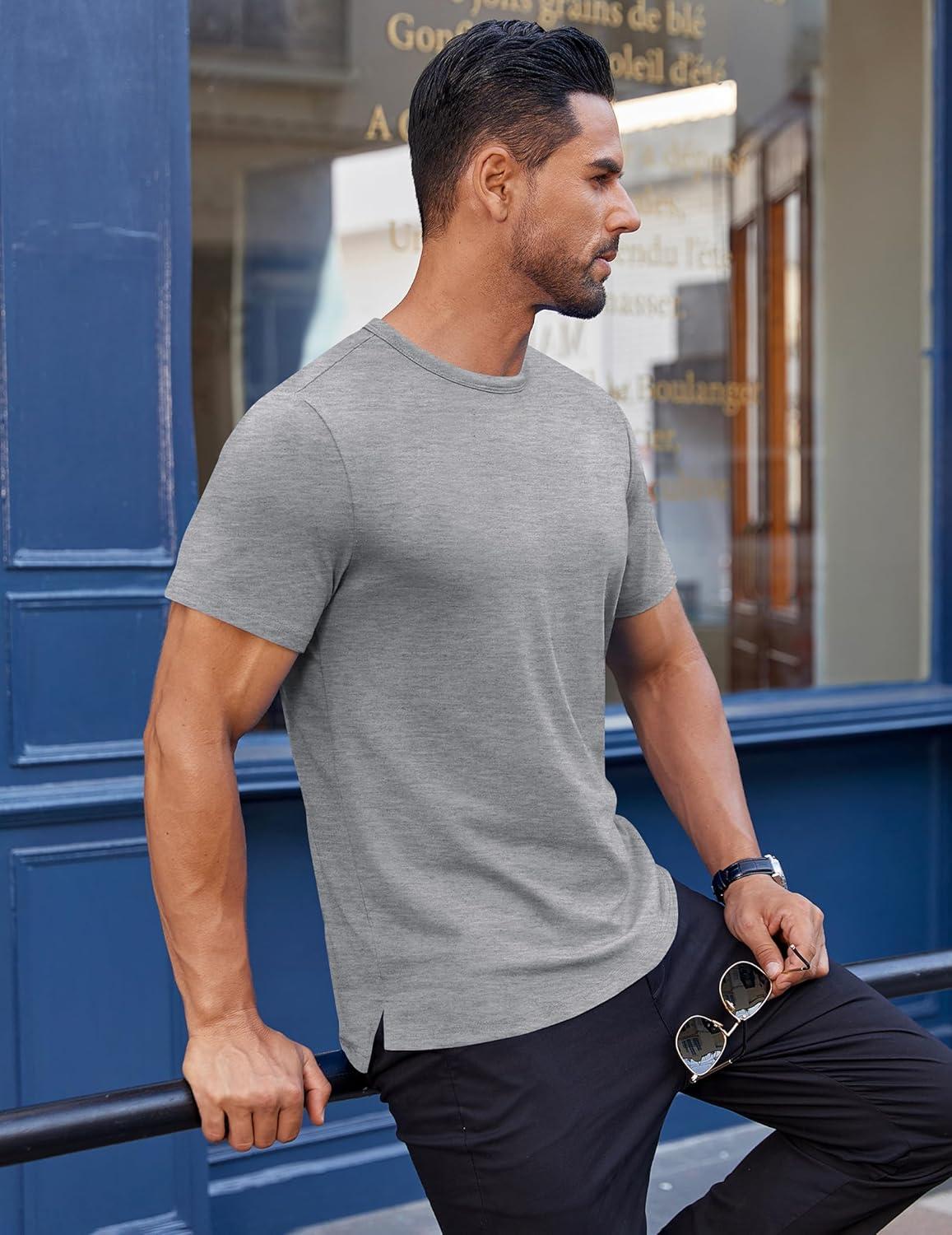 COOFANDY Men’s Cotton T-Shirt Short Sleeve Crew Neck Tee Shirts Casual Solid Basic Tops(Light Grey)