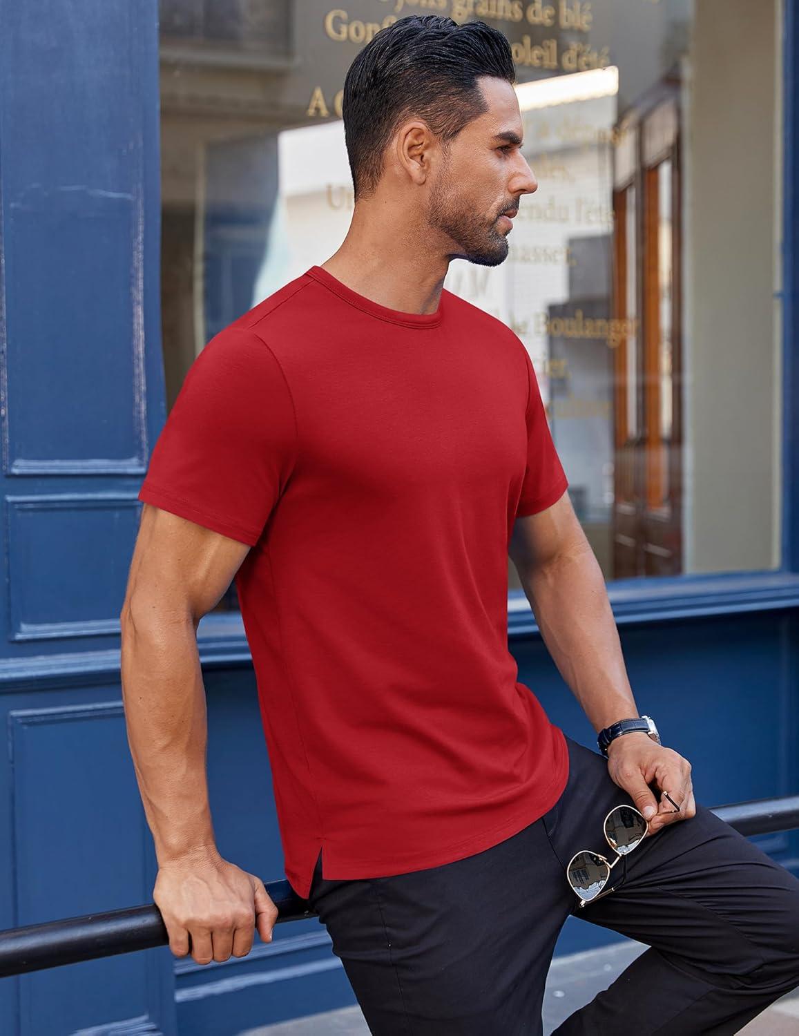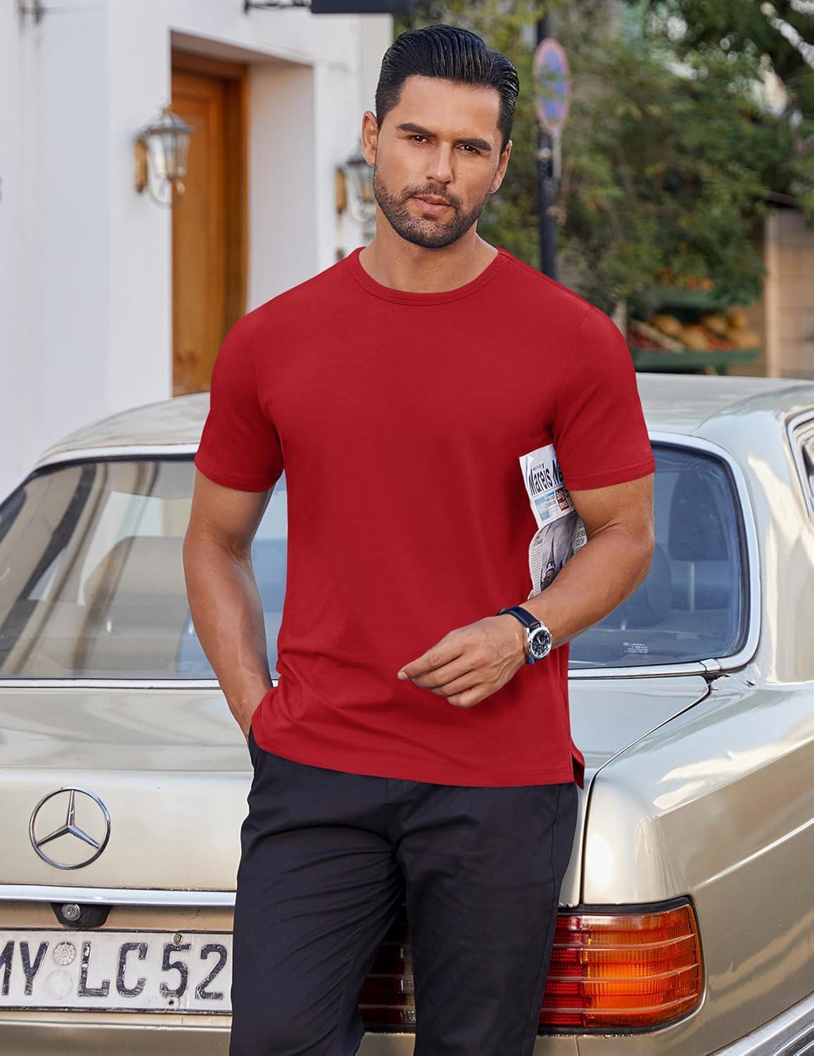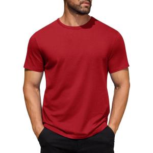 COOFANDY Men’s Cotton T-Shirt Short Sleeve Crew Neck Tee Shirts Casual Solid Basic Tops(Red)