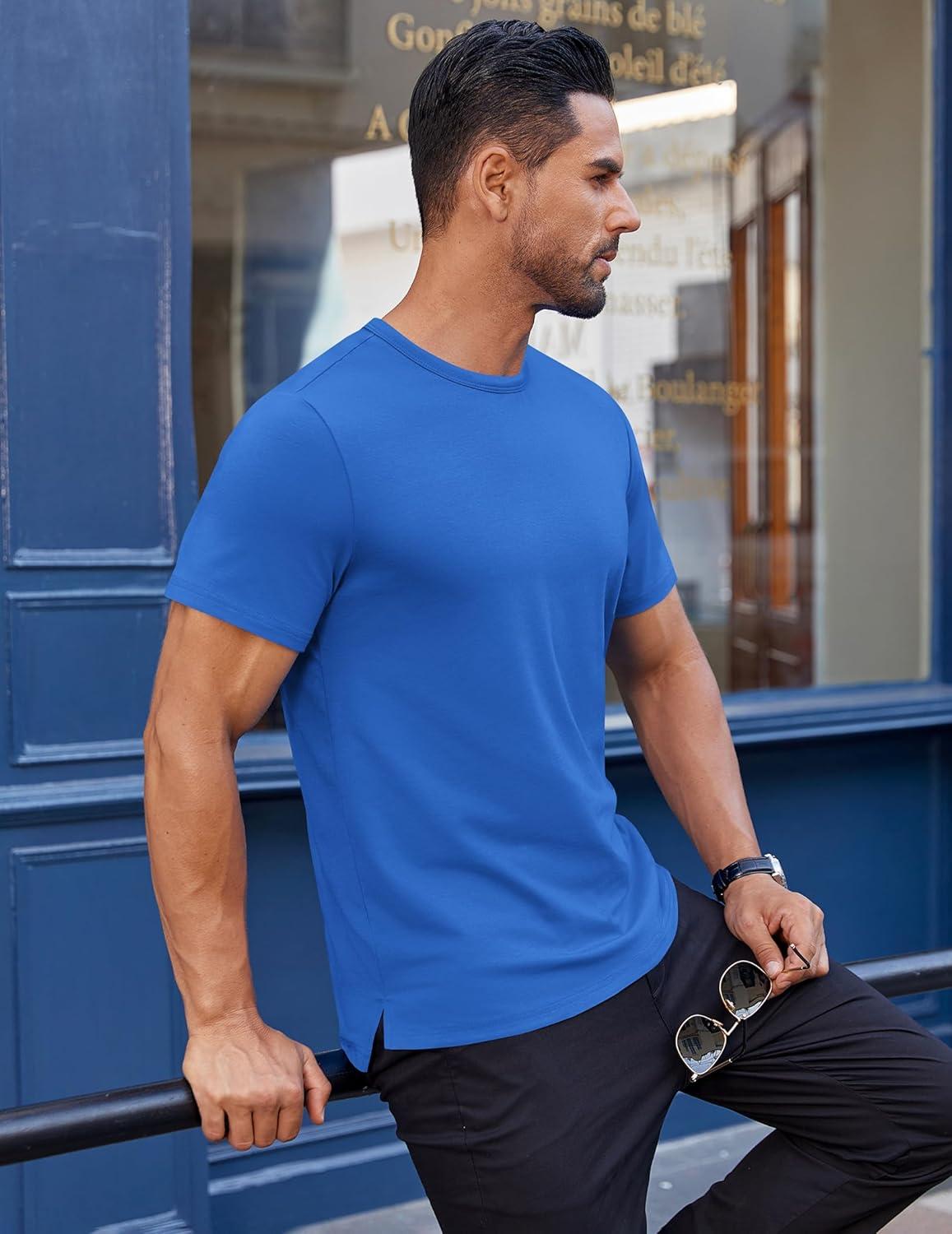 COOFANDY Men’s Crew Neck T-Shirt Casual Muscle Tee Slim Fit Bodybuilding Athletic Casual T Shirt Blue