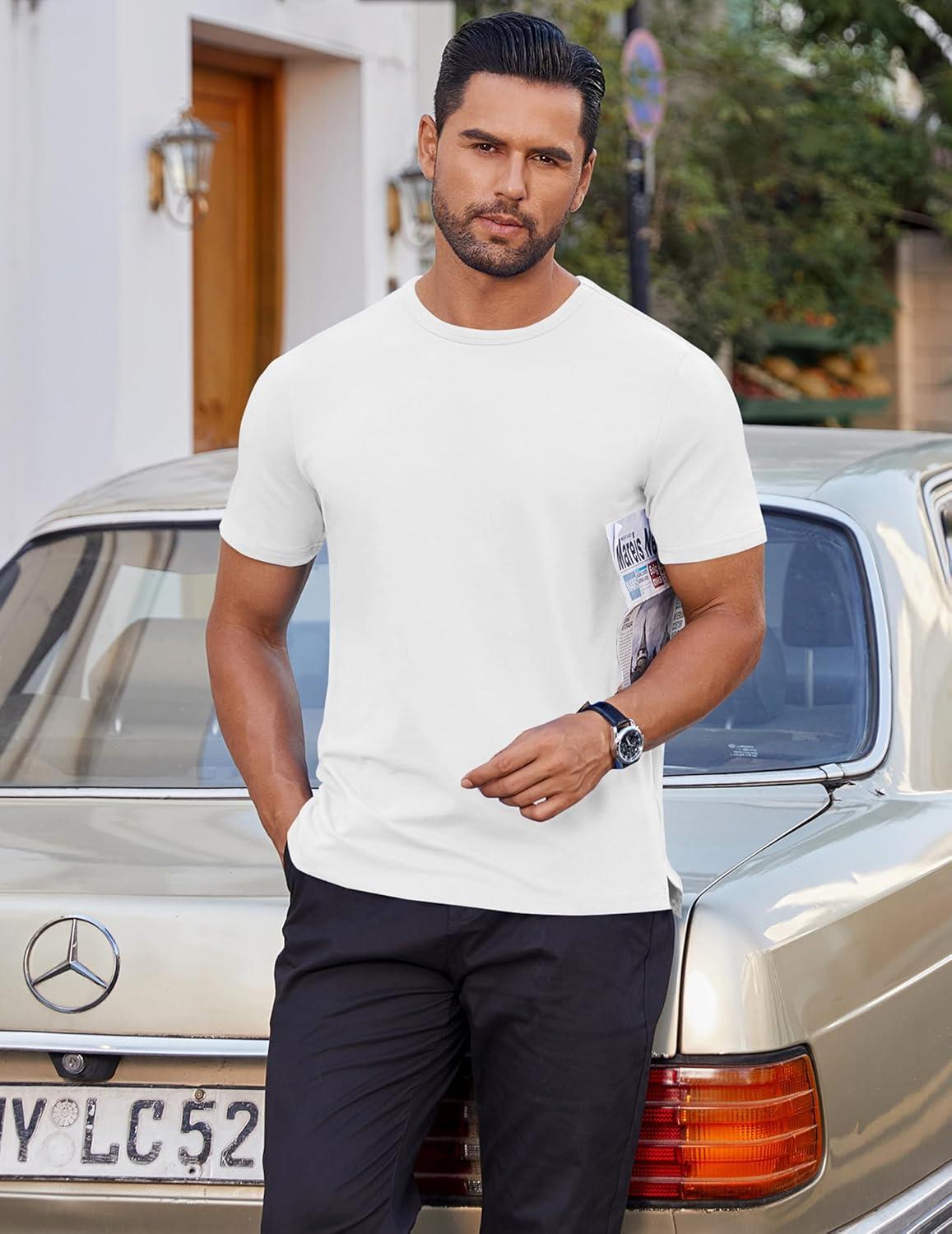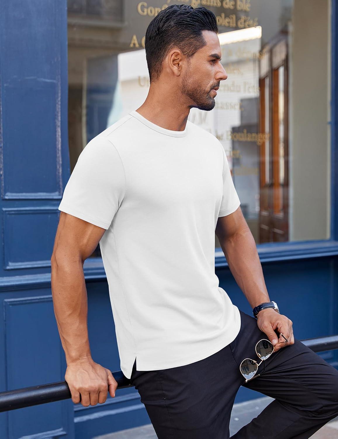 COOFANDY Men’s Cotton T-Shirt Short Sleeve Crew Neck Tee Shirts Casual Solid Basic Tops(White)