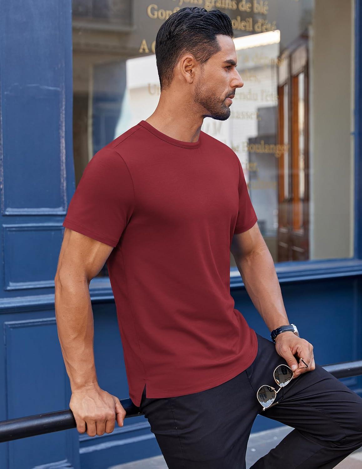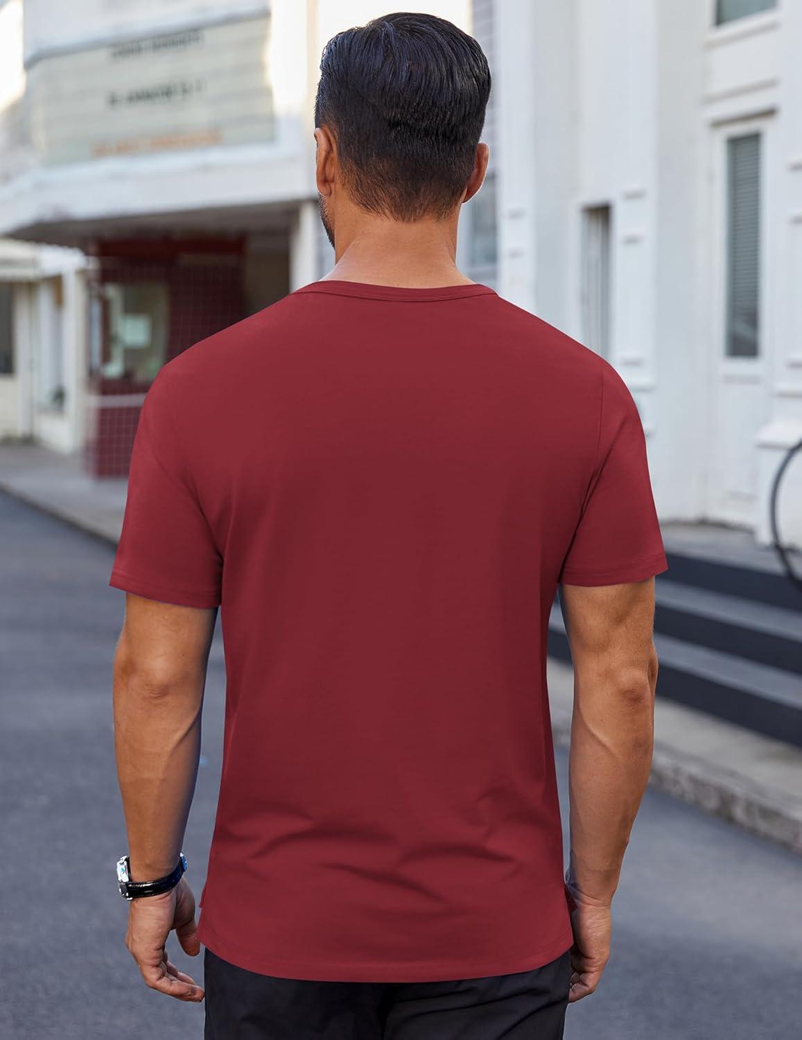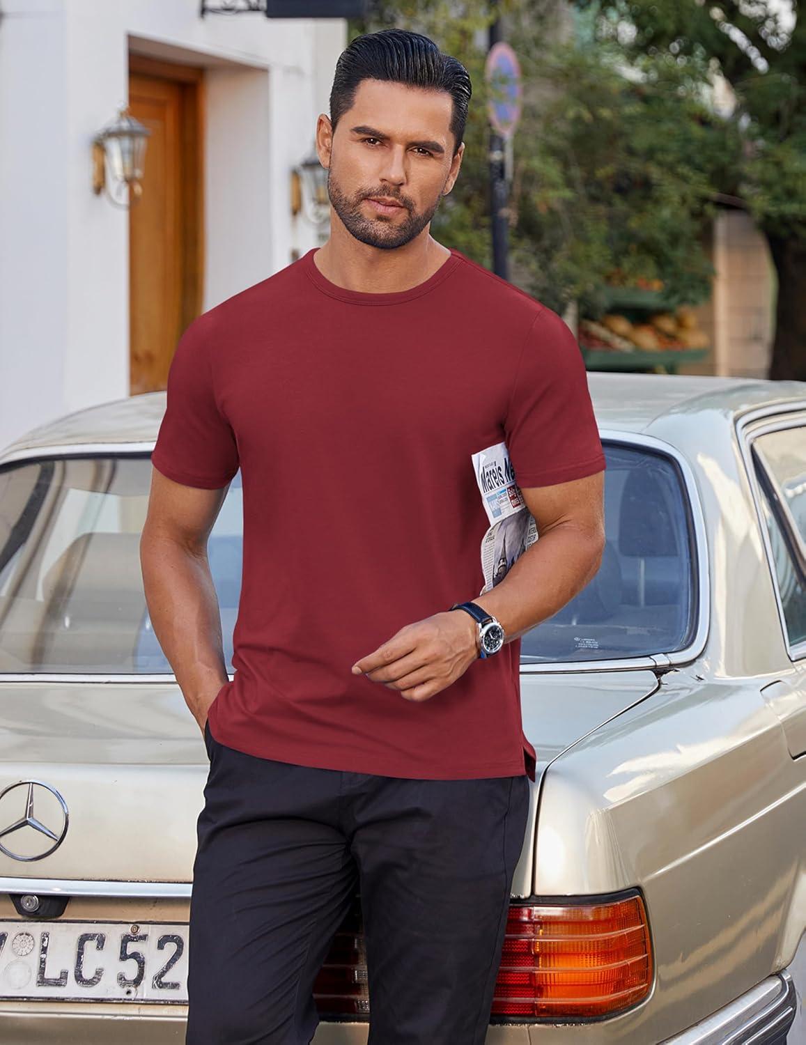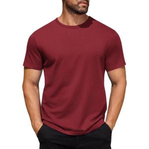 COOFANDY Men’s Cotton T-Shirt Short Sleeve Crew Neck Tee Shirts Casual Solid Basic Tops(Wine Red)