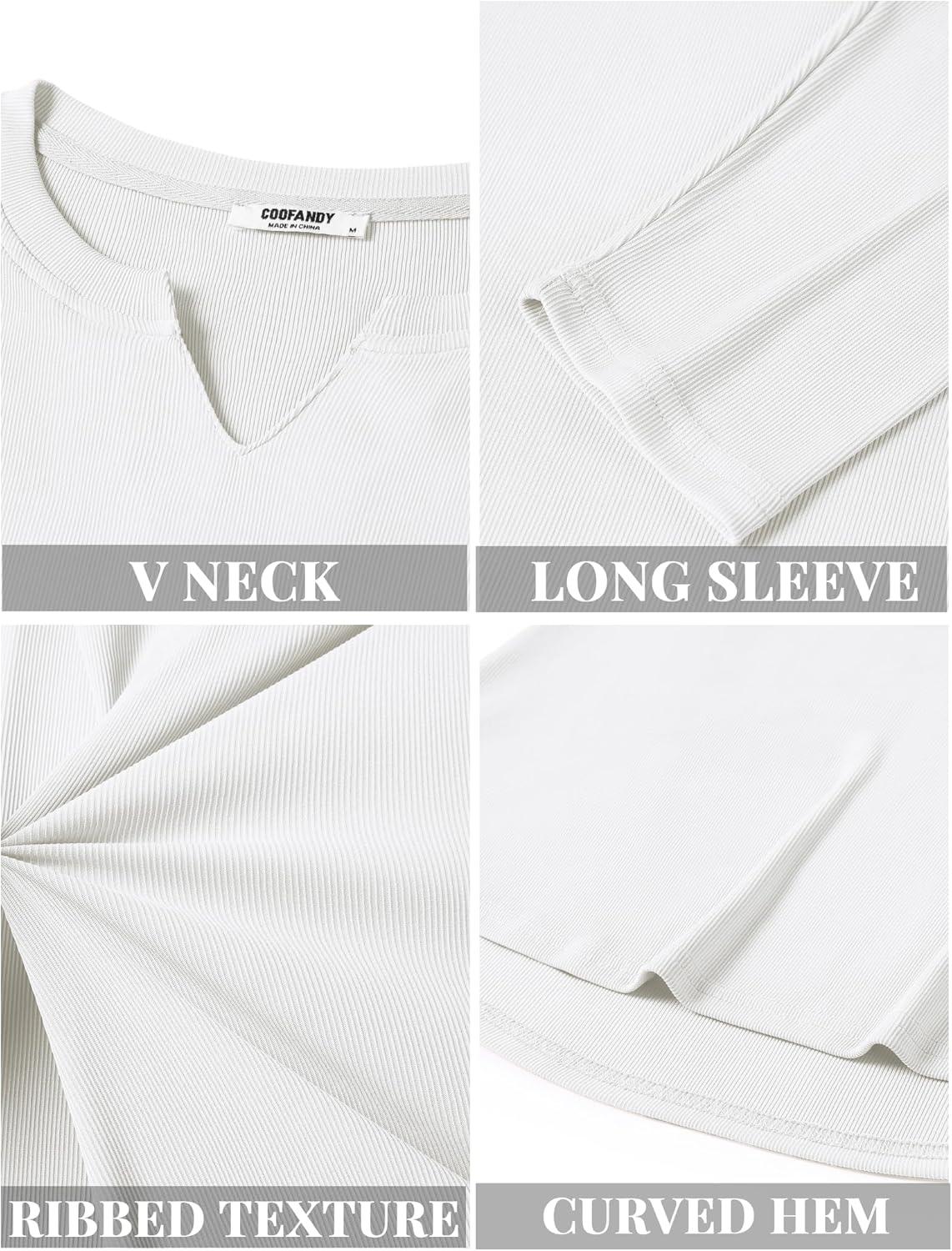 COOFANDY Men’s Long Sleeve Muscle T Shirts Casual V-Neck Slim Fit Longline Ribbed Shirts Stretch Tee Shirts(All White)