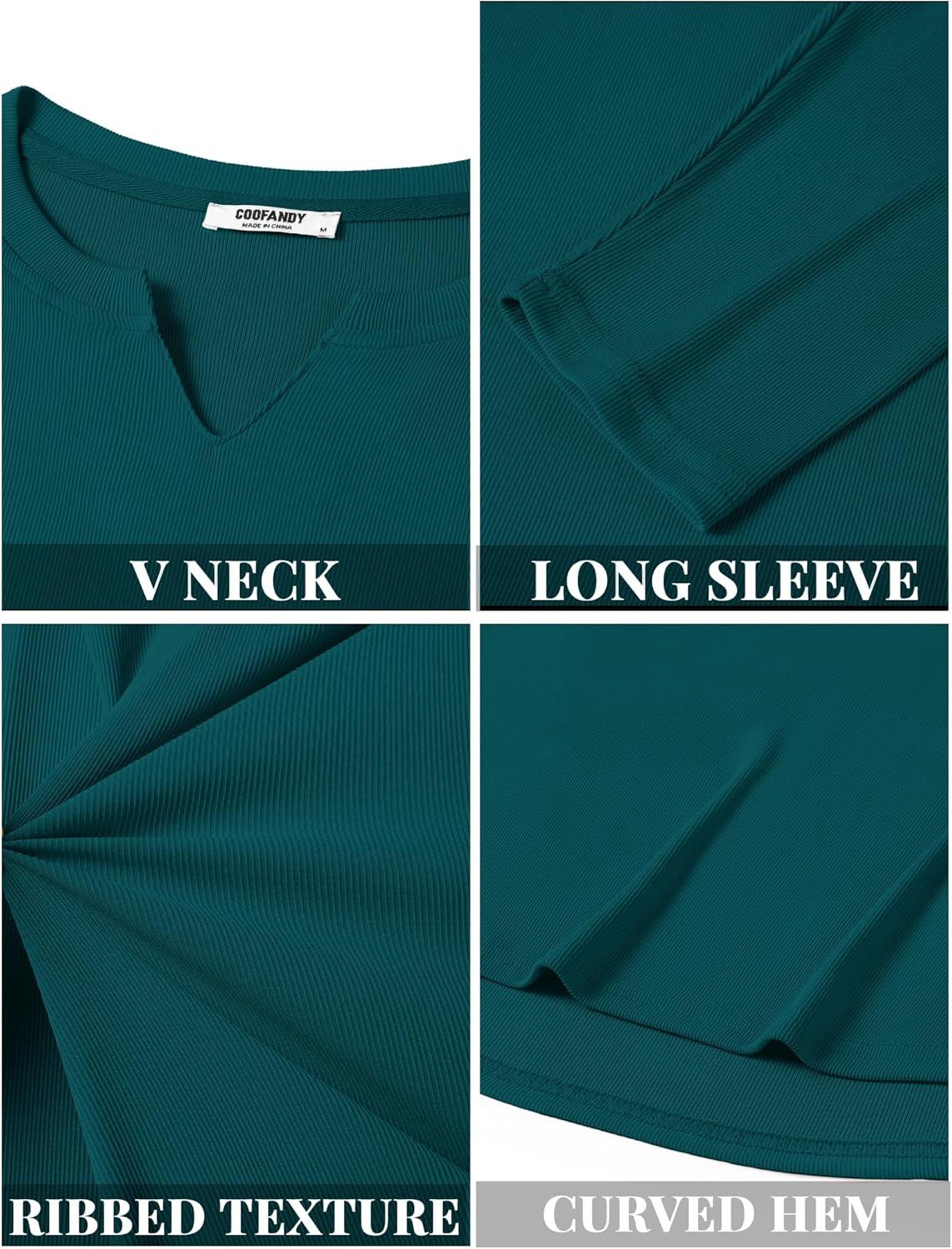 COOFANDY Men’s Long Sleeve Muscle T Shirts Casual V-Neck Slim Fit Longline Ribbed Shirts Stretch Tee Shirts(Green)