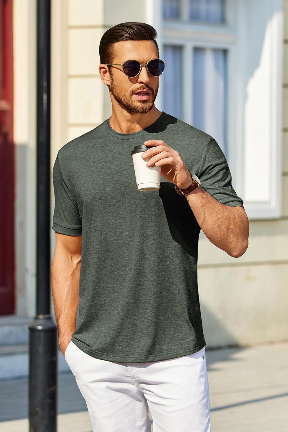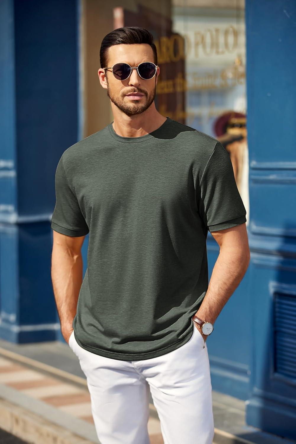 COOFANDY Men’s T Shirt Short Sleeve Crew Neck T-Shirt Casual Summer Tshirt Classic Basic Tee Shirt(Army Green)