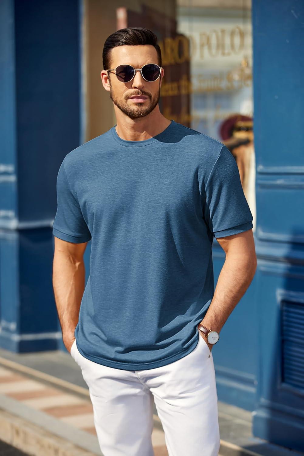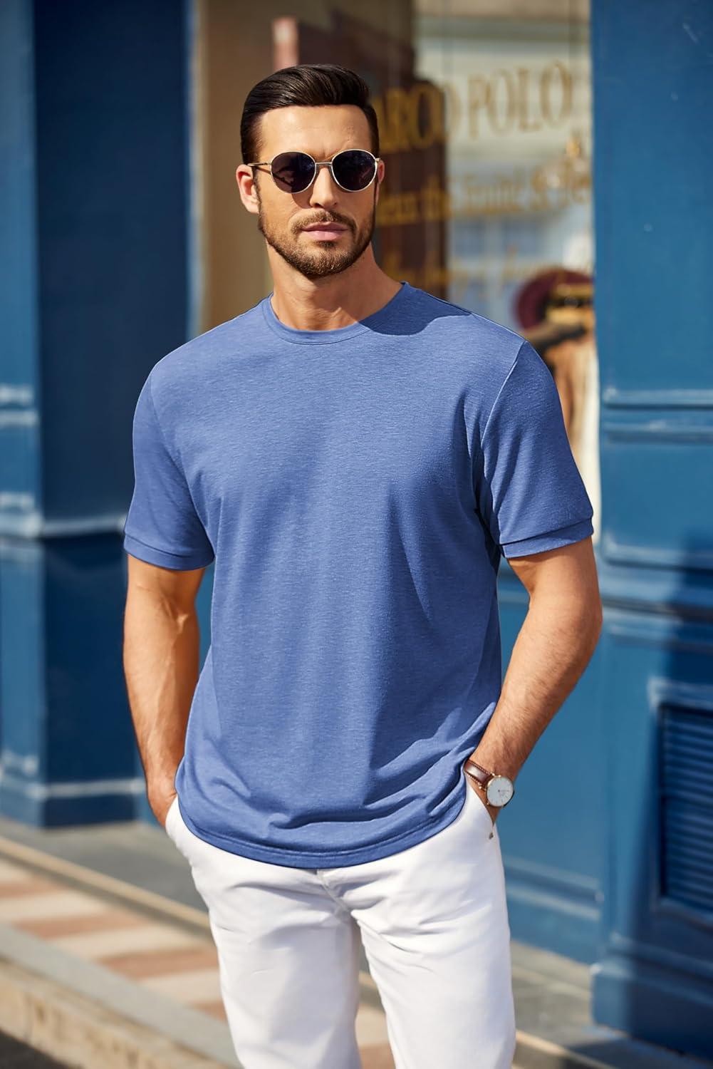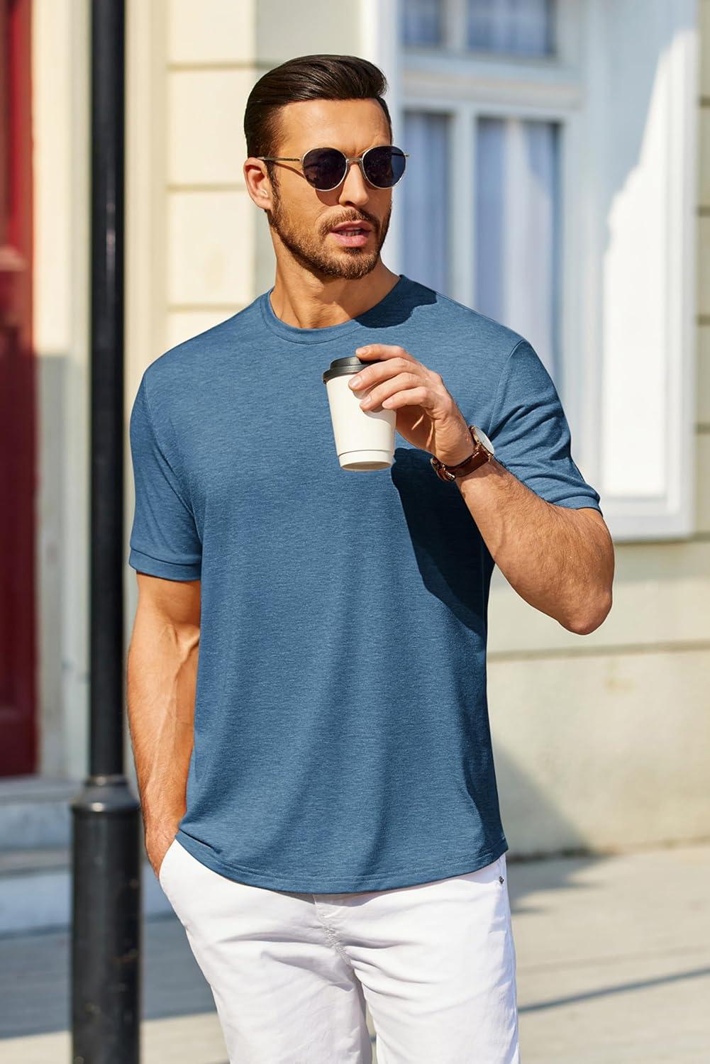 COOFANDY Men’s T Shirt Short Sleeve Crew Neck T-Shirt Casual Summer Tshirt Classic Basic Tee Shirt(Blue)