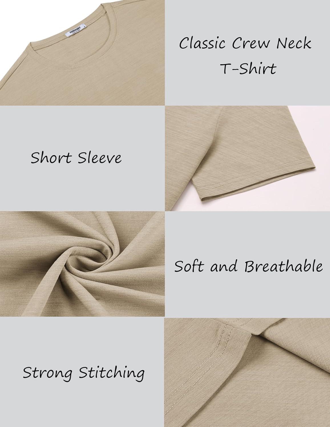 COOFANDY Men’s T Shirt Short Sleeve Classic Crew Neck T-Shirt Casual Summer Basic Tee Shirts(Khaki)
