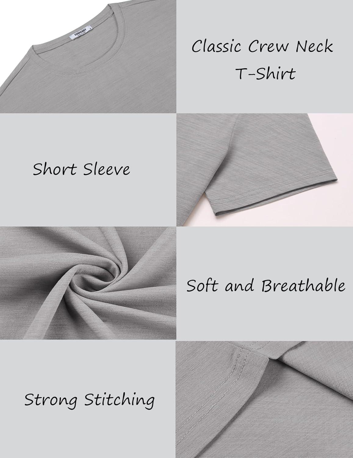 COOFANDY Men’s T Shirt Short Sleeve Classic Crew Neck T-Shirt Casual Summer Basic Tee Shirts(Light Gray)