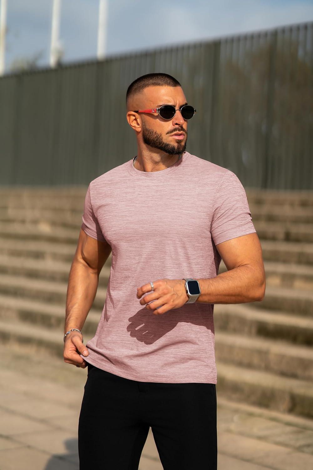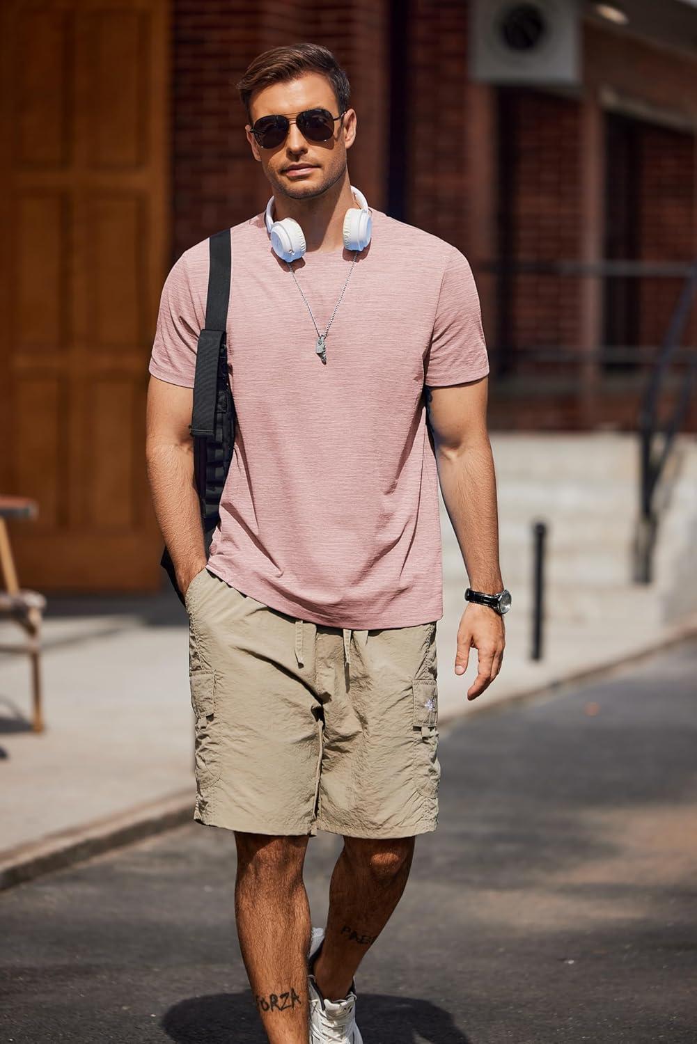 COOFANDY Men’s T Shirt Short Sleeve Classic Crew Neck T-Shirt Casual Summer Basic Tee Shirts(Light Pink)