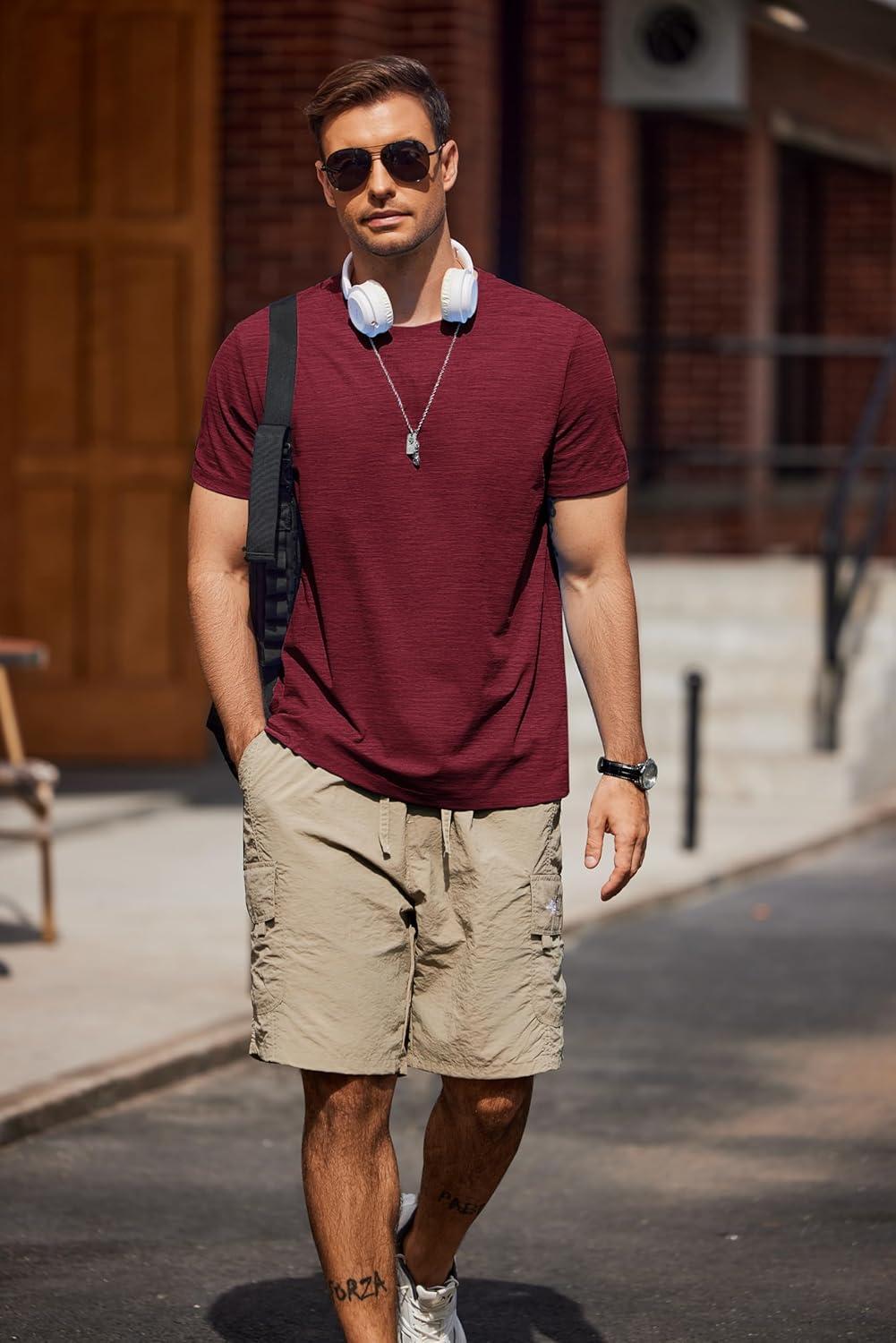 COOFANDY Men’s T Shirt Short Sleeve Classic Crew Neck T-Shirt Casual Summer Basic Tee Shirts(Wine Red)