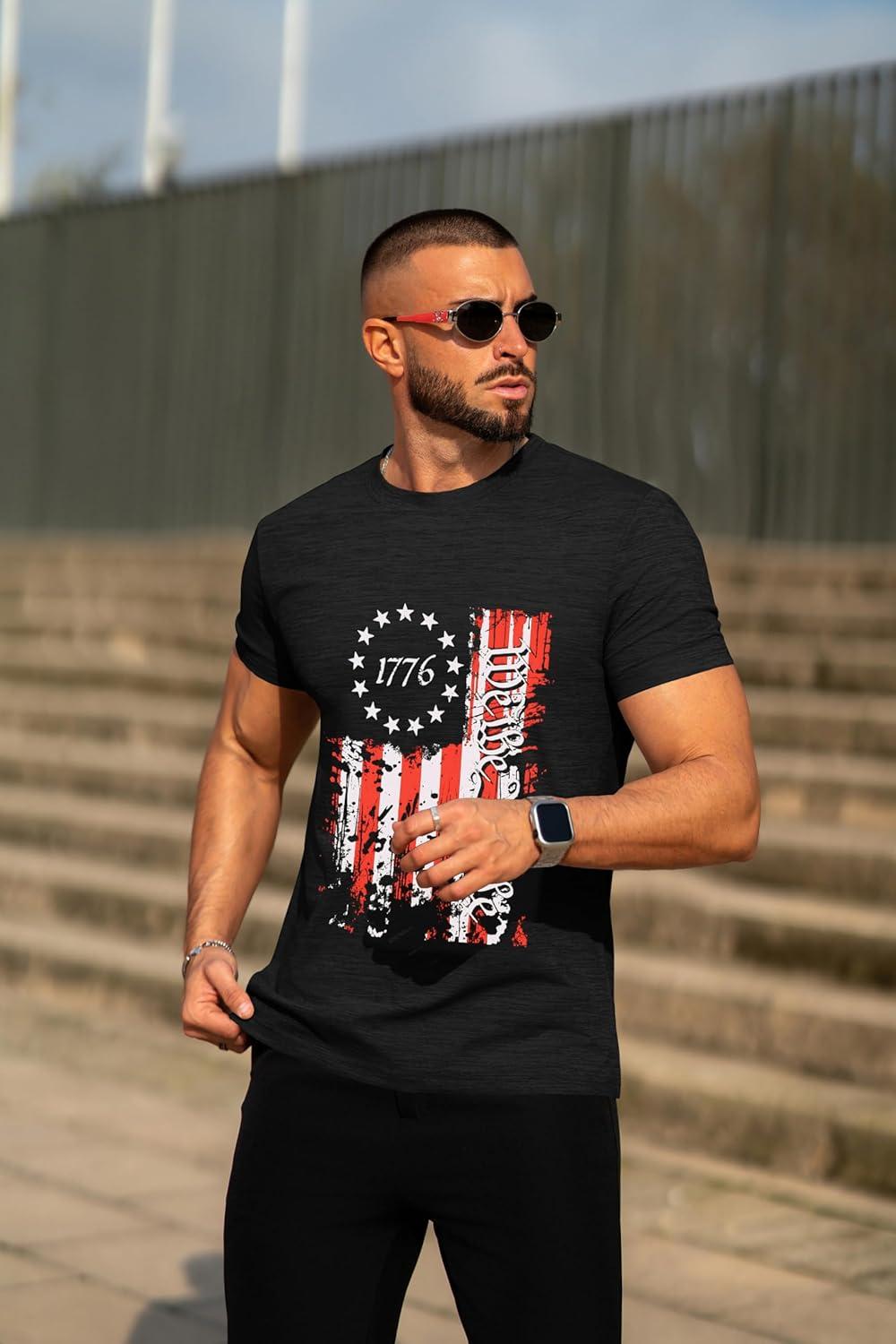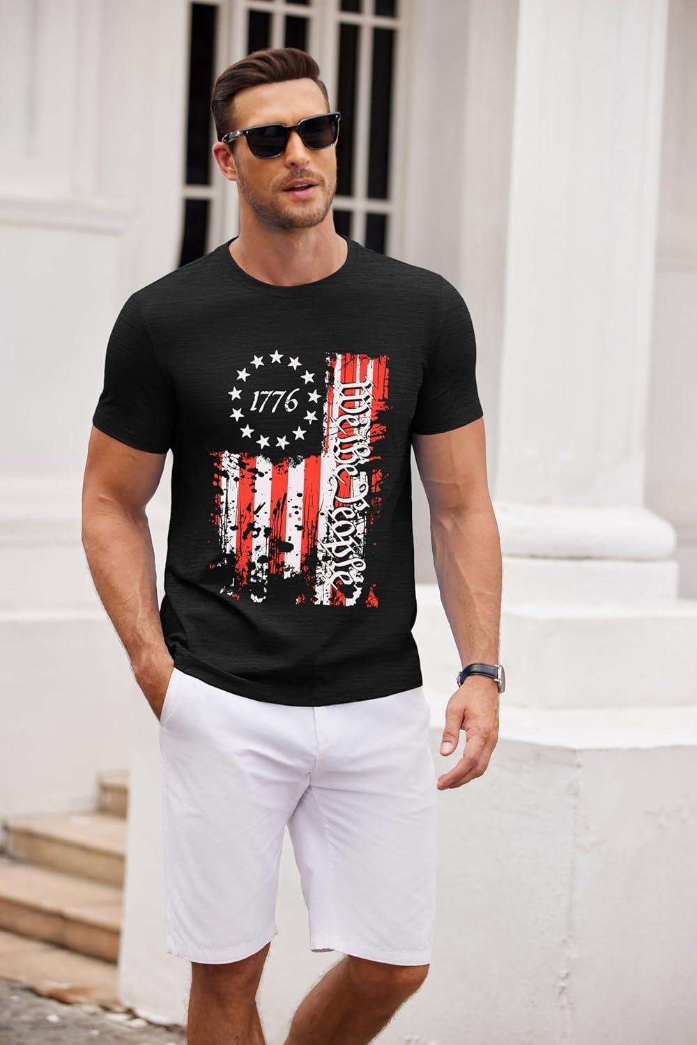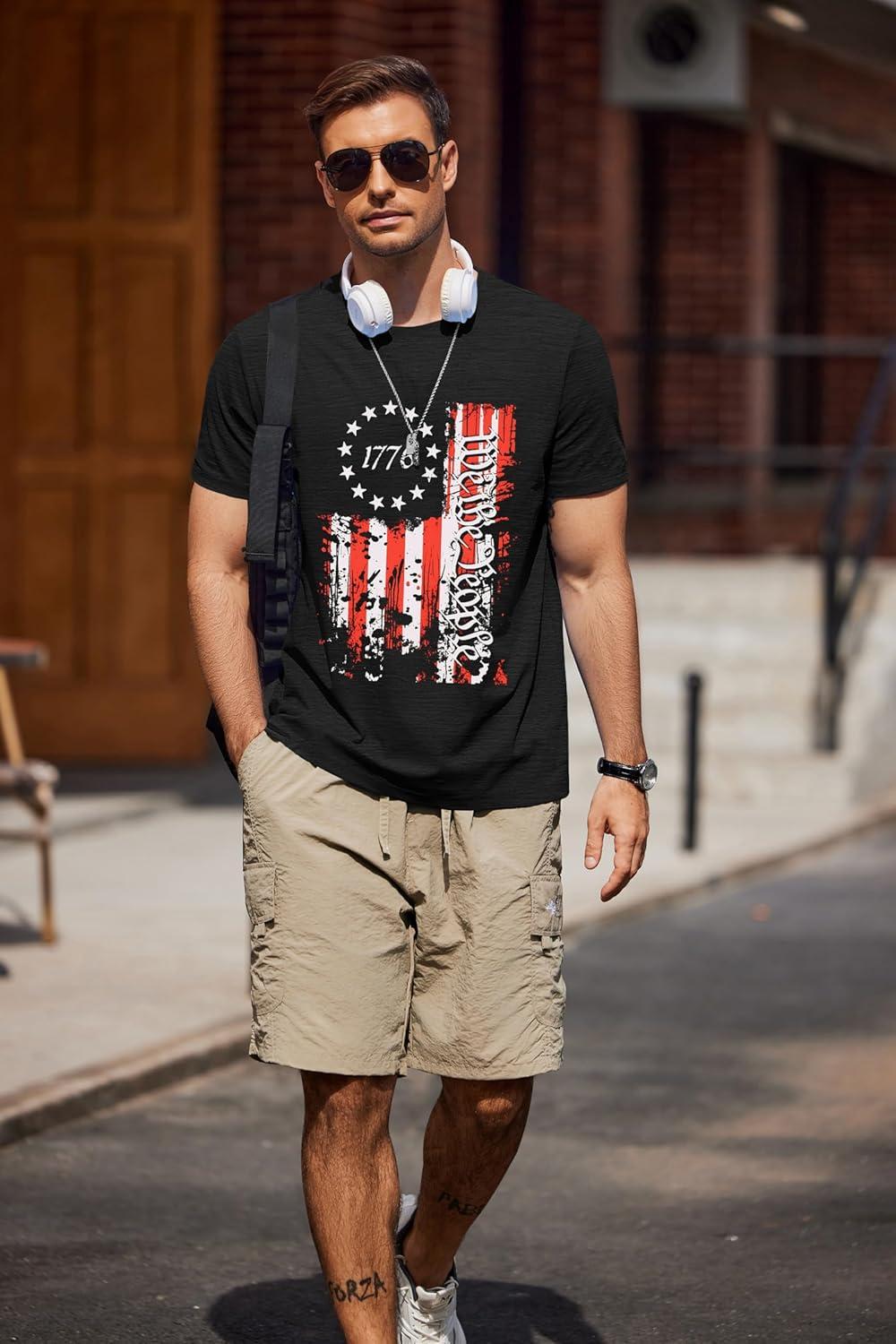 COOFANDY Men’s T Shirt Short Sleeve Classic Crew Neck T-Shirt Casual Summer Basic Tee Shirts(Y- Black Red White Flag)