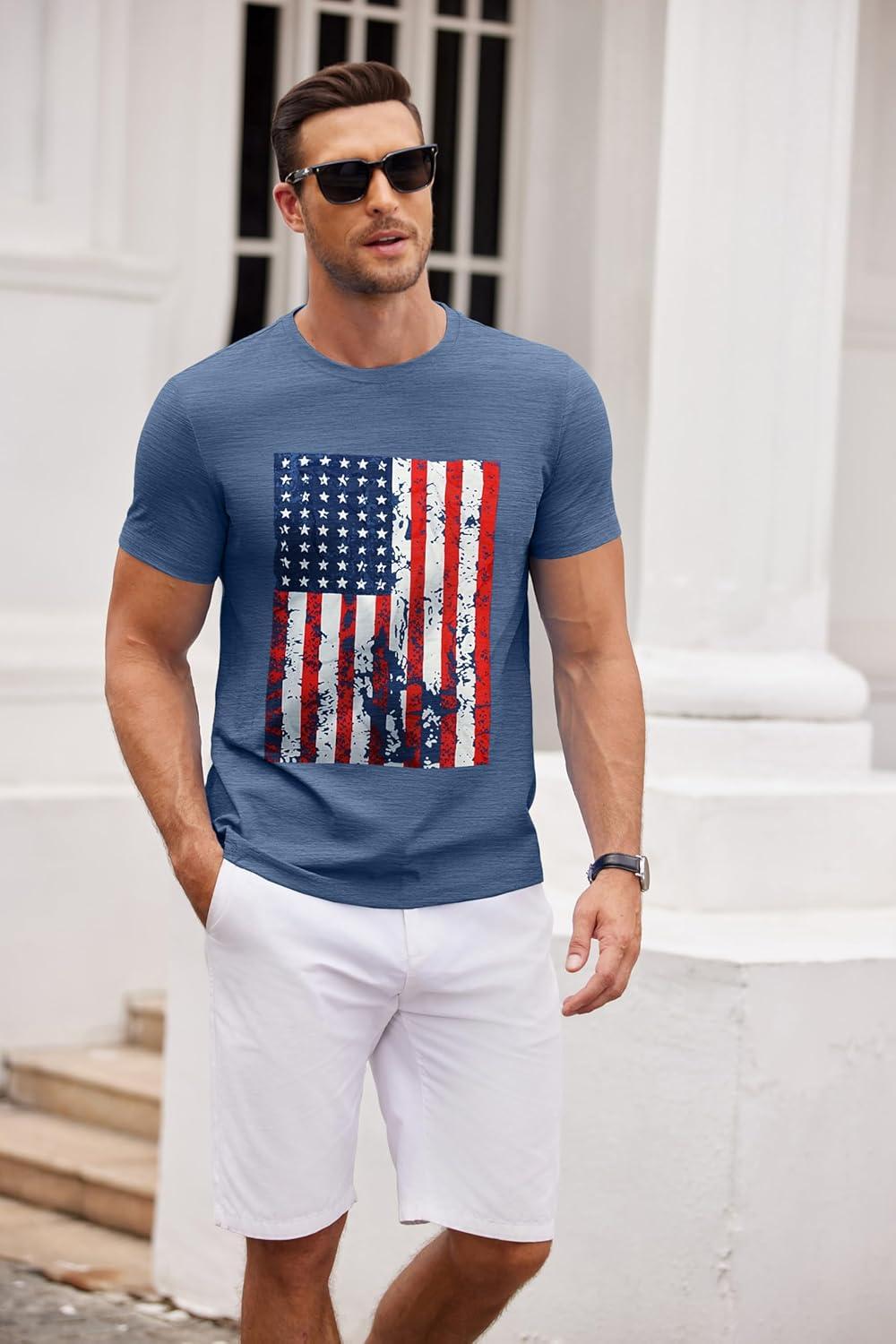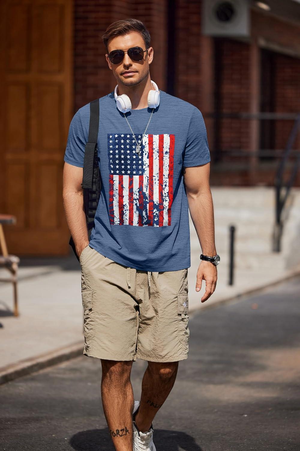 COOFANDY Men’s T Shirt Short Sleeve Classic Crew Neck T-Shirt Casual Summer Basic Tee Shirts(Y- Blue Red White Flag)