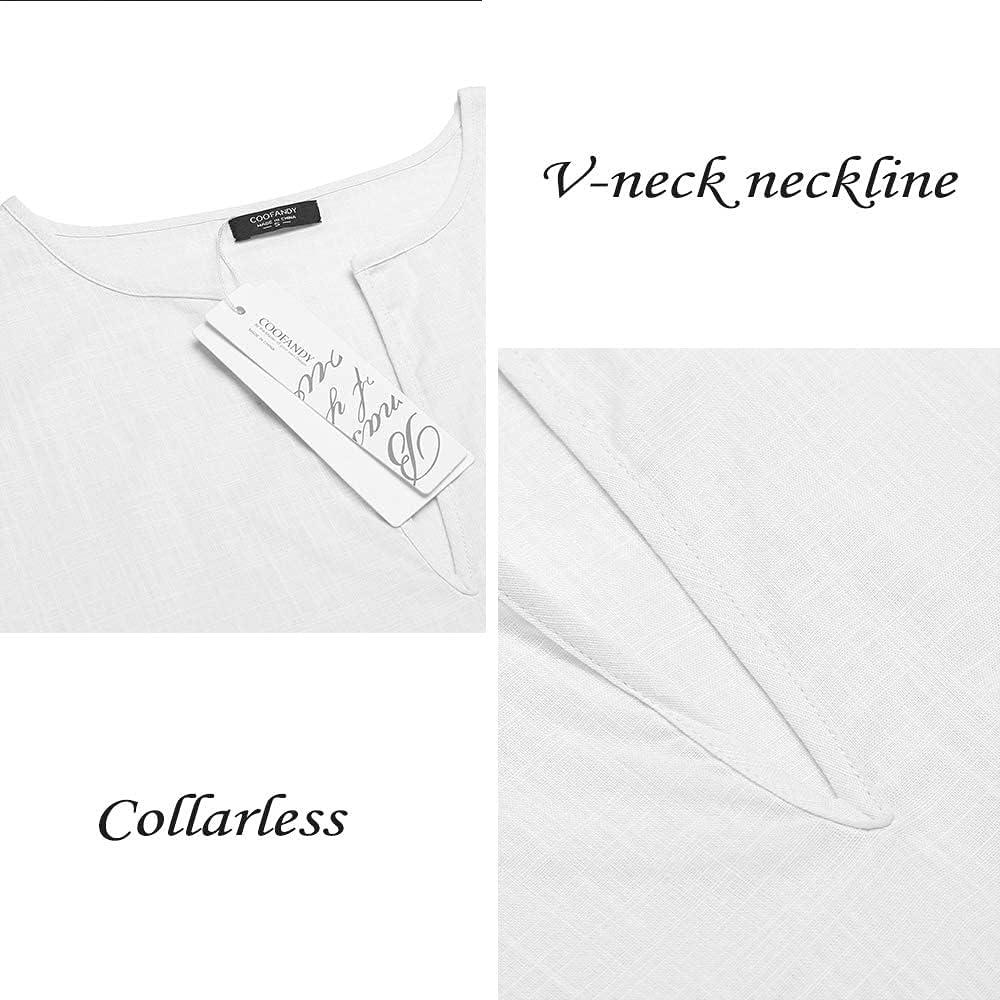 COOFANDY Men’s V-Neck Linen Robe Short Sleeve Kaftan Thobe Long Gown Casual Shirt for Beach, Summer(01-white)
