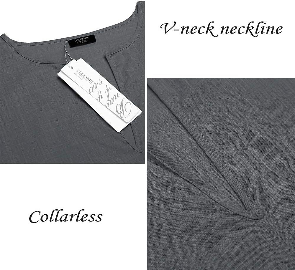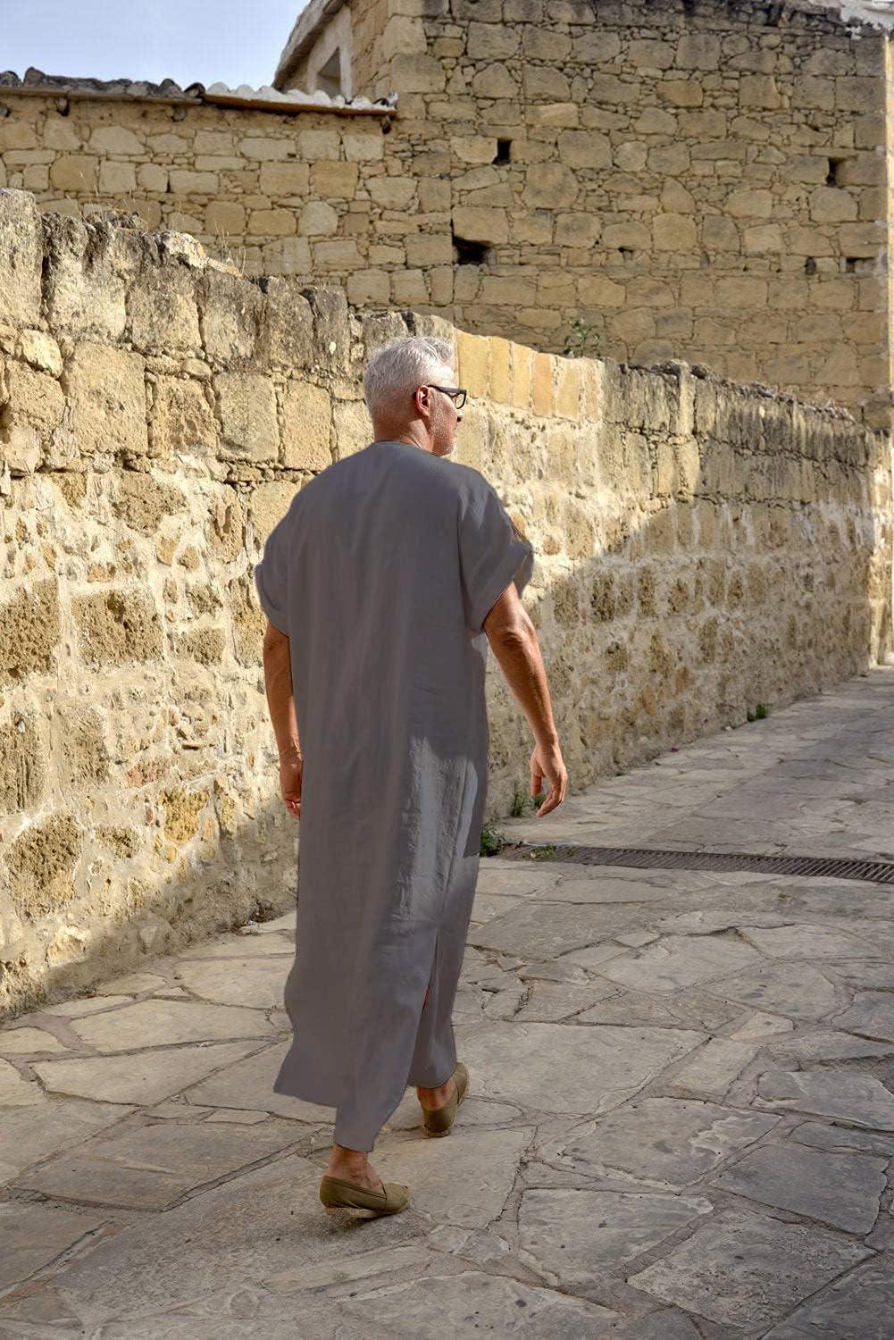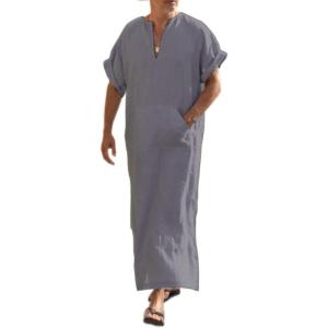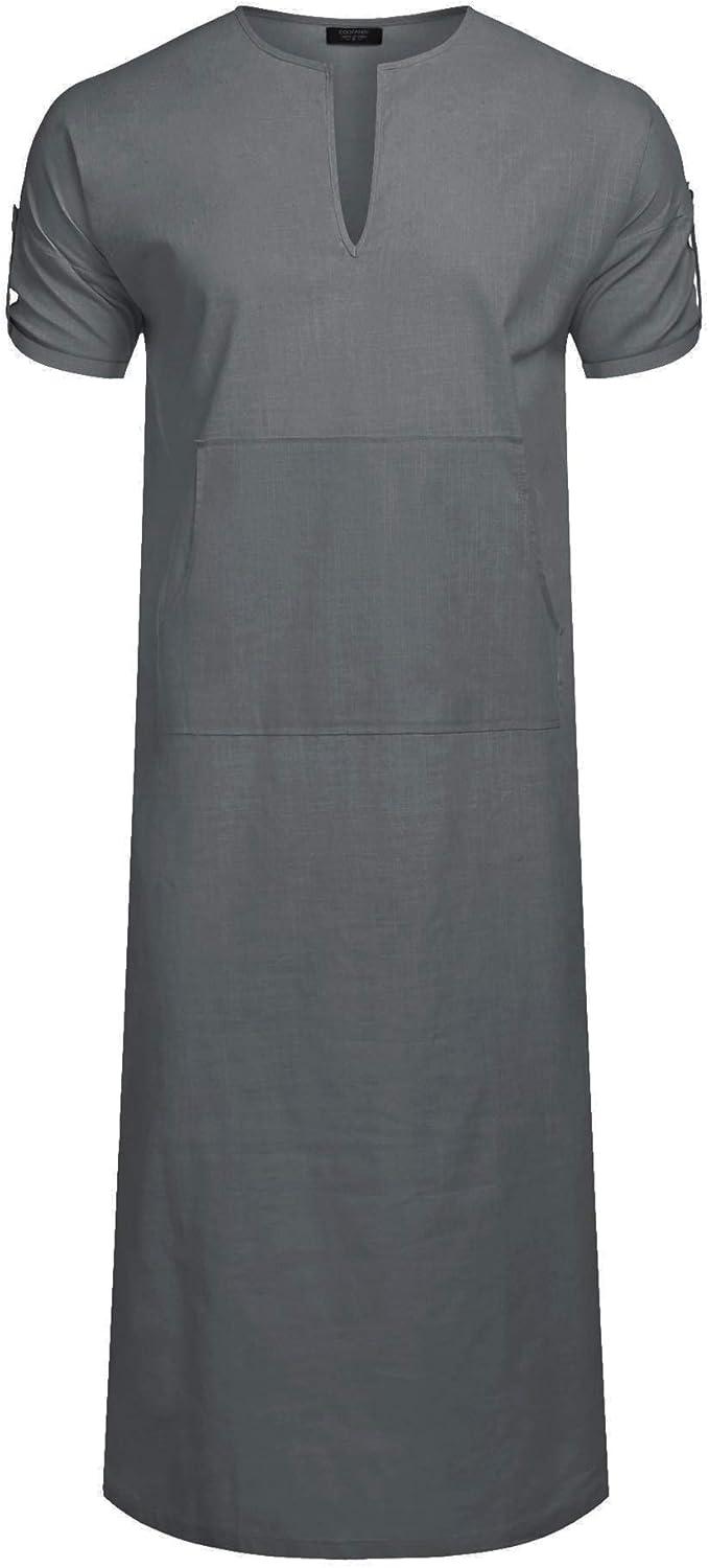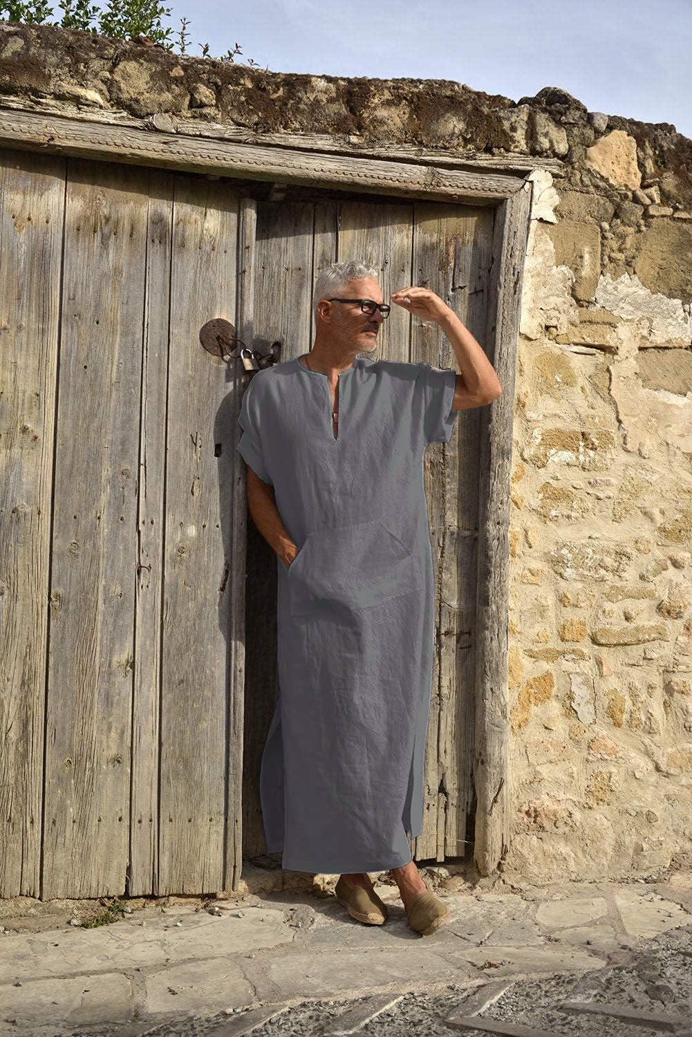 COOFANDY Men’s V-Neck Linen Robe Short Sleeve Kaftan Thobe Long Gown Casual Shirt for Beach, Summer(Dark Grey)