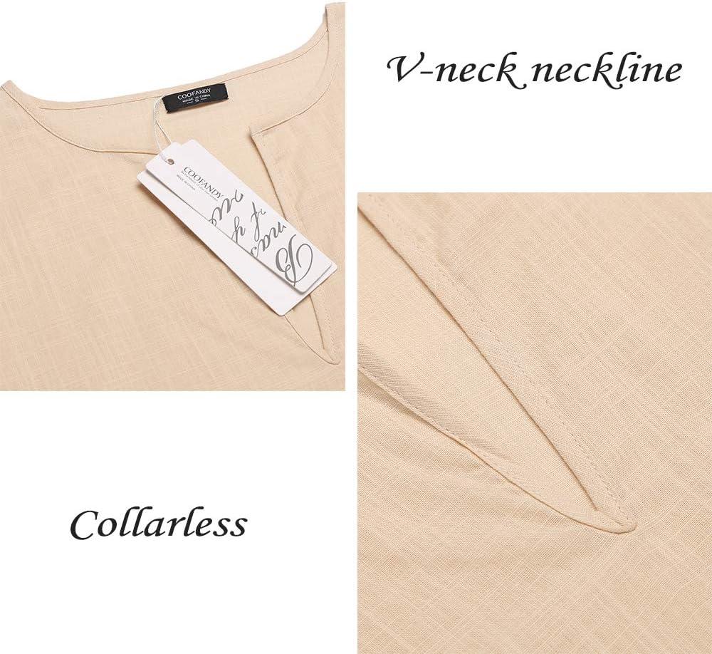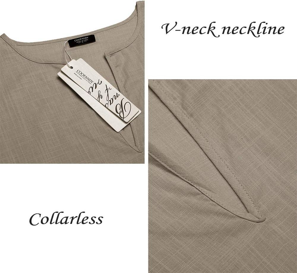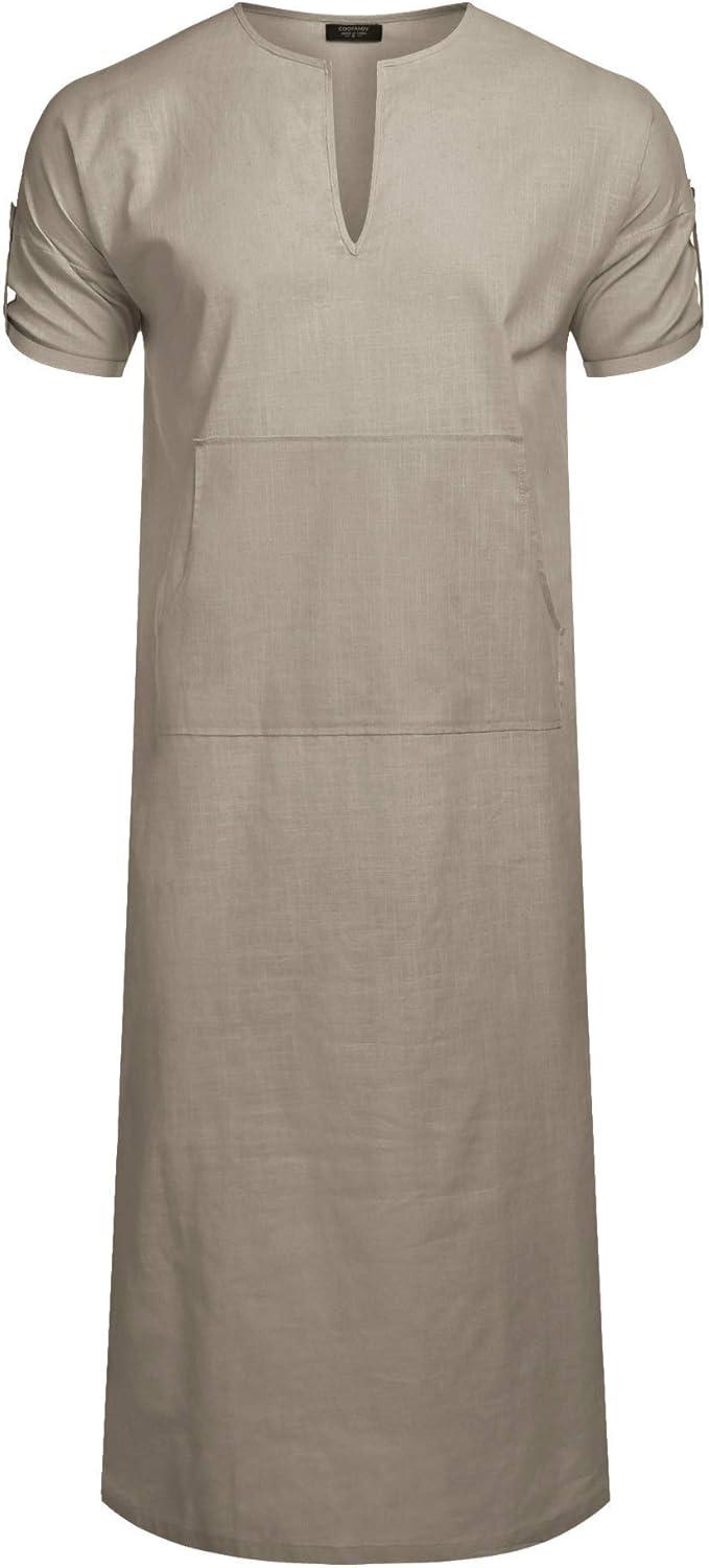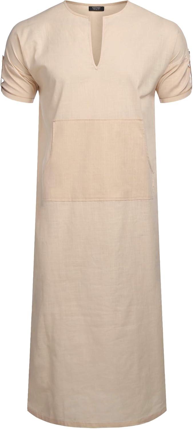 COOFANDY Men’s V-Neck Linen Robe Short Sleeve Kaftan Thobe Long Gown Casual Shirt for Beach, Summer(Khaki)