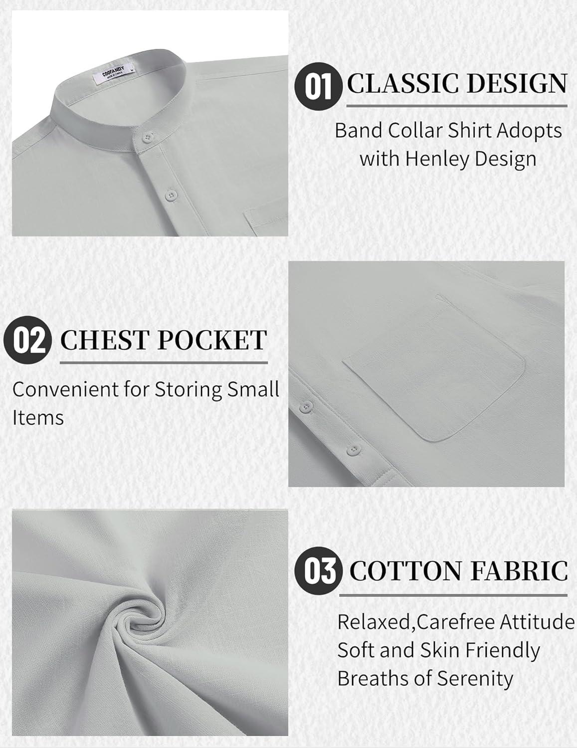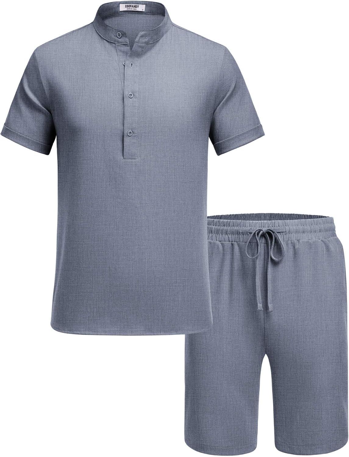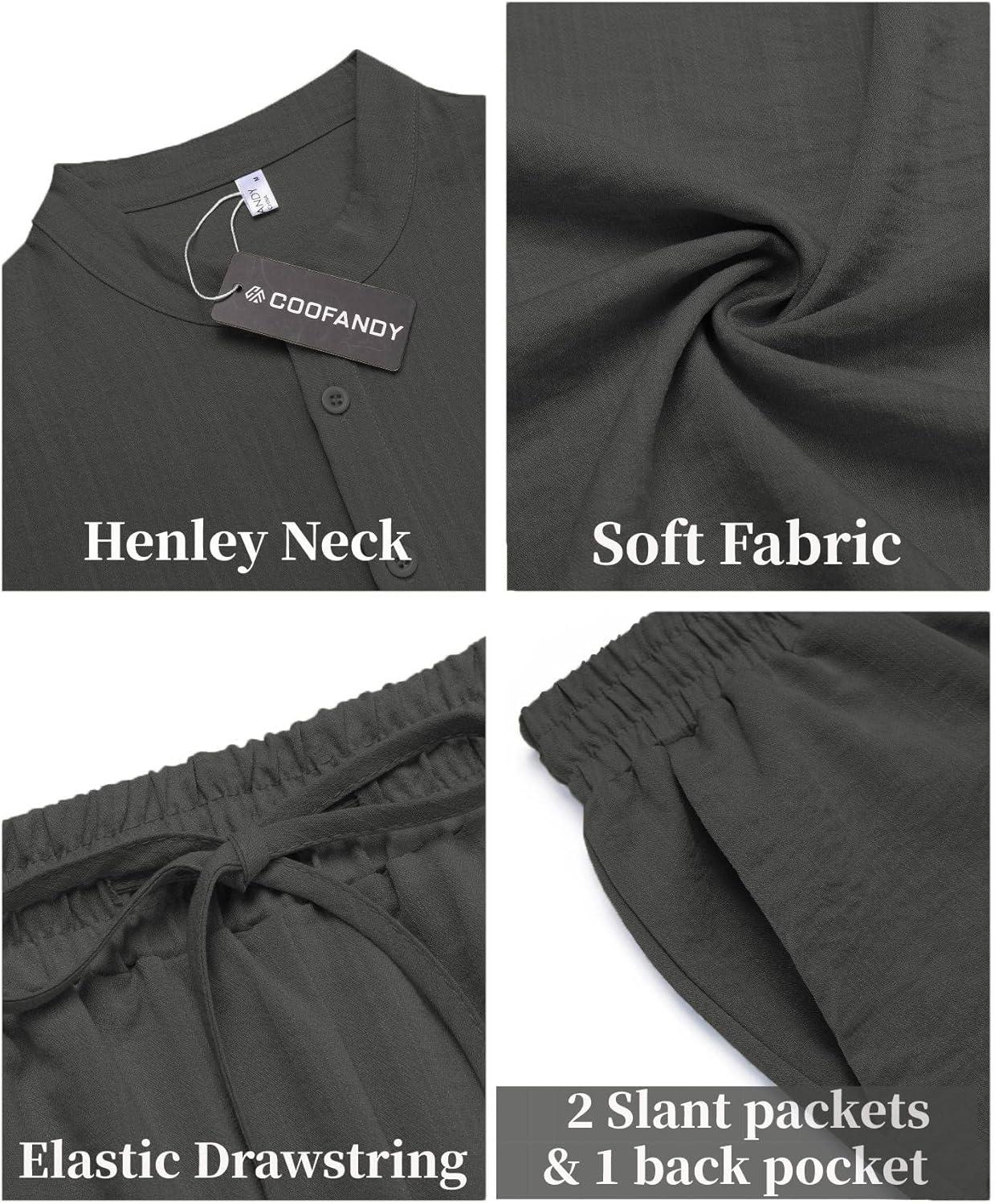 COOFANDY Men’s 2 Pieces Cotton Linen Set Casual Short Sleeve Henley Shirts Beach Yoga Pants Summer Outfits(Grey)