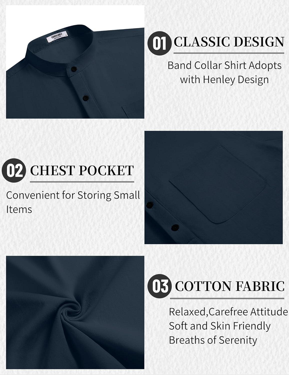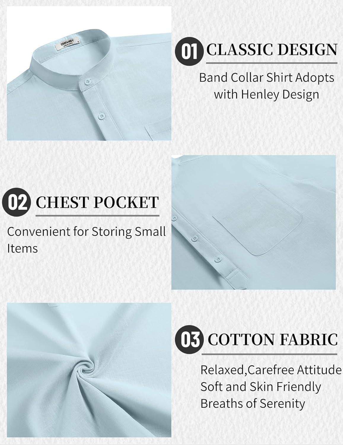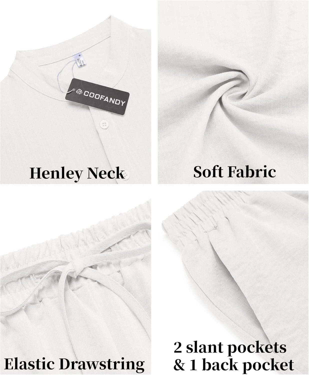 COOFANDY Men’s 2 Pieces Cotton Linen Set Casual Short Sleeve Henley Shirts Beach Yoga Pants Summer Outfits(Light Navy)