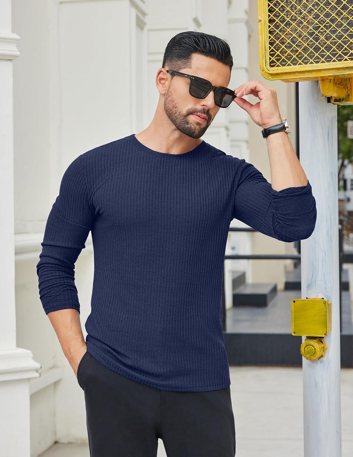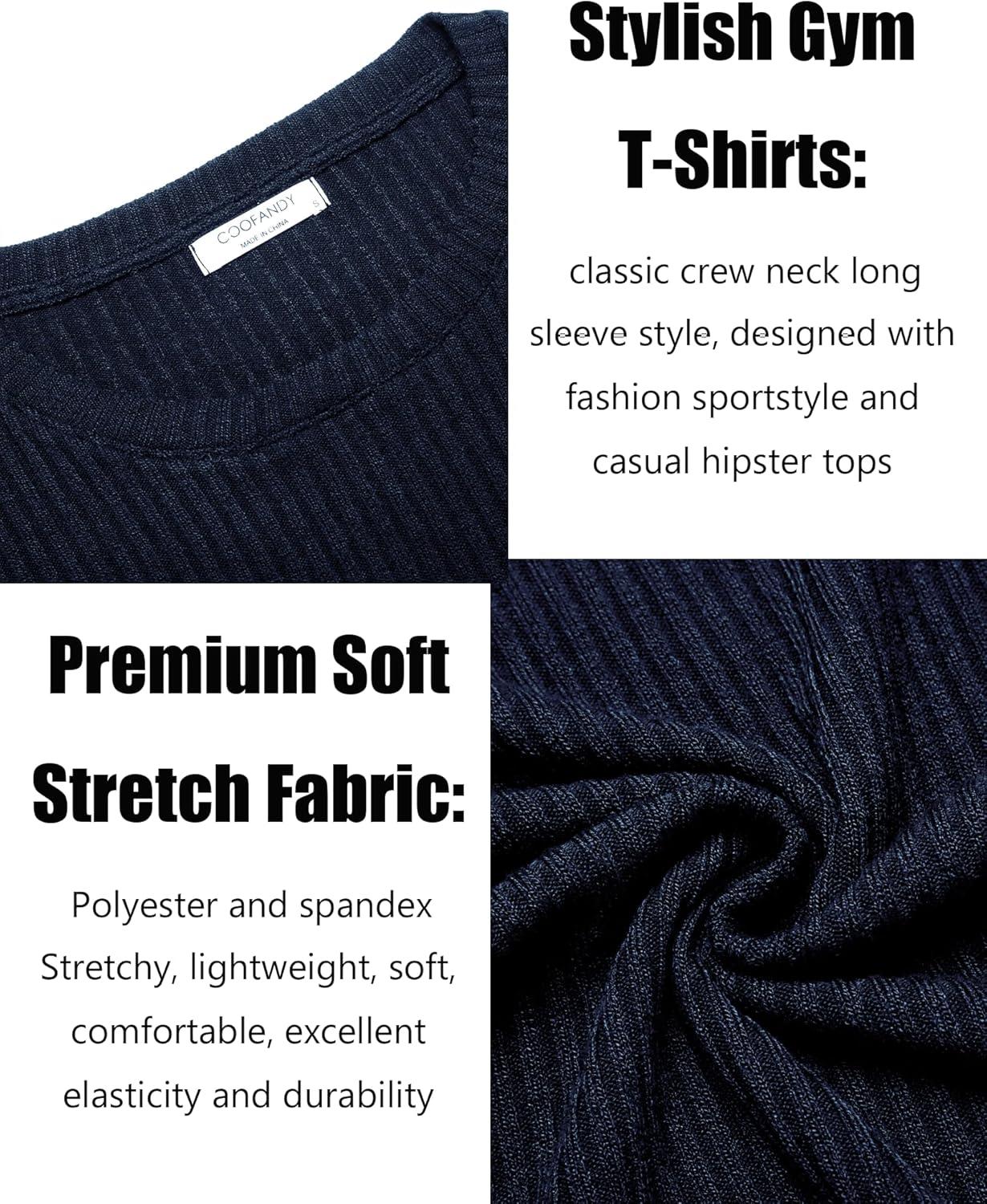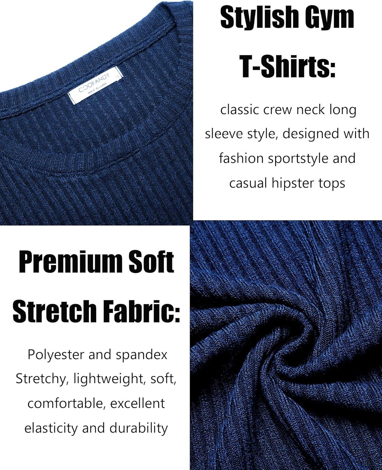 COOFANDY Men’s 2 Pack Muscle T-Shirt Stretch Long Sleeve Gym Workout Bodybuilding Training Tee Shirts Casual Hipster Tops(Black/Dark Blue)