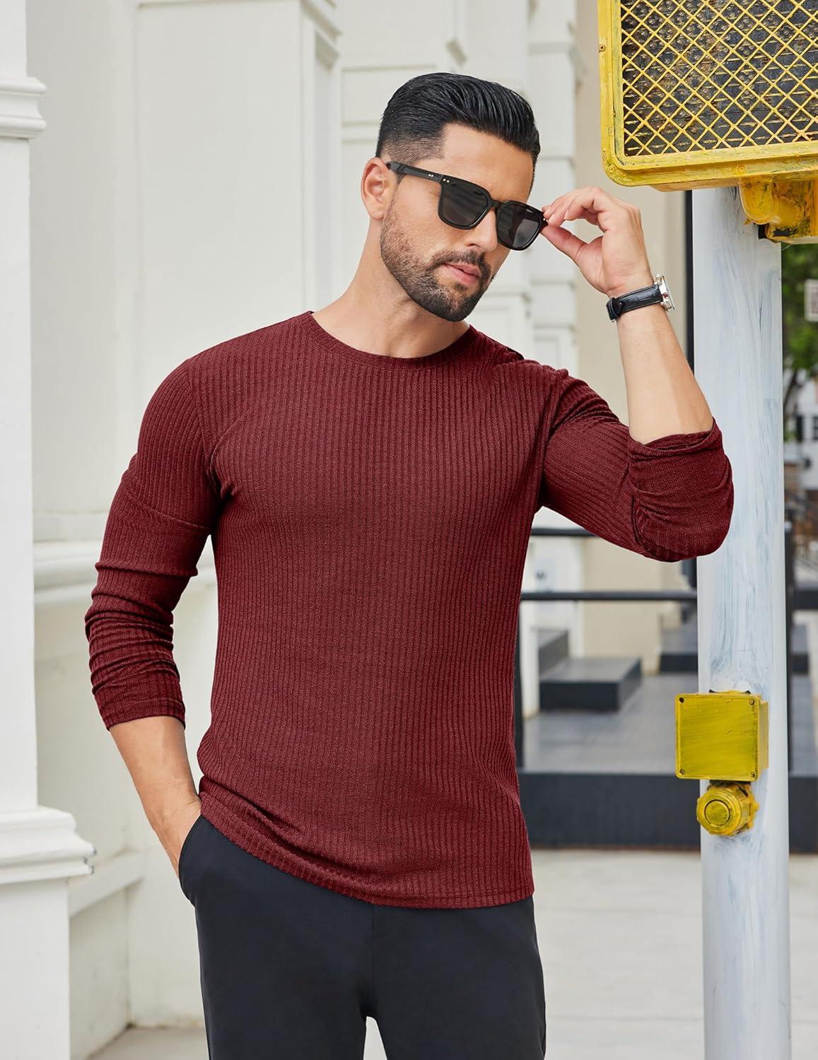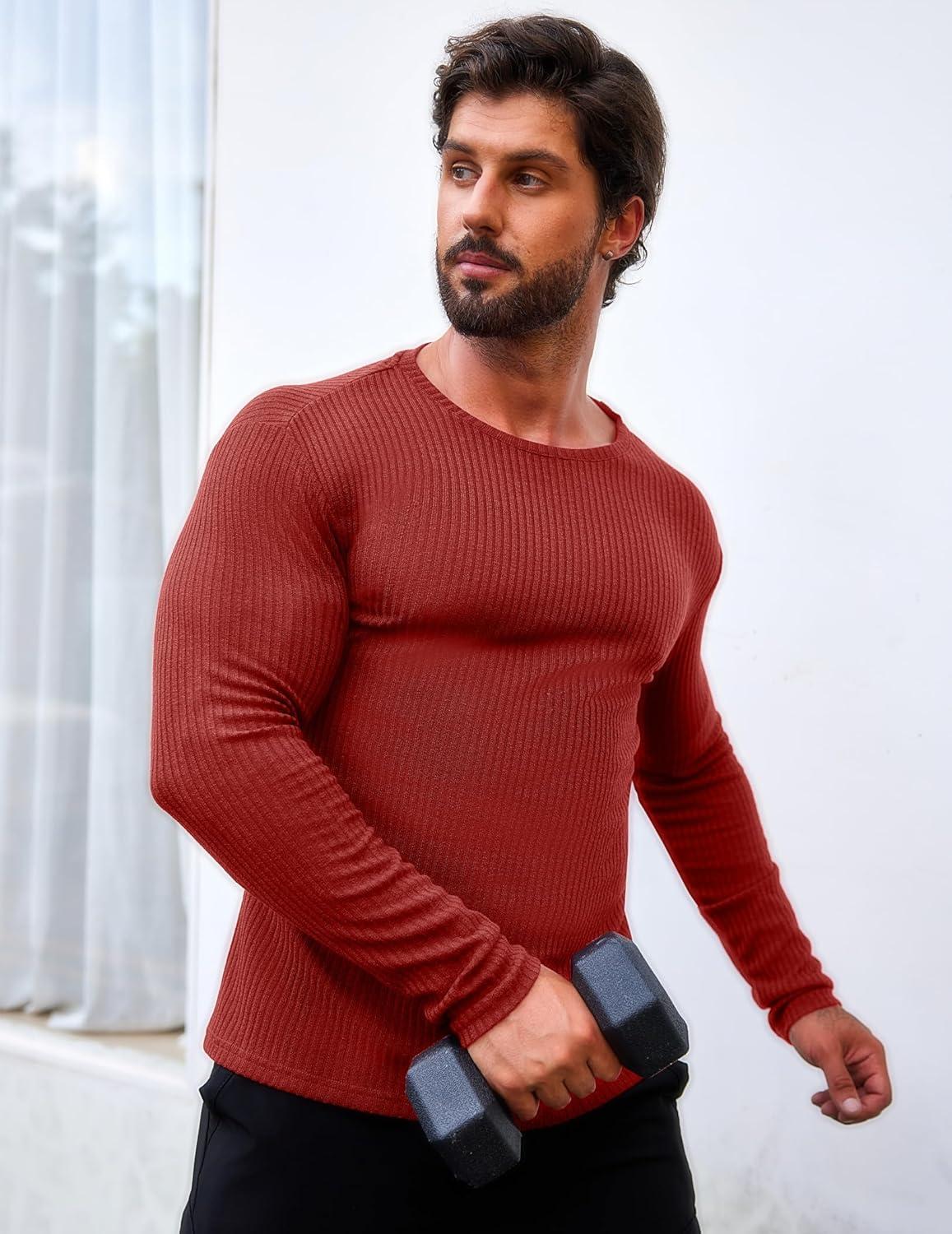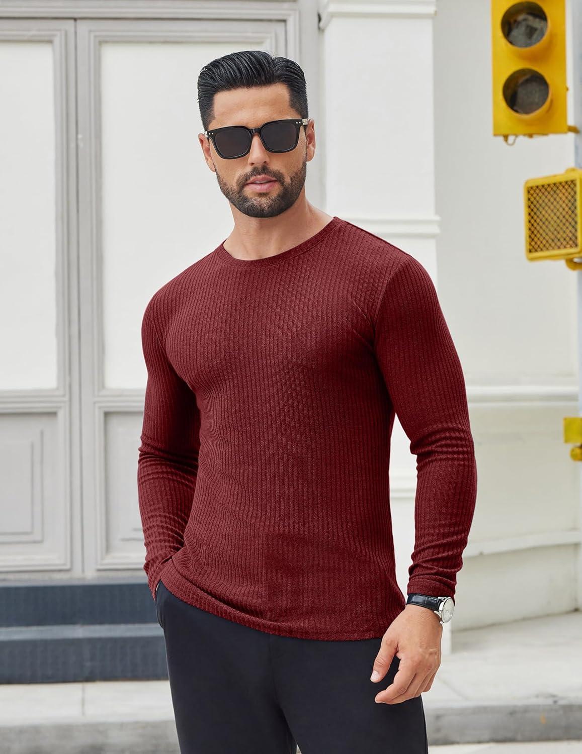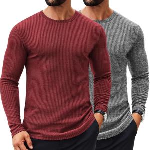 COOFANDY Men 2 Pack Muscle Fitted T Shirt Gym Workout Athletic Long Sleeves Tee(Black/Wine Red)