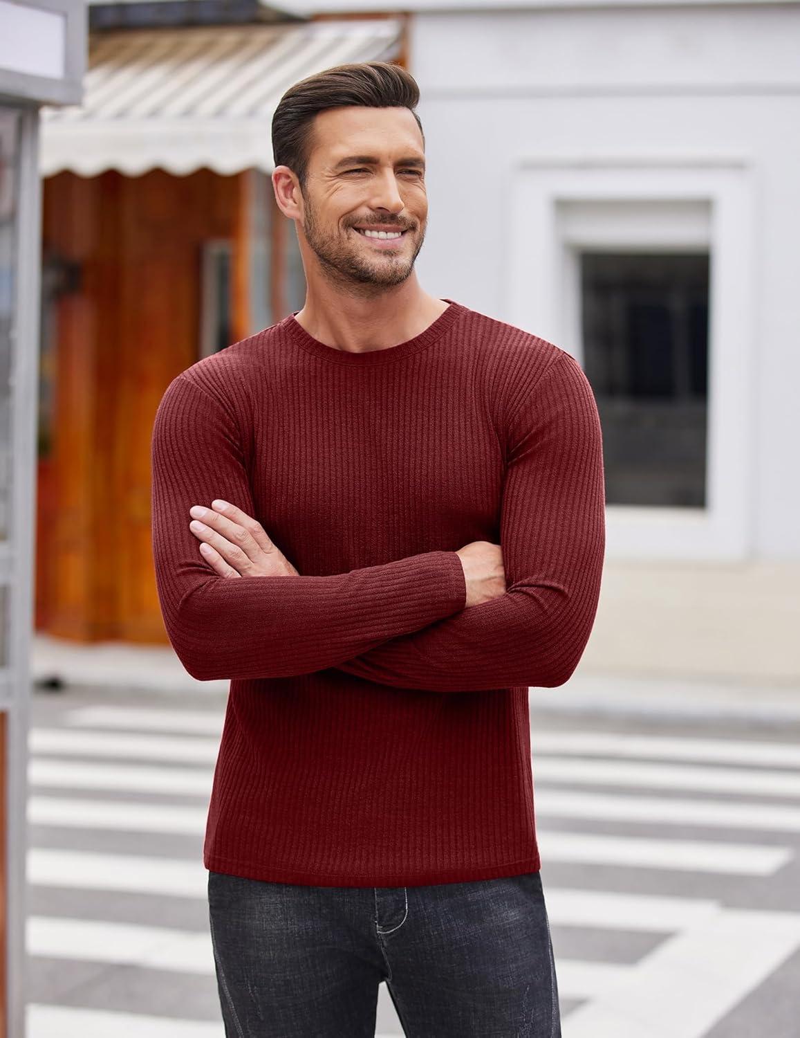 COOFANDY Men Long Sleeve Henley Shirs Casual Basic T Shirts Soild Button Tees with Pockets(Dark Red)