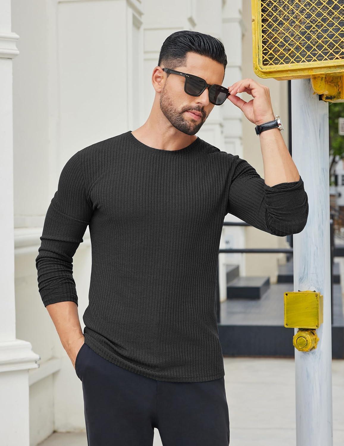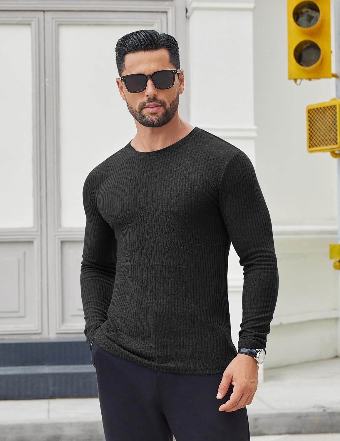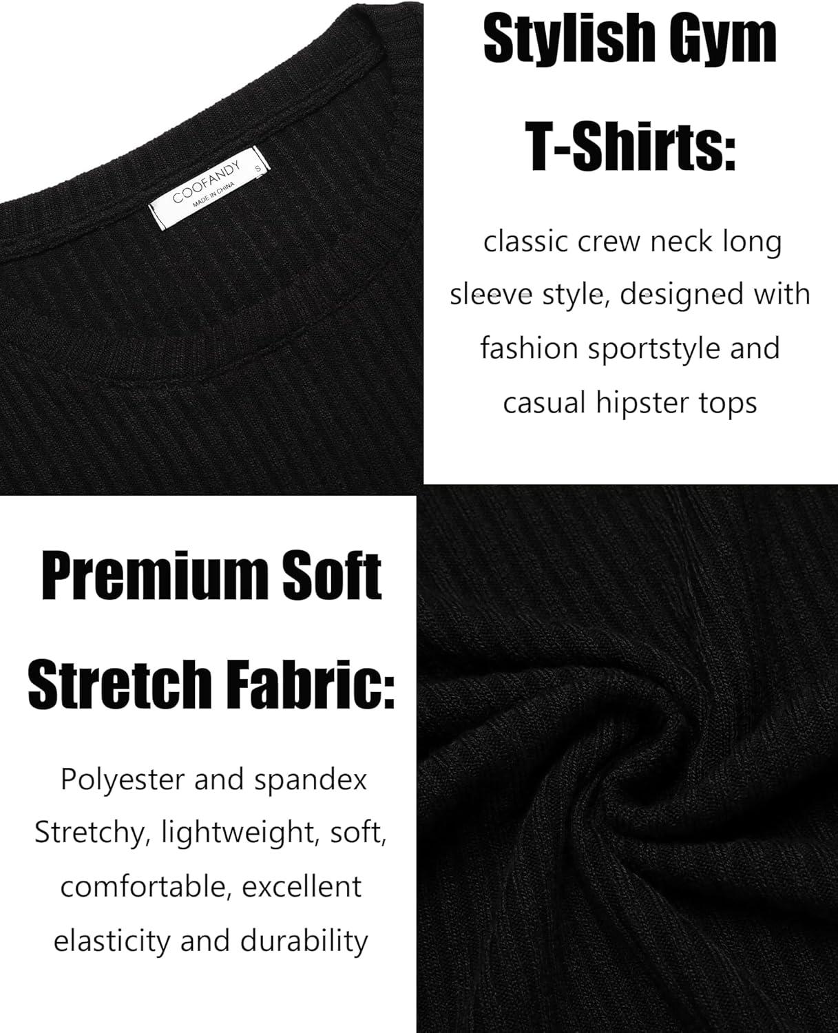 COOFANDY Men’s 2 Pack Muscle T-Shirt Stretch Long Sleeve Gym Workout Bodybuilding Training Tee Shirts Casual Hipster Tops(Black)