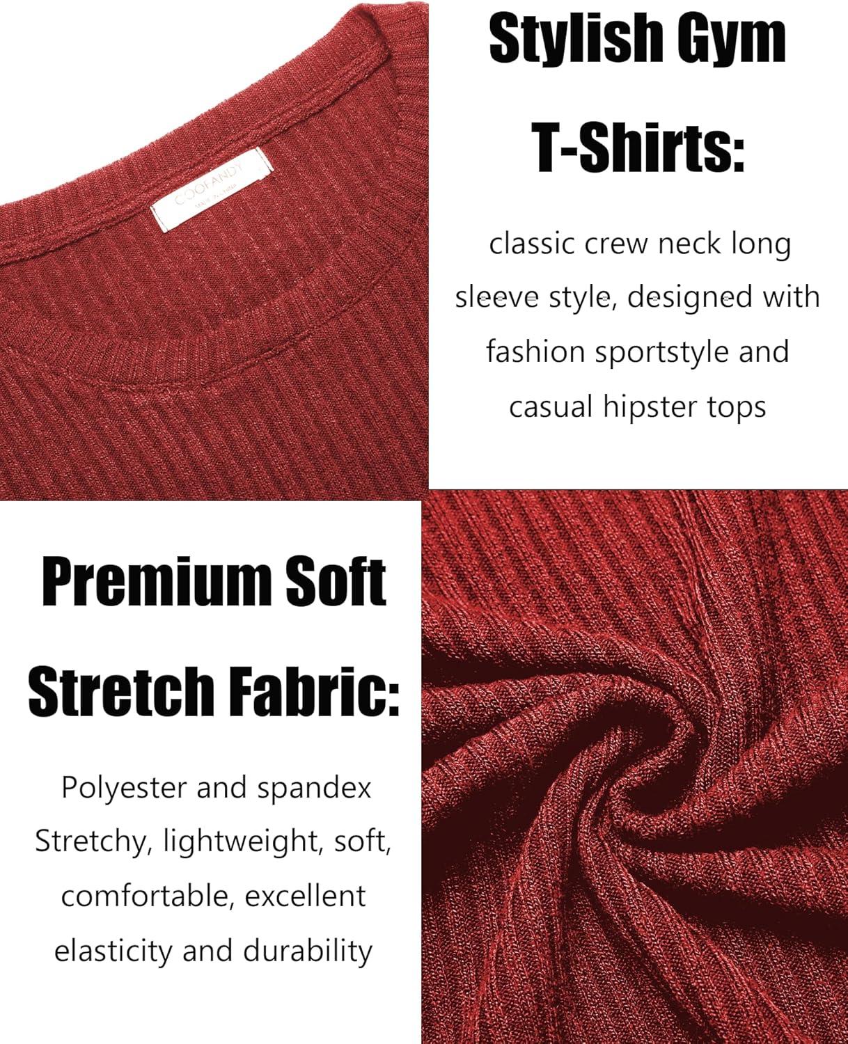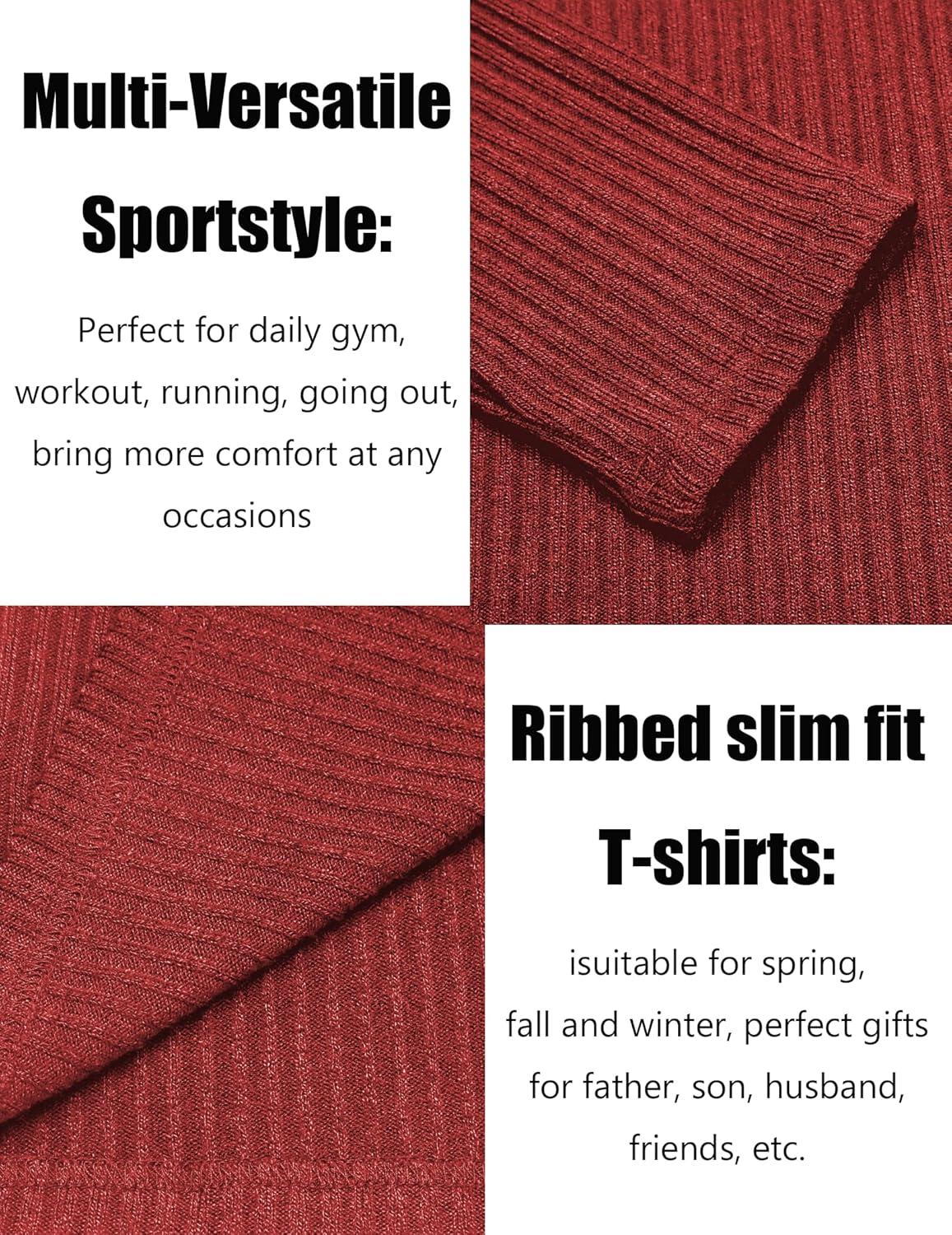 COOFANDY Men’s 2 Pack Muscle T-Shirt Stretch Long Sleeve Gym Workout Bodybuilding Training Tee Shirts Casual Hipster Tops(Black/Red)