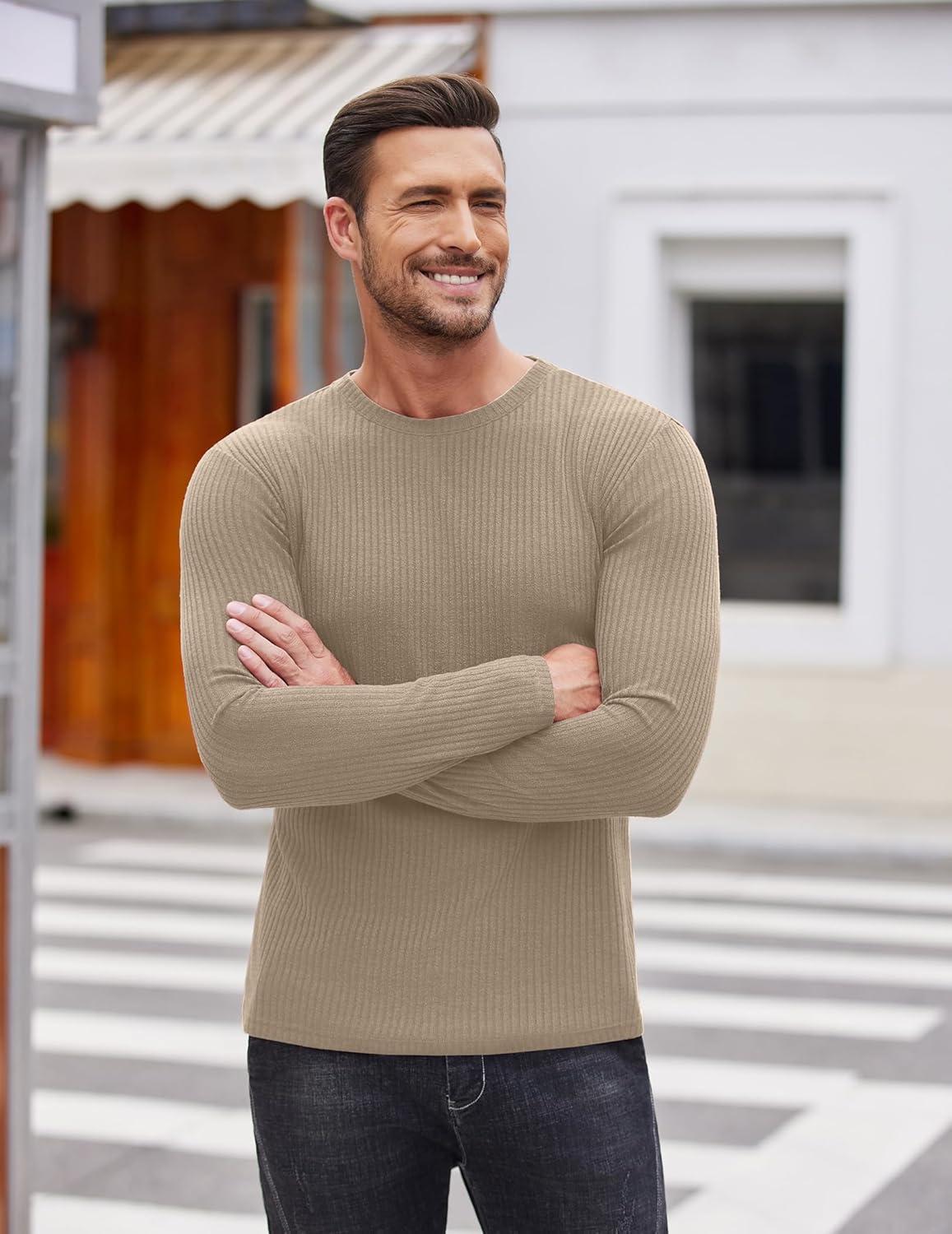 COOFANDY Men Long Sleeve Henley Shirs Casual Basic T Shirts Soild Button Tees with Pockets(Khaki)