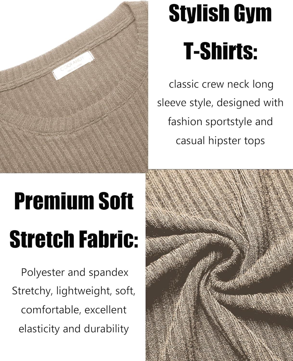 COOFANDY Men’s 2 Pack Muscle T-Shirt Stretch Long Sleeve Gym Workout Bodybuilding Training Tee Shirts Casual Hipster Tops(Dark Grey/Khaki)