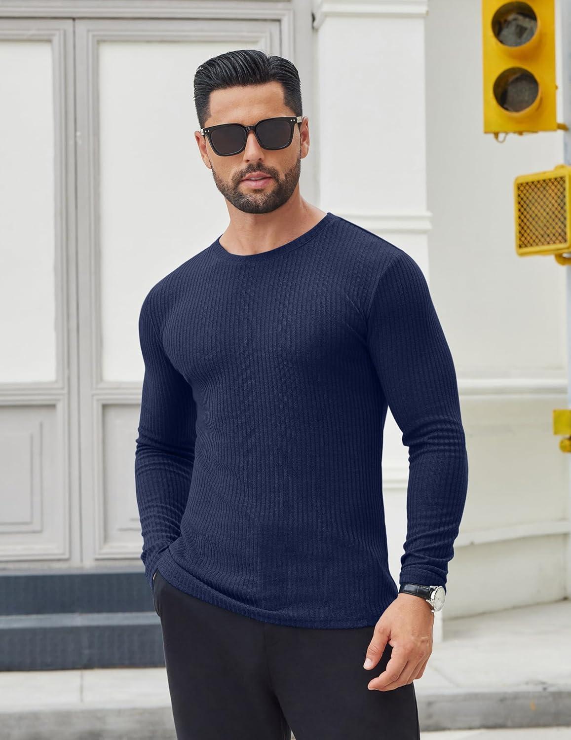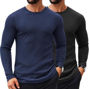 COOFANDY Men 2 Pack Muscle Fitted T Shirt Gym Workout Athletic Long Sleeves Tee(Black/Navy Blue)