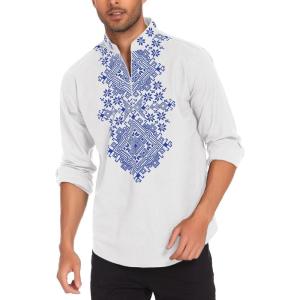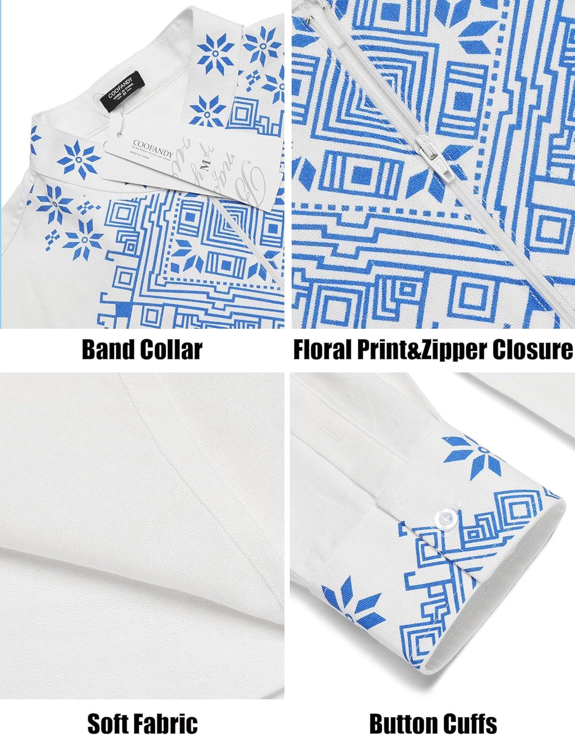 COOFANDY Men’s Henley Shirt Vyshyvanka Long Sleeve African Print Shirts Casual Zip Up Cotton Linen Beach Hippie Shirt(01white)