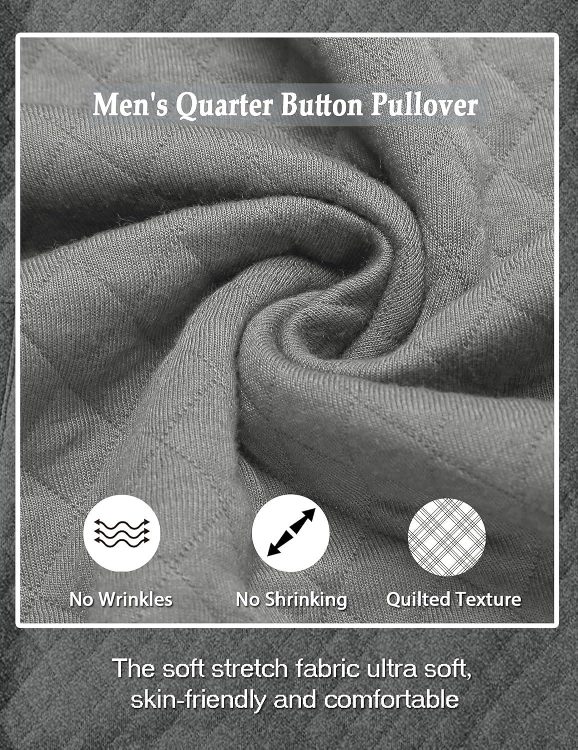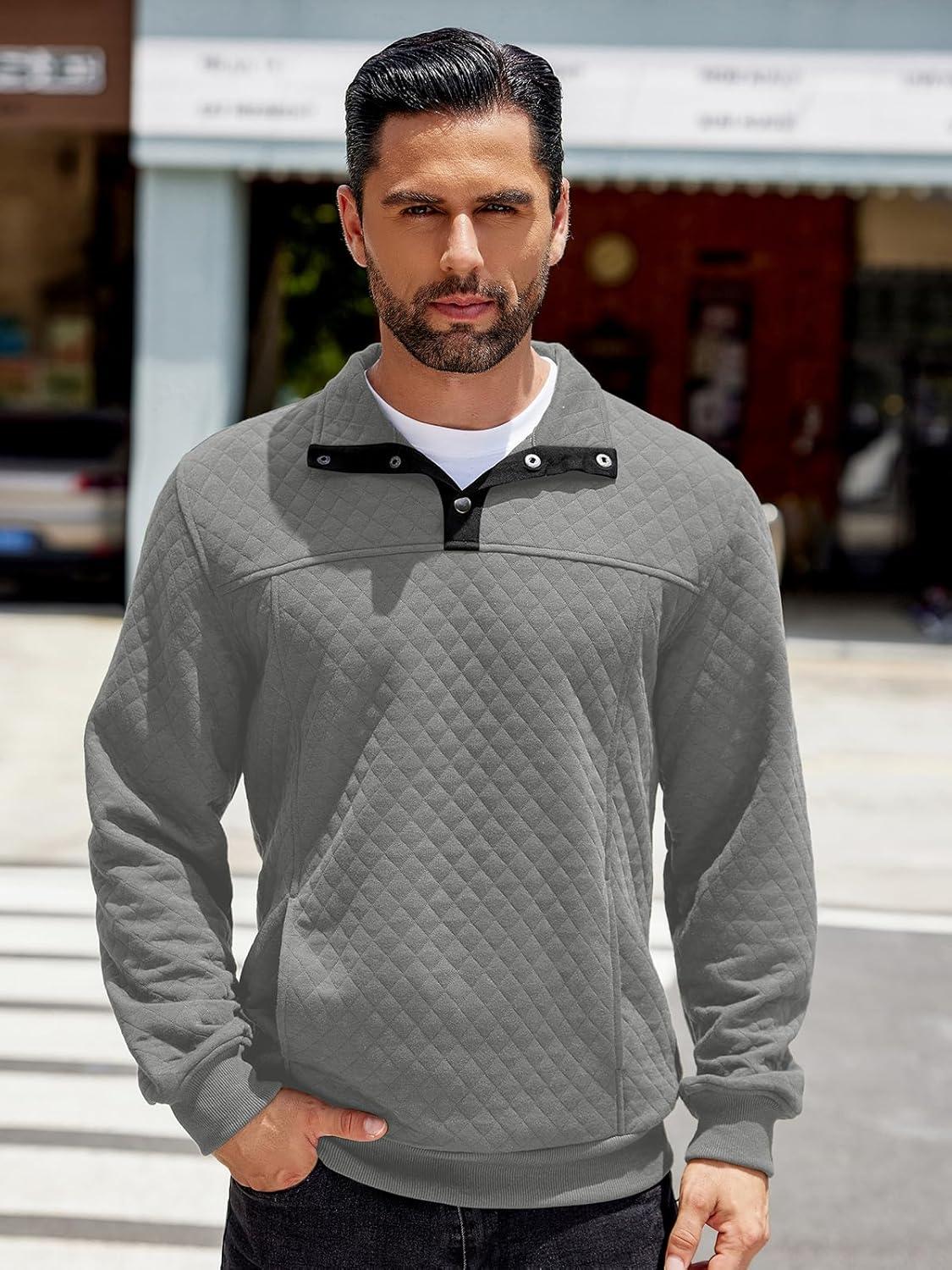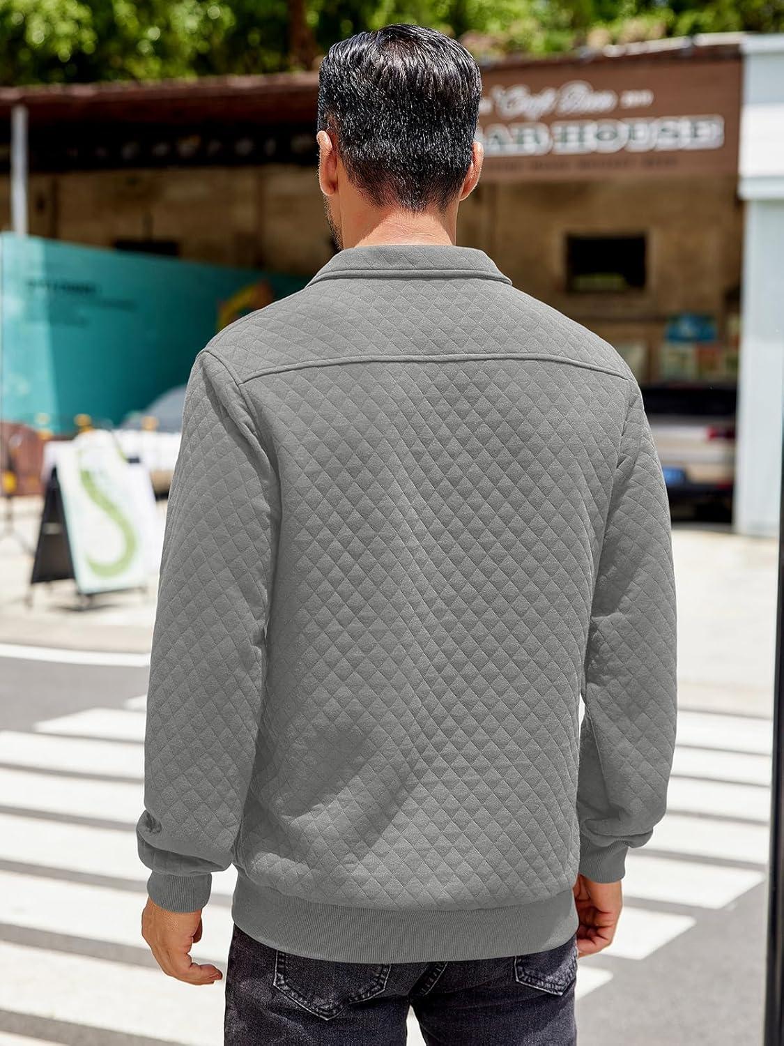 COOFANDY Mens Quarter Sweatshirt Quilted Long Sleeve Mock Neck Active Sweater Waffle Pullover Polo Shirts With Pockets(Light Grey)