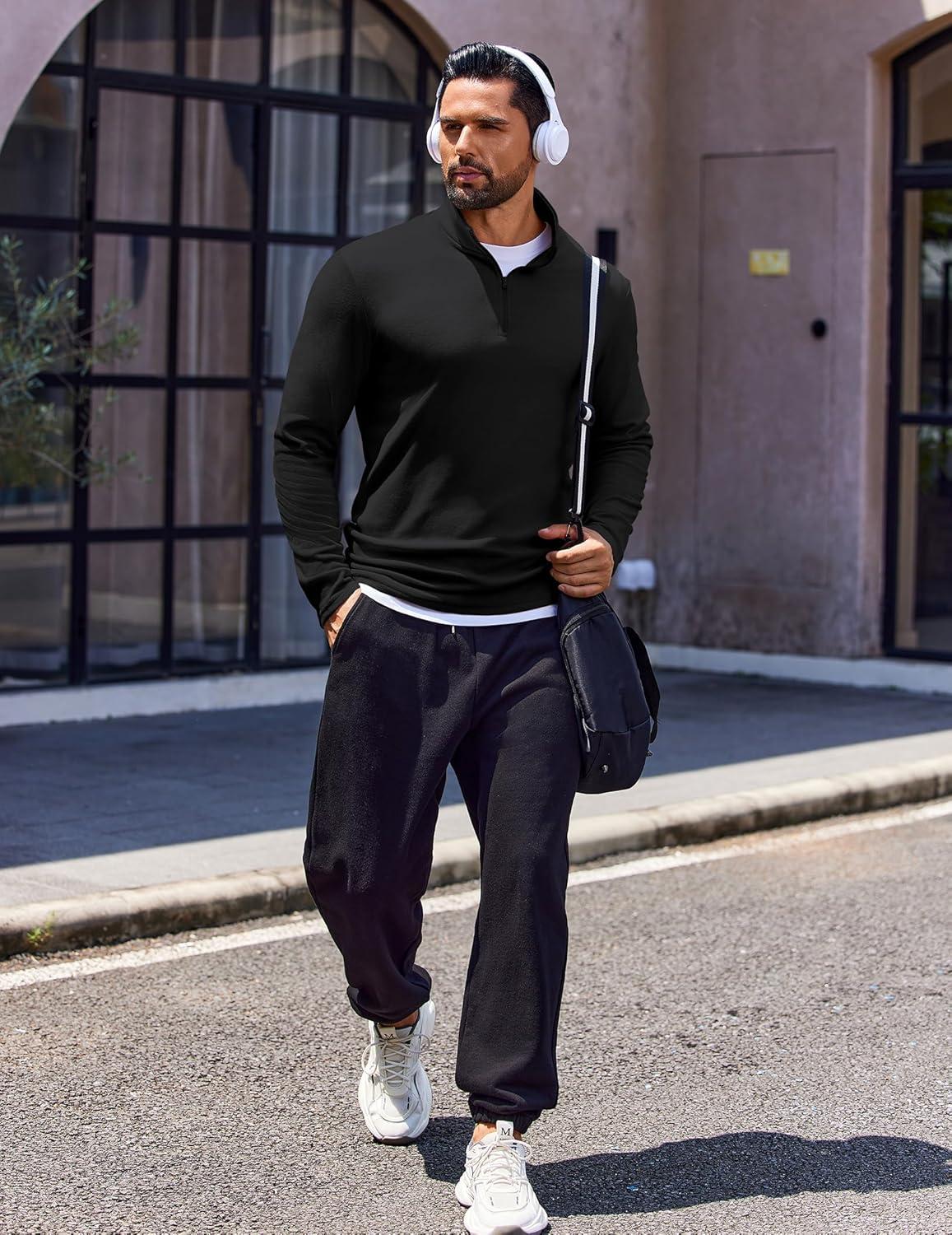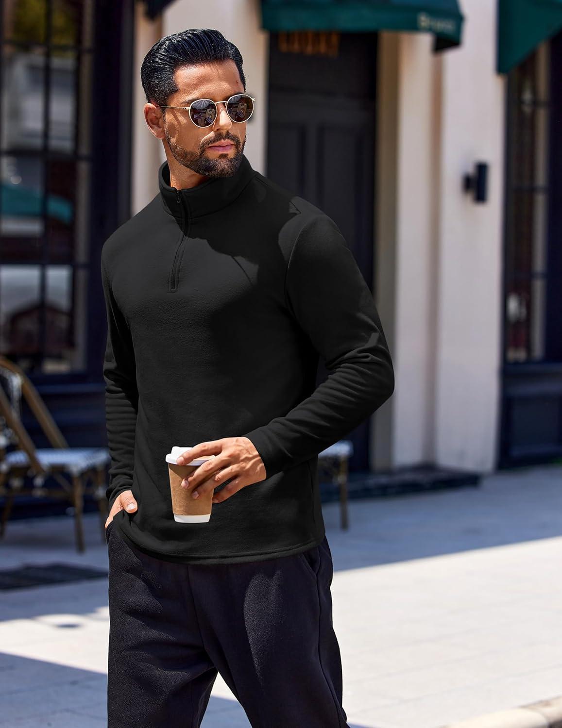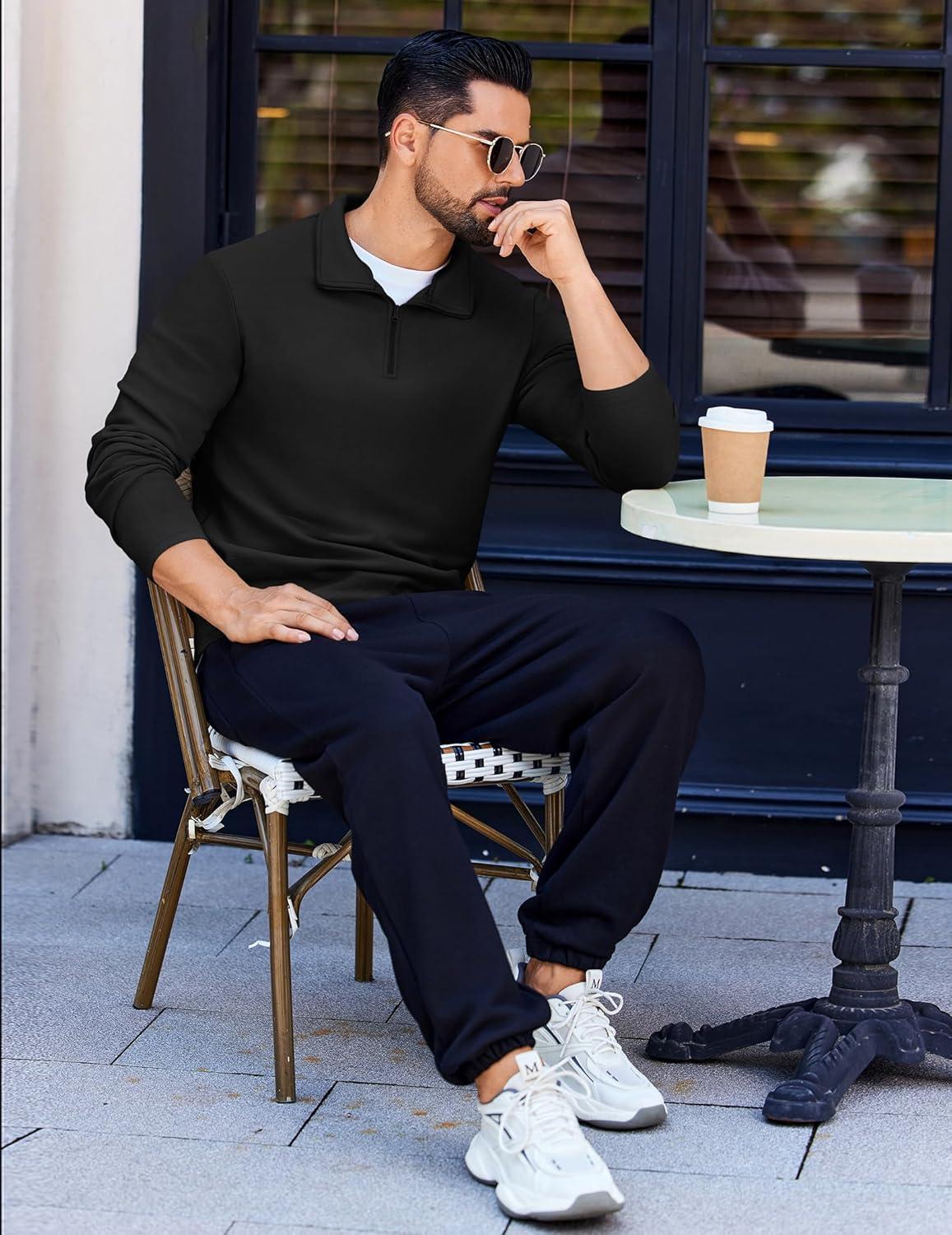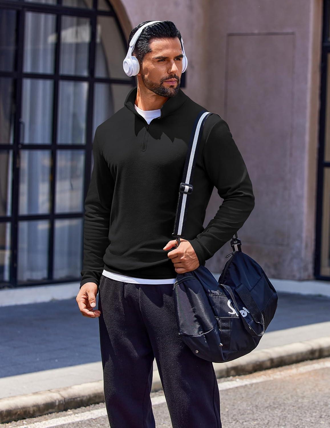 COOFANDY Quarter Zip Pullover Men Long Sleeve Sweatshirts for Men Fleece Sweater Fall(Black)