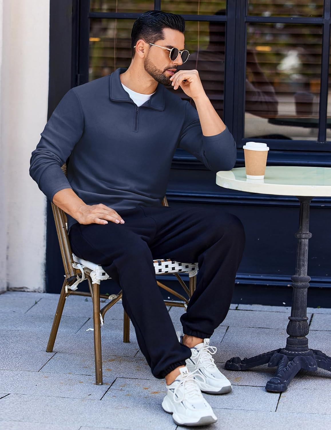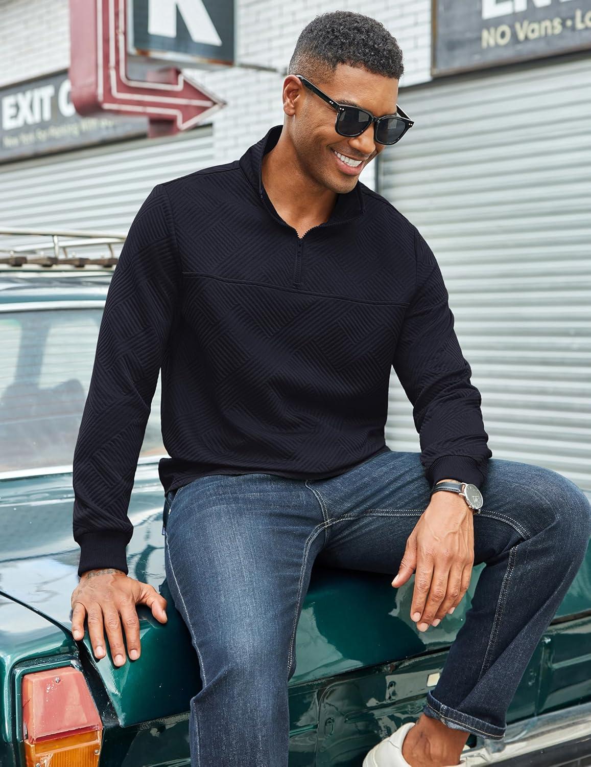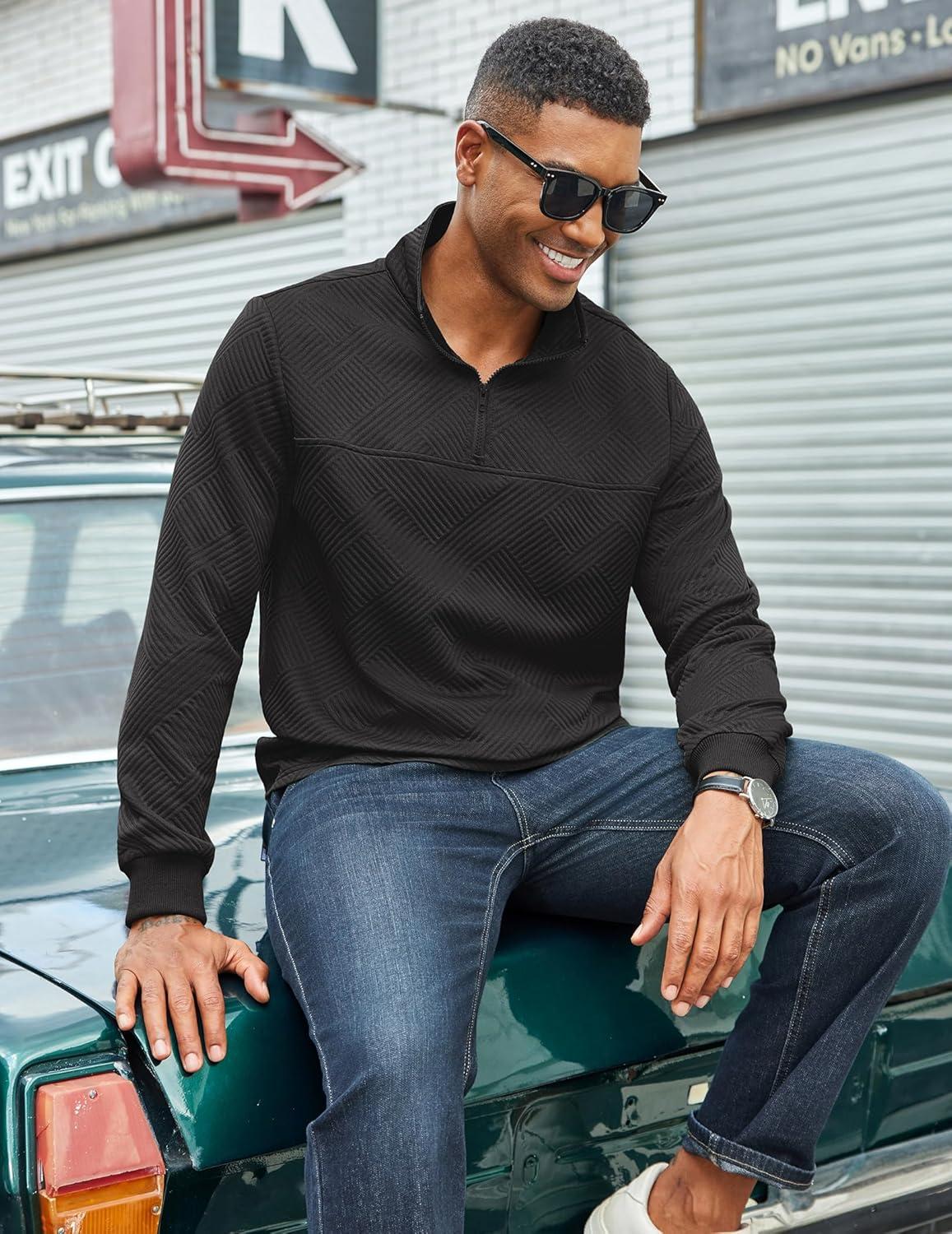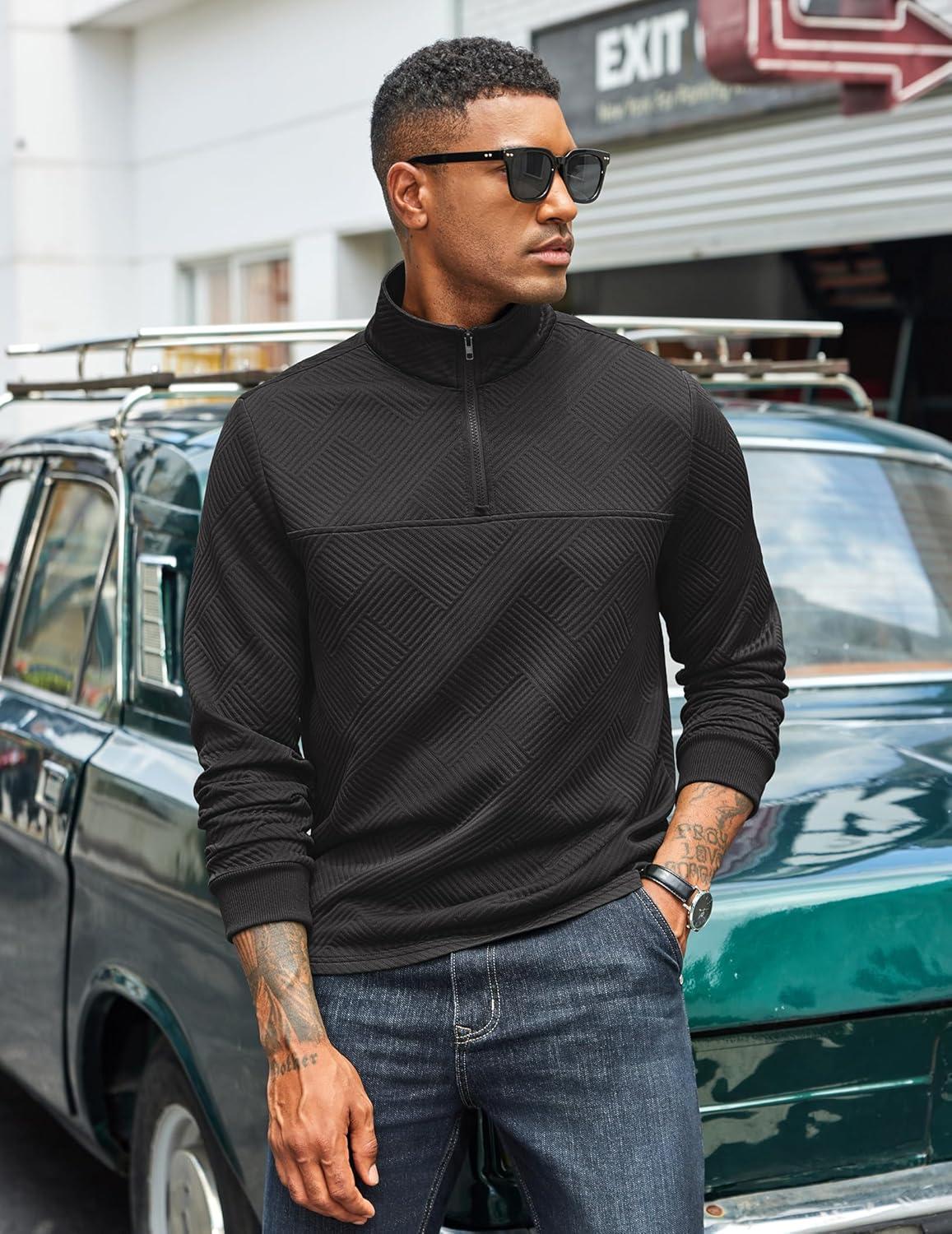 COOFANDY Quarter Zip Pullover Men Long Sleeve Sweatshirts for Men Fleece Sweater Fall(Black)