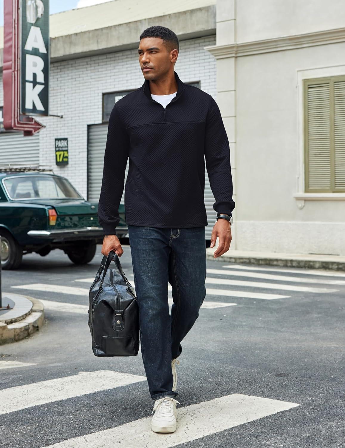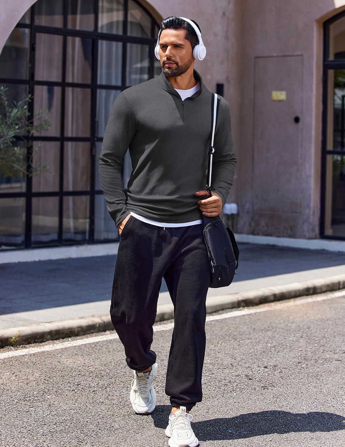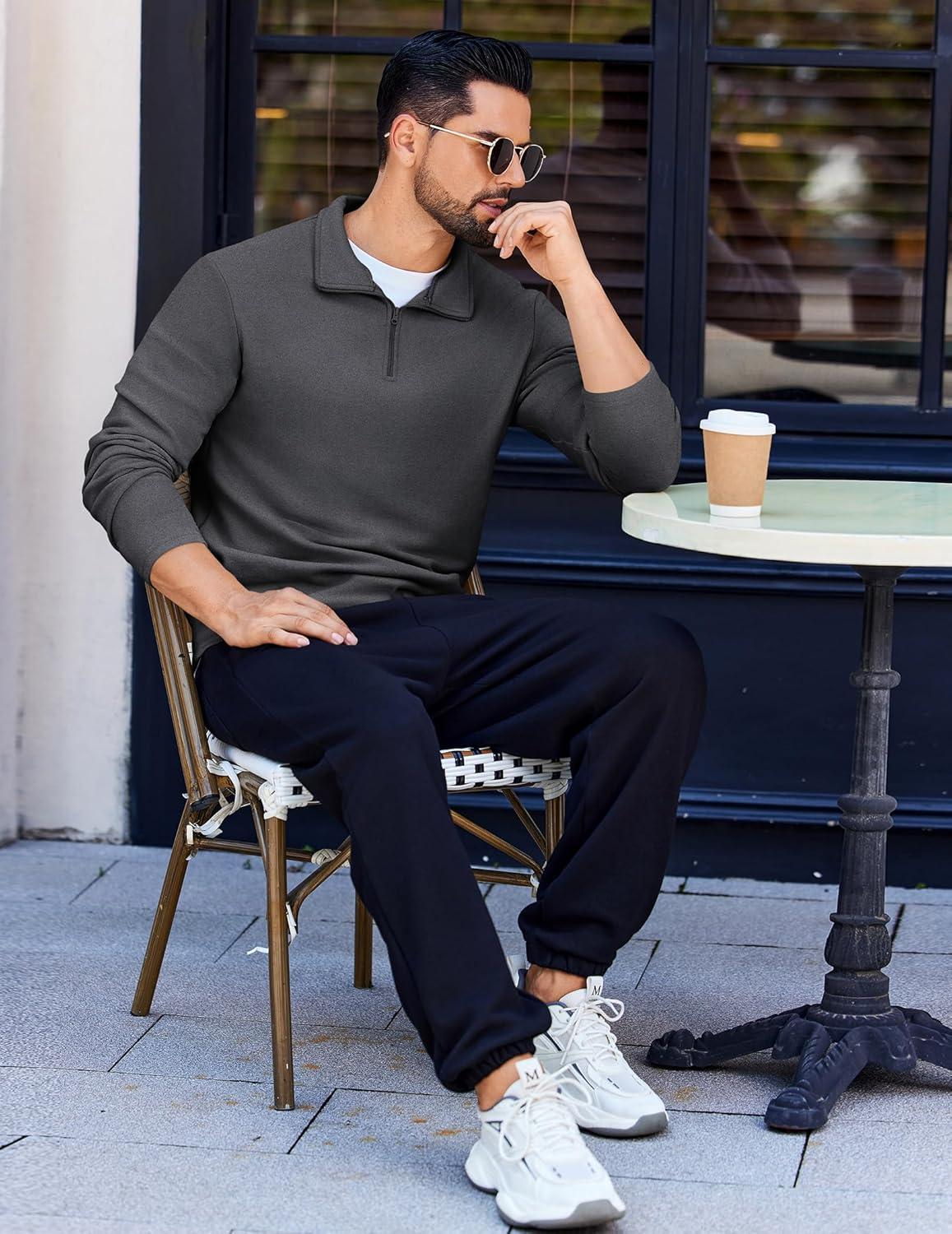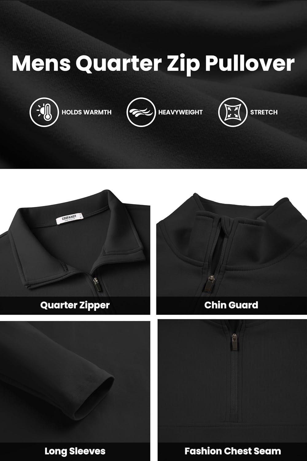 COOFANDY Quarter Zip Pullover Men Long Sleeve Sweatshirts for Men Fleece Sweater Fall(Black)