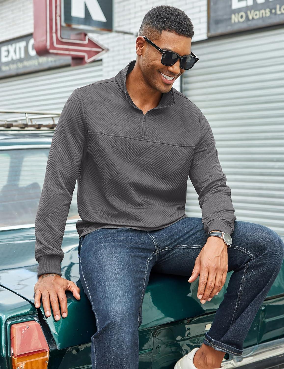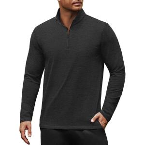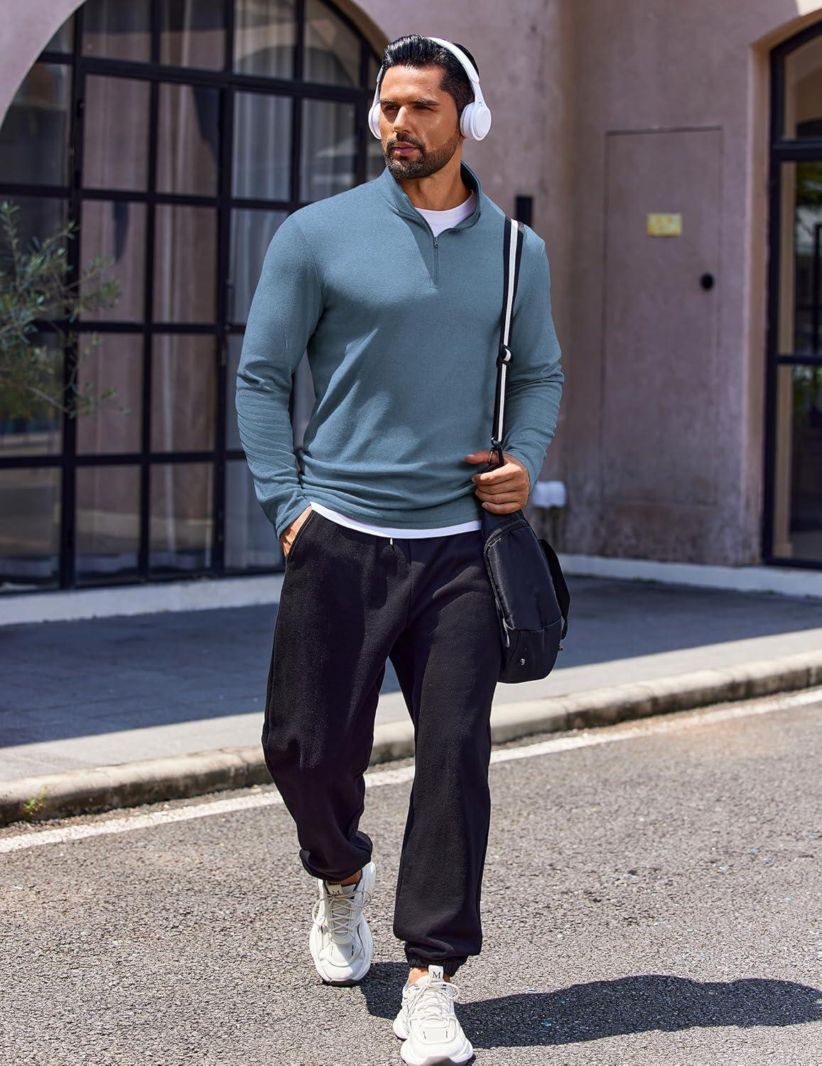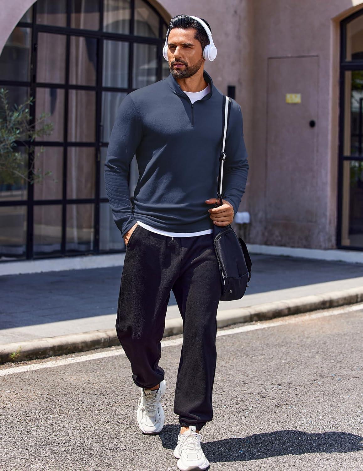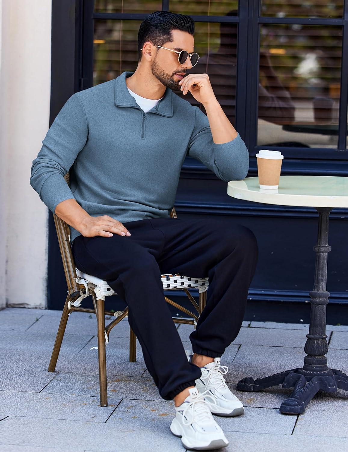 COOFANDY Quarter Zip Pullover Men Long Sleeve Sweatshirts for Men Fleece Sweater Fall(Black)