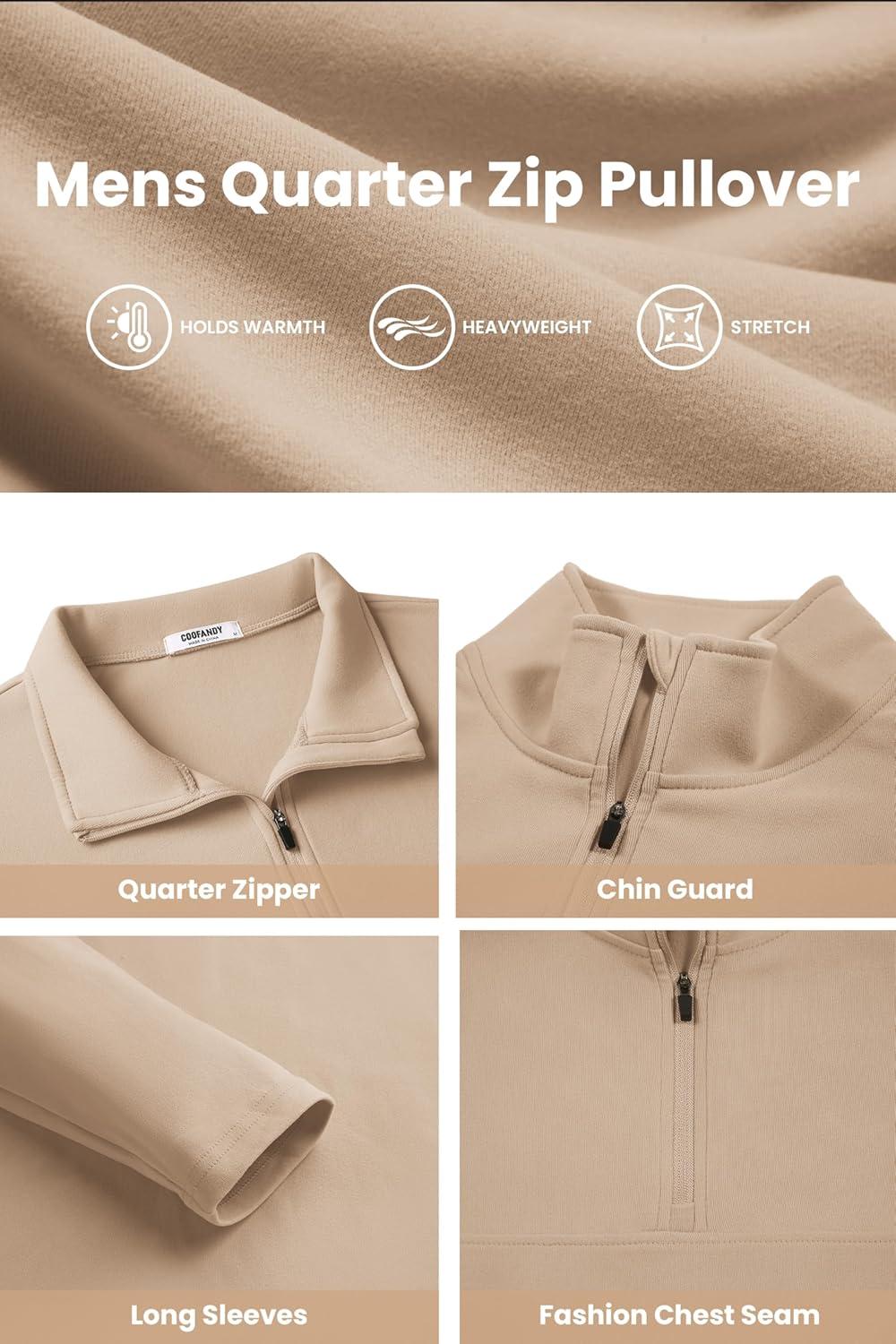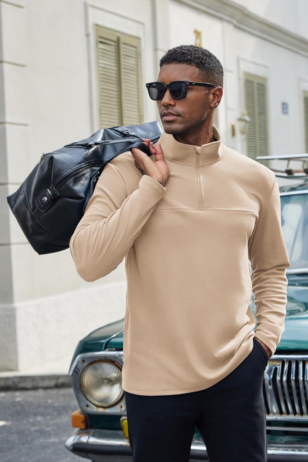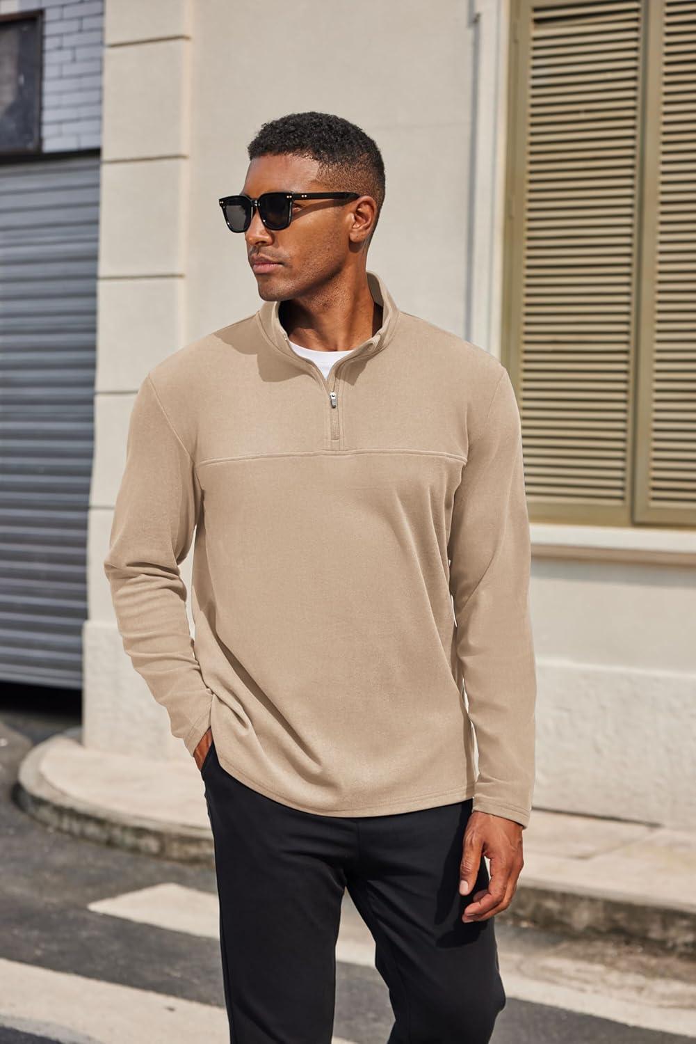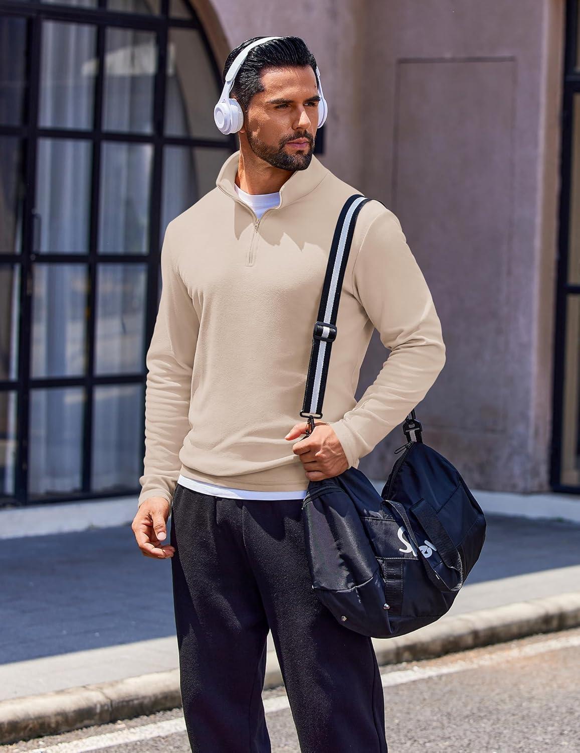 COOFANDY Quarter Zip Pullover Men Long Sleeve Sweatshirts for Men Fleece Sweater Fall(Khaki)