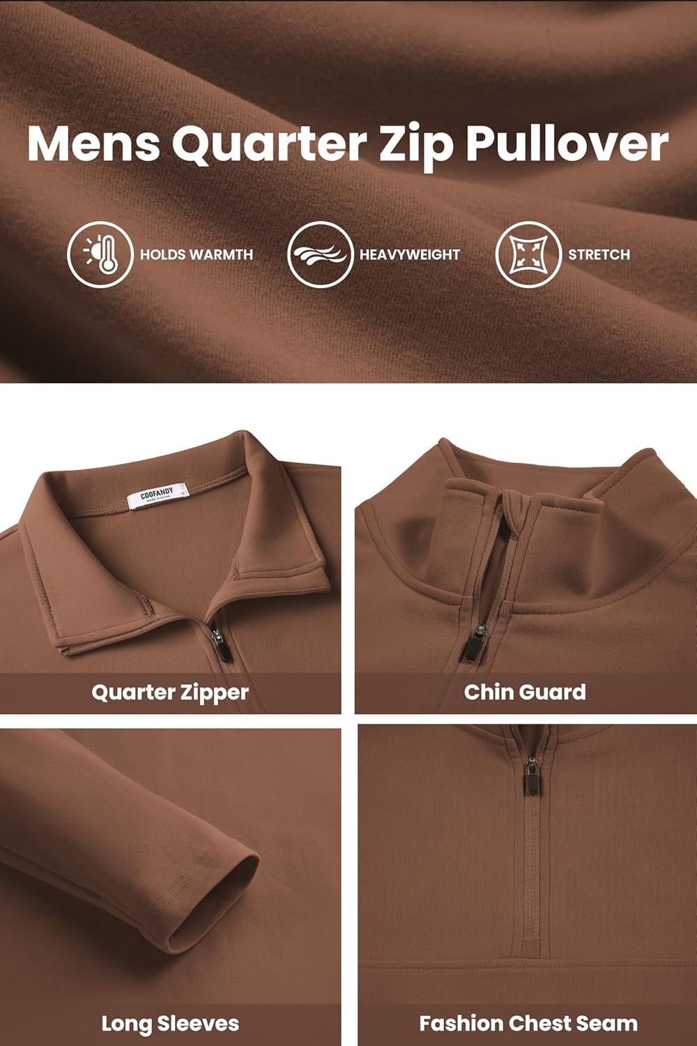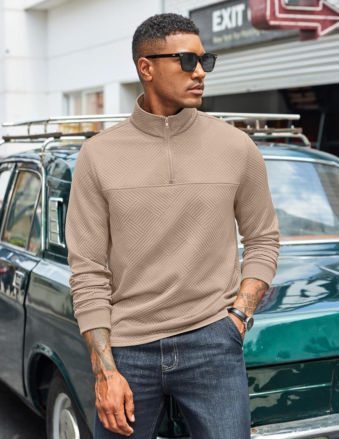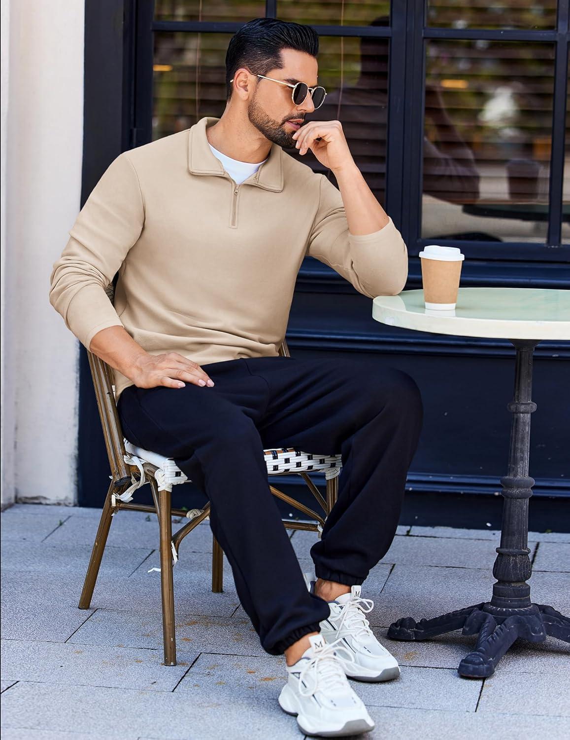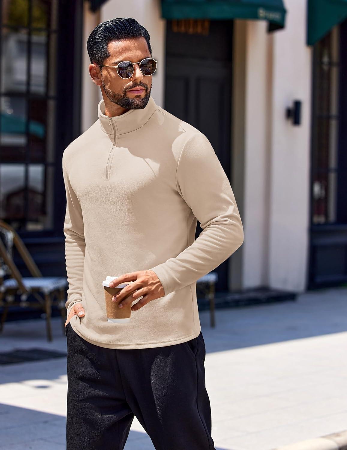 COOFANDY Quarter Zip Pullover Men Long Sleeve Sweatshirts for Men Fleece Sweater Fall(Khaki)
