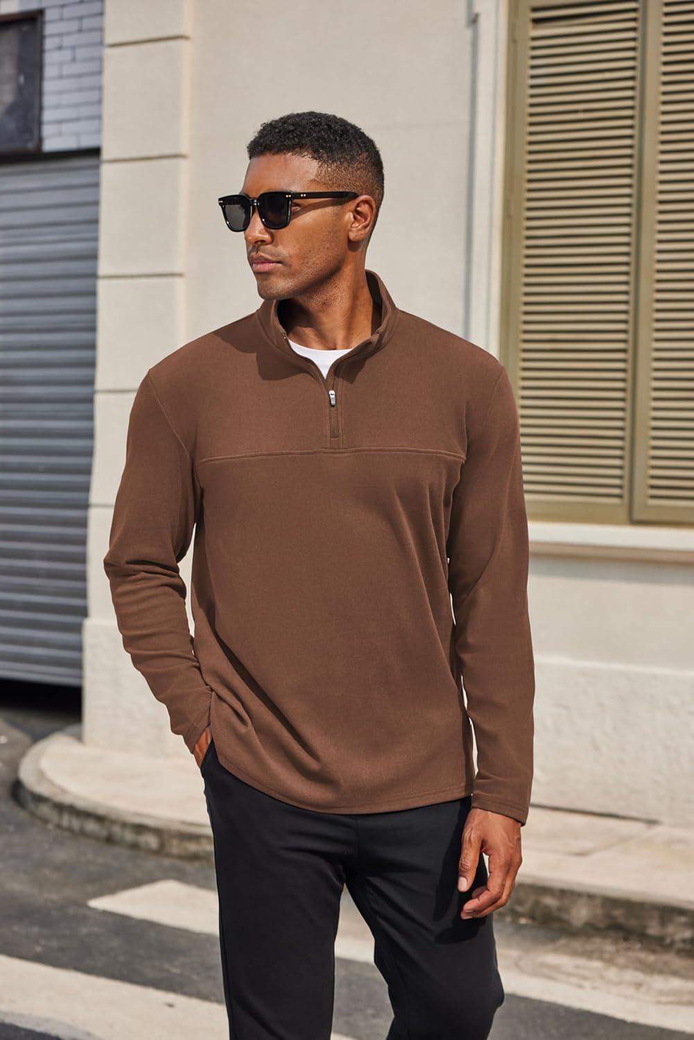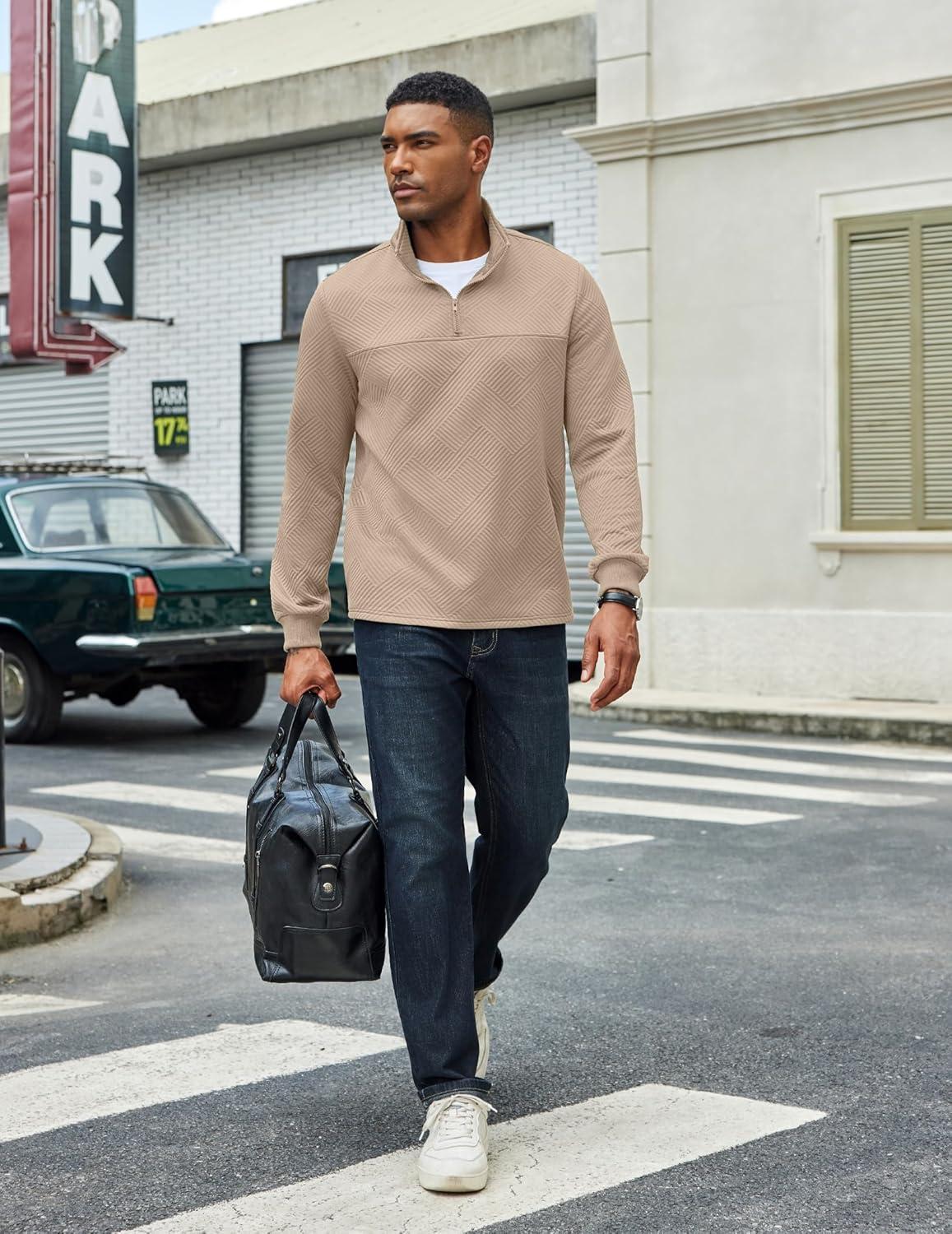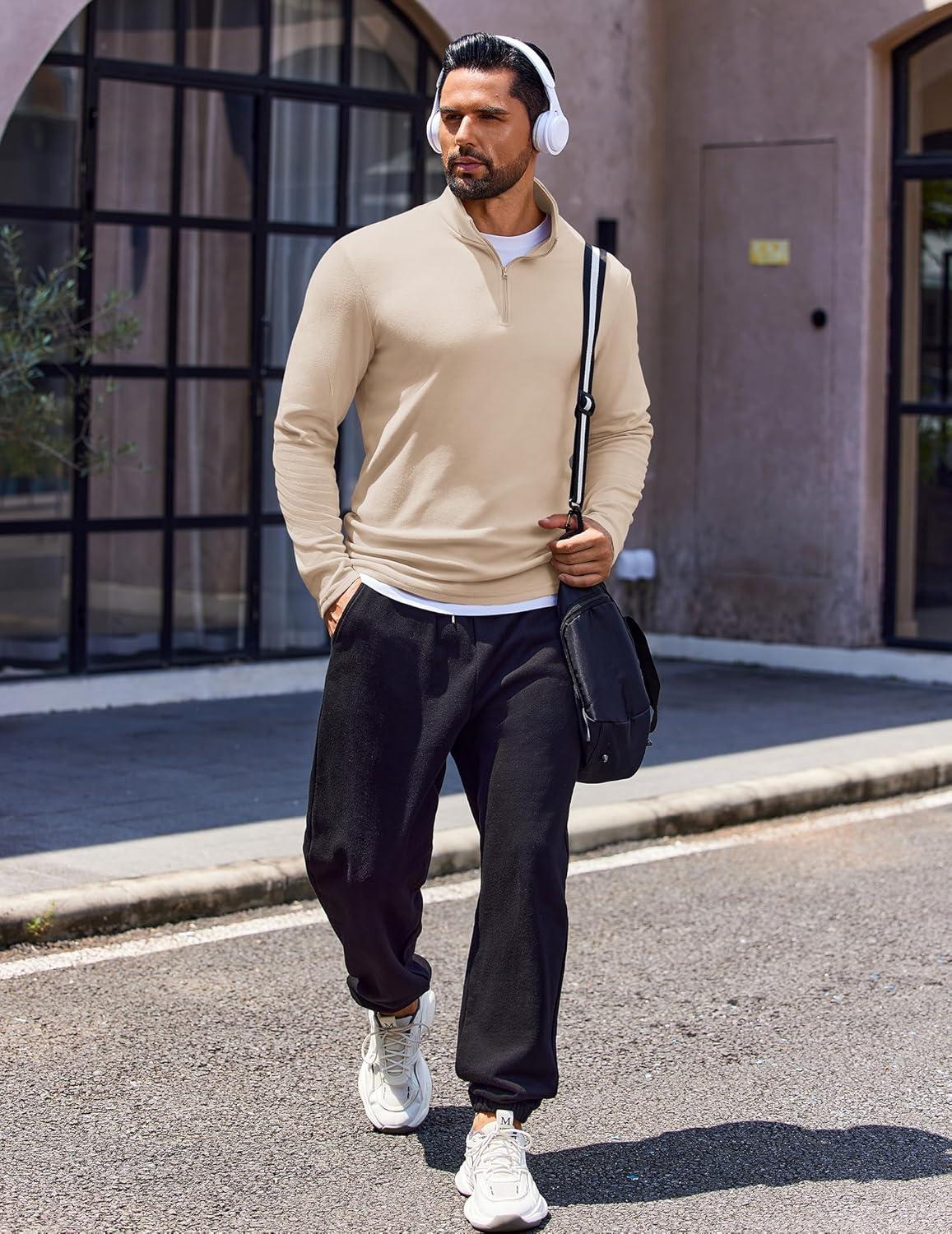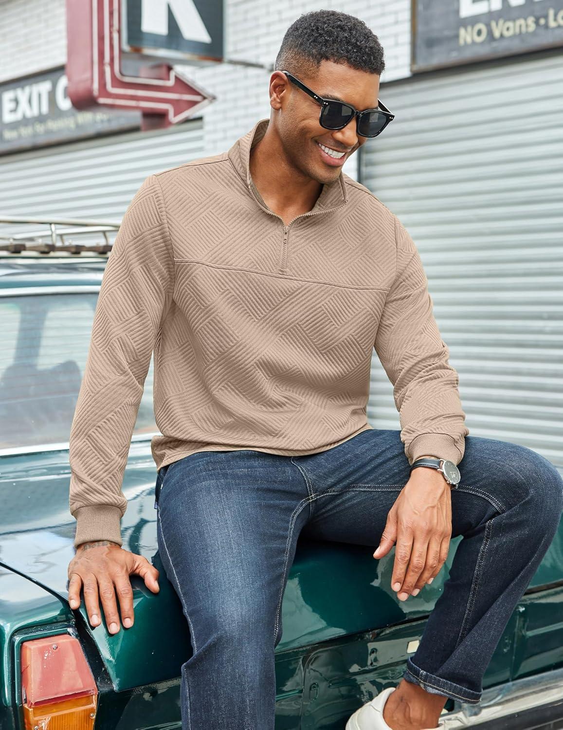 COOFANDY Quarter Zip Pullover Men Long Sleeve Sweatshirts for Men Fleece Sweater Fall(Khaki)