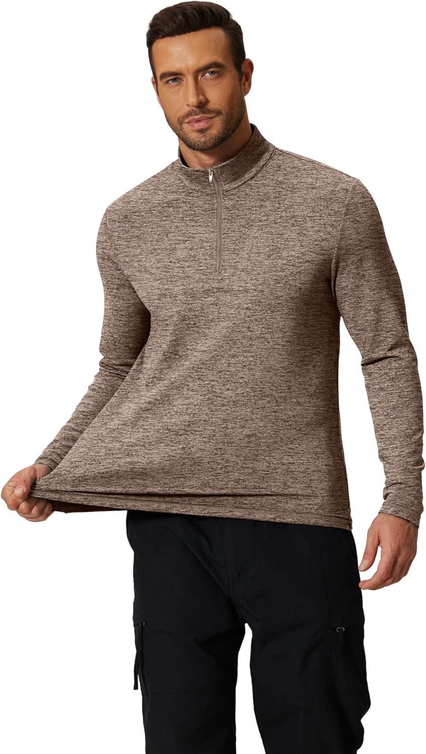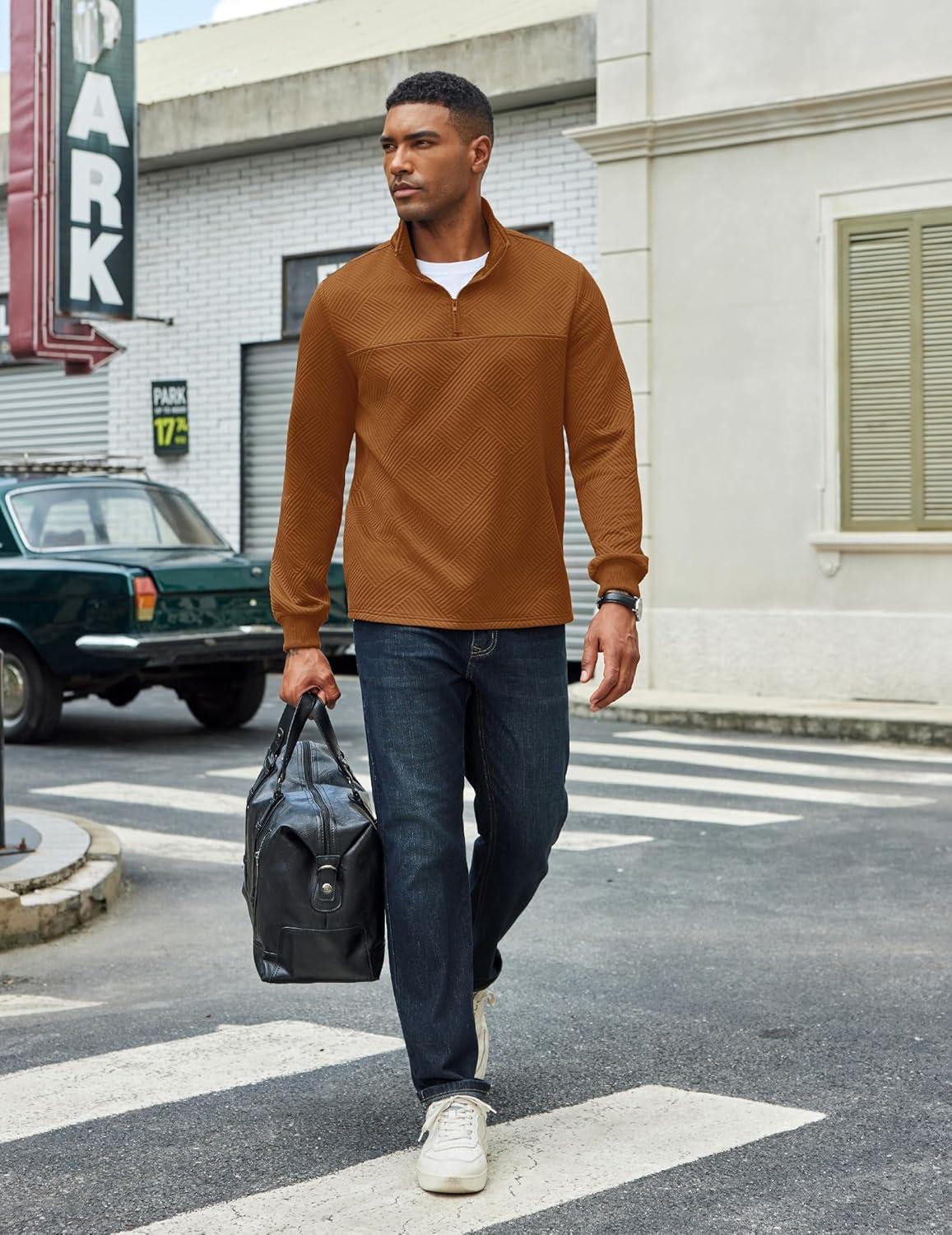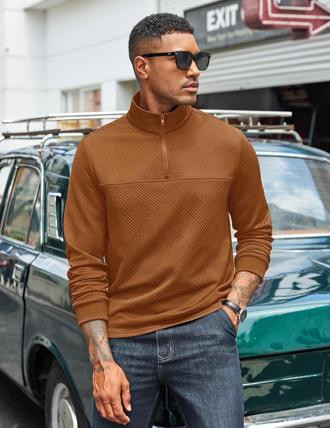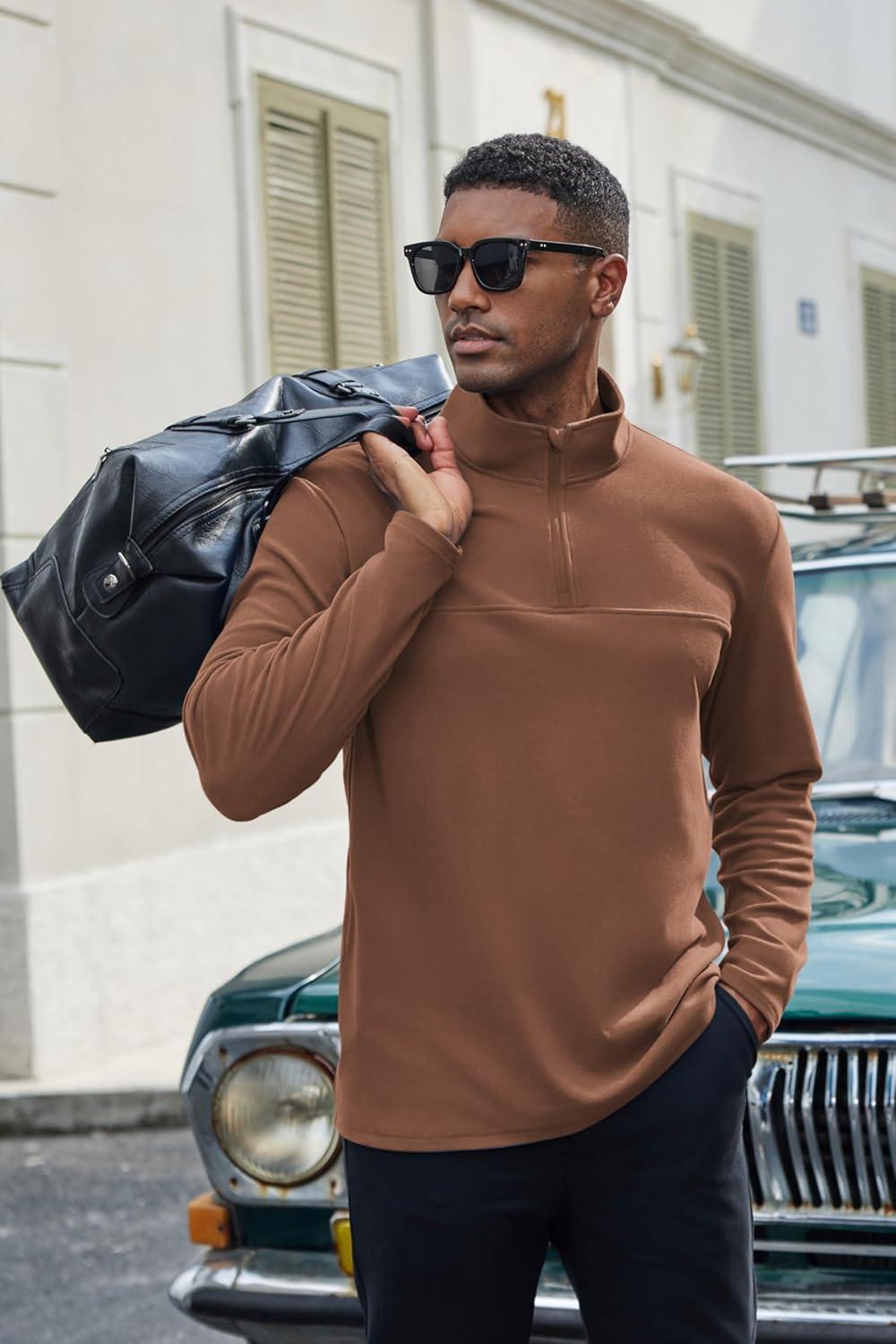 COOFANDY Quarter Zip Pullover Men Long Sleeve Sweatshirts for Men Fleece Sweater Fall(Khaki)